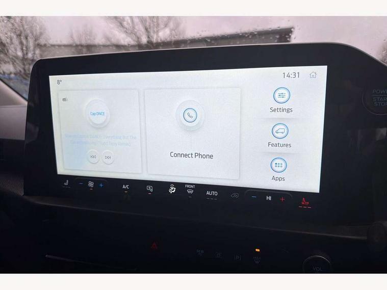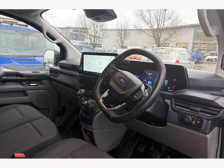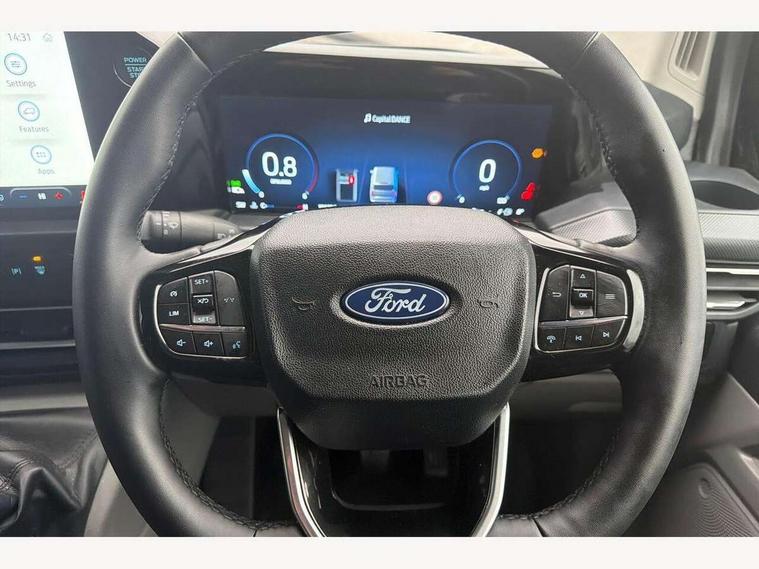 13" Touchscreen, 5G embedded modem, AECS NO SMS/Roll Detect 2G, PAS, Tyre pressure monitor, SYNC 4 - Android Auto/Apple Car Play, advance speech recognition, over the air update capability, Automatic headlights, Automatic windscreen wipers, Body coloured door mirrors, Body coloured front bumper, Body coloured rear bumpers, Daytime running lights, Electric front windows with one touch facility for driver and front passenger, Front mud flaps, Front splash guards, Low roof line, Quickclear front window defroster, Rear cargo hinged door, Rear splash guards, Trailer sway control, 6 Load compartment tie down loops, Courtesy light, Interior grab handle with driver's sunglasses holder, LED lights, Locking glove box lid, Sensico gearshift knob, 2 remote keys, Alcohol Interlock wiring preparation pack, Keyless entry and start, Locking wheel lug nut, Thatcham category 1 alarm, 20L AdBlue tank, ABS, Diesel particulate filter, ESP, Hill launch assist, Traction control, Full wheelcovers,