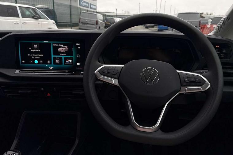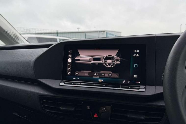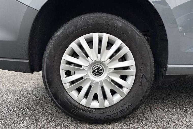 Bluetooth - Mobile phone interface, Car2X technology, Driver alert system, eCall emergency system, Intelligent Speed Assist, Lane assist, Seatbelt warning indicator, Service indicator, Start-stop system with regenerative braking, 2 USB interfaces type C in dashboard, DAB Radio, We Connect Basic Preparation, Automatic hazard light activation under emergency braking, Black front and rear bumpers, Electric front windows, Heat insulating windscreen, Roof rail preparation, Windscreen wiper with variable intermittent delay and wash-wipe system, Dimming breakaway interior rear view mirror, Electronically controlled heating system, Interior light in headliner incorporting LED technology, Lockable glove compartment door with light, Manual heating and ventilation system, Manual height adjustment for front seats, Reach and rake adjustable steering column, Six lashing points for securing loads, 3-point seat belts in front, with pretensioner and height adjustment, Driver and front passenger airbag with front passenger airbag deactivation, Tyre pressure monitoring system, Anti-theft alarm system, interior monitoring, backup horn, and towing protection, Electronic engine immobiliser, Remote central locking with deadlocks, interior locking, Anti locking braking system (ABS), Automatic post collision braking system, Autonomous Emergency Braking Front Assist with Pedestrian Monitoring, Brake assist, Diesel particulate filter, Electric parking brake with auto hold function, Electronic brake force distribution (EBD), Electronic differential lock (EDL), Electronic stabilisation programme (ESP), Engine drag torque control (MSR), Hill hold assist, Traction control system (TCS), Decorative beige birch vein inserts, Full size wheel trims,