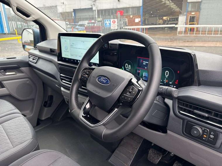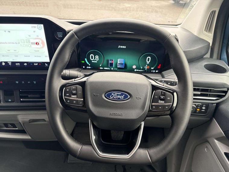 13" Touchscreen, 5G embedded modem, AECS NO SMS/Roll Detect 2G, PAS, Tyre pressure monitor, SYNC 4 - Android Auto/Apple Car Play, advance speech recognition, over the air update capability, Automatic headlights, Automatic windscreen wipers, Body coloured door mirrors, Body coloured front bumper, Body coloured rear bumpers, Daytime running lights, Electric front windows with one touch facility for driver and front passenger, Front mud flaps, Front splash guards, Low roof line, Quickclear front window defroster, Rear cargo hinged door, Rear splash guards, Trailer sway control, 8 Load compartment tie down loops, Courtesy light, Interior grab handle with driver's sunglasses holder, LED lights, Locking glove box lid, Sensico gearshift knob, 2 remote keys, Alcohol Interlock wiring preparation pack, Keyless entry and start, Locking wheel lug nut, Thatcham category 1 alarm, 20L AdBlue tank, ABS, Diesel particulate filter, ESP, Hill launch assist, Traction control, Full wheelcovers,
