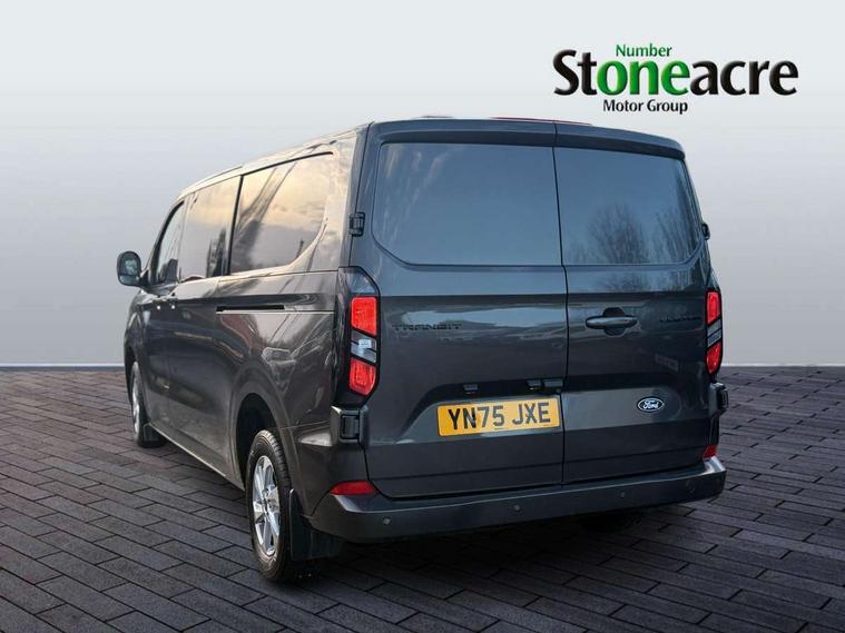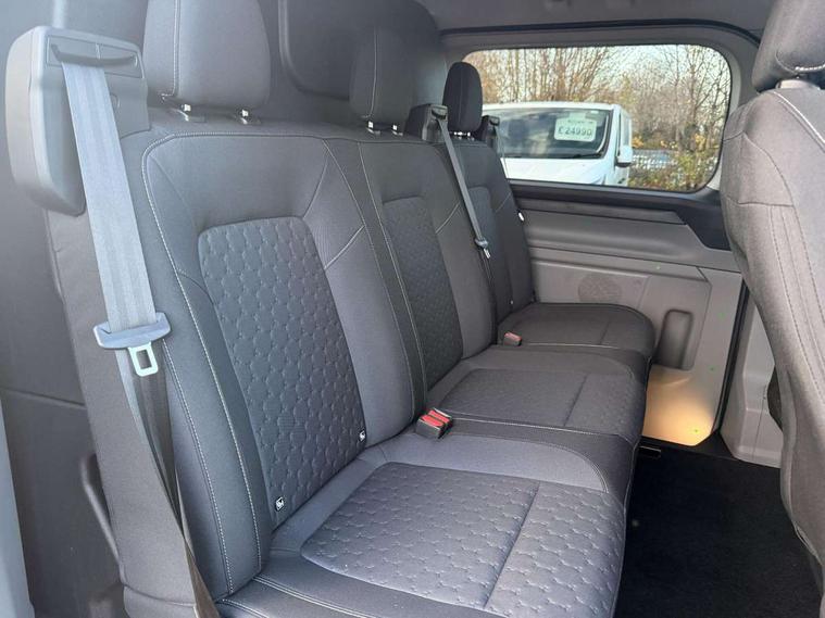 13" Touchscreen, 5G embedded modem, AECS NO SMS/Roll Detect 2G, PAS, Rear USB charge port, Tyre pressure monitor, SYNC 4 - Android Auto/Apple Car Play, advance speech recognition, over the air update capability, Automatic headlights, Body coloured door mirrors, Body coloured front bumper, Body coloured rear bumpers, Daytime running lights, Dual side load doors, Electric front windows with one touch facility for driver and front passenger, Fixed DSS LED headlamps with auto high headlamp, Front splash guards, Low roof line, Molded load floor liner, Quickclear front window defroster, Rear cargo hinged door, Rear splash guards, Trailer sway control, 3 Seat Rear seats with under seat stowage, 6 Load compartment tie down loops, Carpet floor in first row and rubber in second row, Courtesy light, DCiV Moulded polymer bulkhead, Half height polypro interior trim panels, Interior grab handle with driver's sunglasses holder, LED lights, Locking glove box lid, Rear reading light, Sensico gearshift knob, Super bright load compartment lights, Passenger airbag, 2 remote keys, Alcohol Interlock wiring preparation pack, Keyless entry and start, Locking wheel lug nut, Thatcham category 1 alarm, 20L AdBlue tank, ABS, Diesel particulate filter, ESP, Hill launch assist, Traction control, 16" Steel spare wheel, Full wheelcovers,