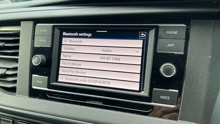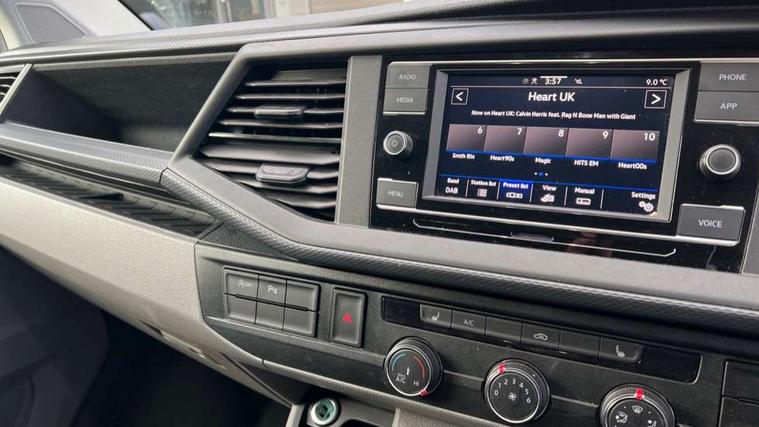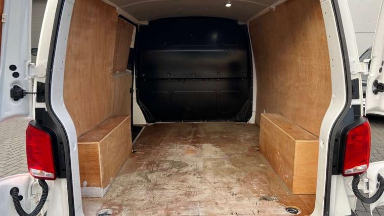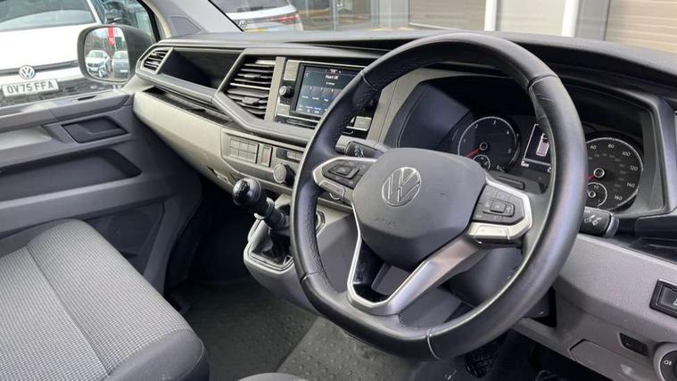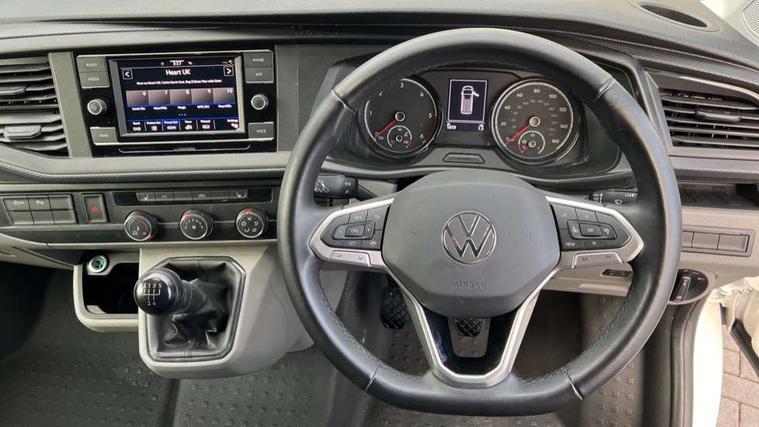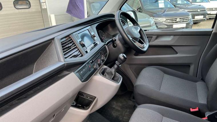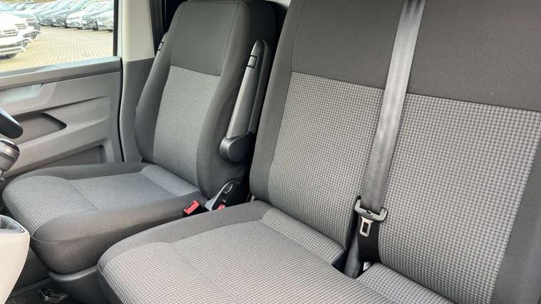 Cross wind assist, Dimmable illuminated instruments, Driver alert with Multi-function display plus, eCall emergency system, Forward collision warning front assist with autonomous emergency braking, Mobile phone interface, Multi function display plus with black and white display, 2 USB interfaces type C in dashboard, 4 speakers with 2 tweeters and 2 woofers, Composition colour radio with 6.5" touchscreen, Digital radio reception (DAB+), Volkswagen app connect, Closing rear wing door with unlatching from the inside, H7 twin halogen headlamps, Heat insulating glass (green) in cab and passenger/load compartment, Heat insulating windshield made of laminated glass, Left convex exterior mirror, Rear wing doors without window apertures, Right convex exterior mirror, Separate Daytime running lights, Transporter nameplate on the rear fender, Unpainted radiator grille with 2 chrome trims, 3 spoke leather wrapped multi function steering wheel, Comfort headliner in cab, hardboard roof trim in passenger and load compartment, Dust/pollen filter, Folding grab handles on roof frame, Front and rear left without window closed side panel in load compartment, Front seats on the right in 1st row of seat, Heavy duty tool kit and jack, High partition, Interior plastic loading edge protection, LED Interior lighting in load and passenger compartment, Standard lower part dashboard in palladium, Without refrigerant, Without right side window apertures in passenger and load compartment, Non smoker pack - Transporter, 3 point height adjustable seat belts on outer seats cab with electric pretensioners, Driver and front passenger airbag with front passenger airbag deactivation, Warning buzzer and light for driver and front passenger seat belt not fastened, Without child safety lock in passenger compartment, Electronic immobiliser, Wheel bolts without wheel locks, 16" chassis with 16" brake system, Diesel particulate filter, Electronic stability control, ABS, ASR with deactivation button, hill start assist and brake assist system, Standard anti drum measures, Start/stop system with regenerative breaking,