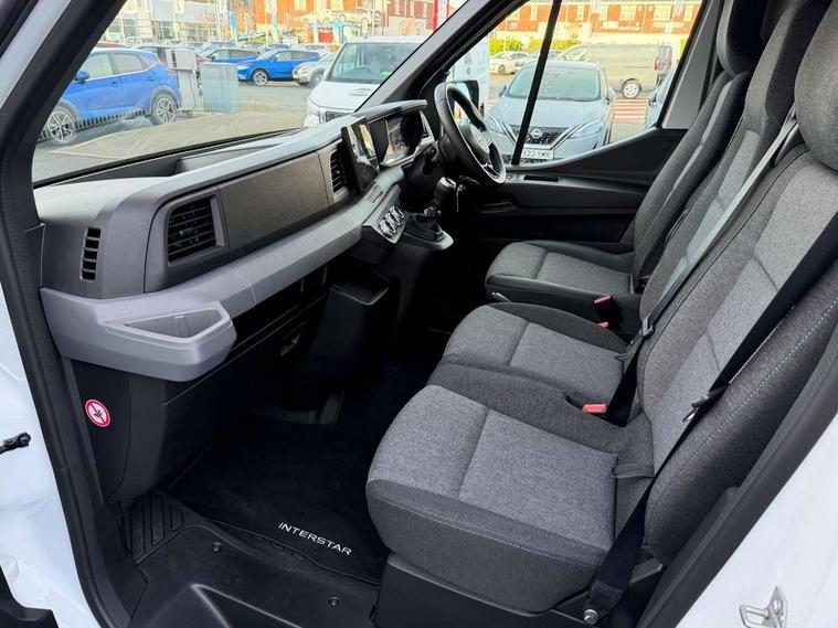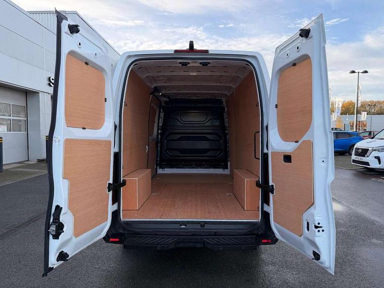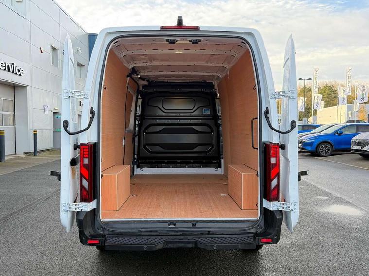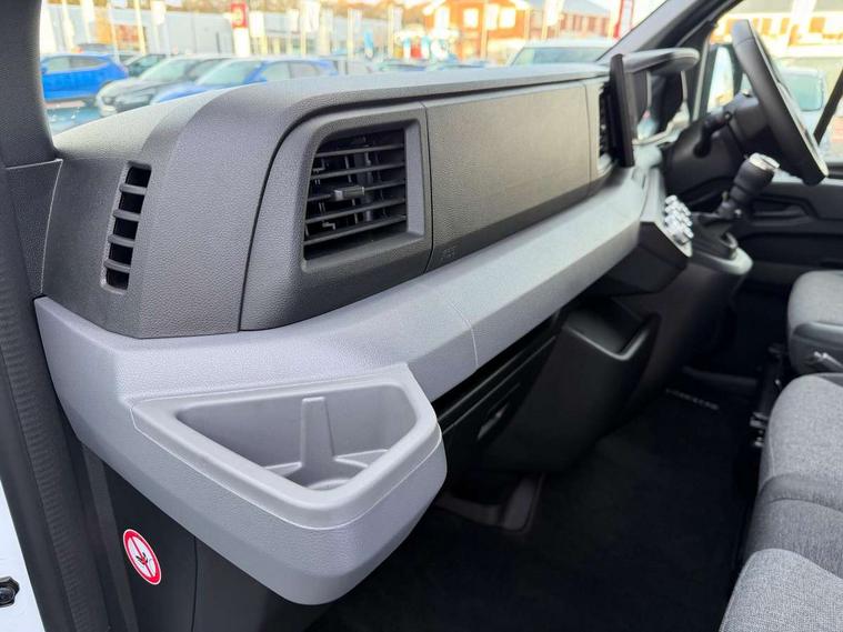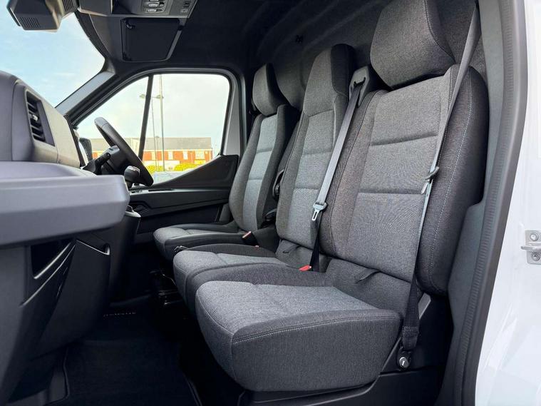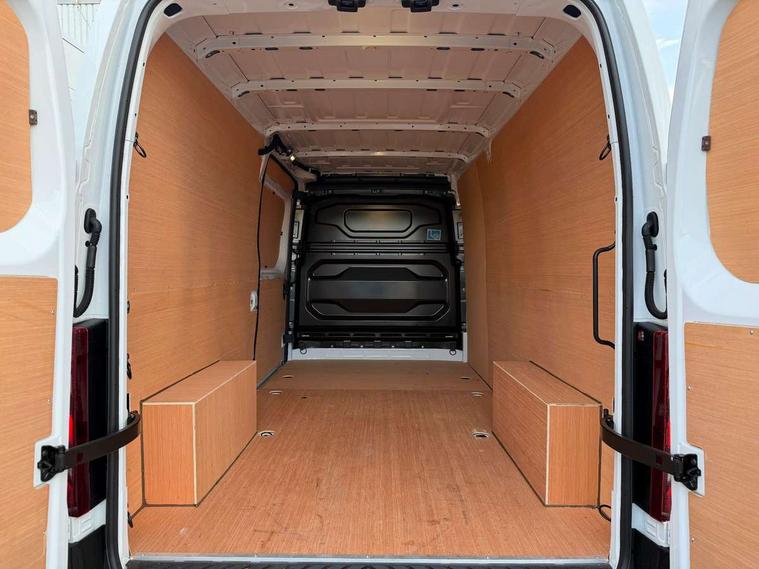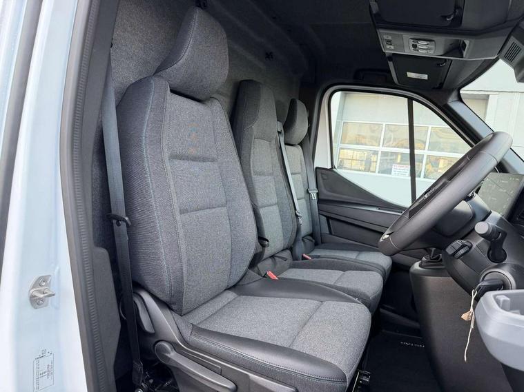 3.5" B&W TFT screen in dials dash, Bluetooth, Bodybuilder AAM unit (Additional Adaptation Module), Distance Warning in TFT cluster, Driver drowsiness and attention warning, eCall emergency system, Flank protection with object tracking, Front parking sensor, Intelligent Speed Assist (cruise control with speed limiter and traffic sign recognition), Lane departure warning system, Lane keeping assist, Low fuel level warning light, PAS, Rear parking sensor, Rear view camera, Service indicator, Trip computer, 10.1" Touchscreen multimedia display, Apple Carplay/Android Auto, Audio switch on steering wheel, Aux port, Digital radio (DAB), USB socket, Automatic headlights, Automatic high/low beam, Automatic windscreen wipers, Electric door mirrors, Electric front windows with one touch drivers window, Heated door mirrors, Heated windscreen, LED Daytime running lights, LED front fog lights, LED low beam and halogen high beam Headlights, Left side sliding door, Rear step, Unglazed 270 degree degree rear french doors, 2 in-dash cupholders, 8 x cargo floor load mounting hooks, Cargo load mounting hooks 4 on C pillar and 6 on D pillar, Cloth upholstery, Driver's armrest, Driver's seat with longitudinal, height and backrest inclination adjustments, Drivers seat with lumbar support, Foldable Passenger bench with fixed table, Front automatic air conditioning, Front headrests, Full steel bulkhead, LED cabin lights, LED lighting in load area, Overhead parcel shelves, Passenger underseat storage box, Steering wheel rake adjustment, Steering wheel reach adjustment, Driver's airbag, Passenger airbag, Tyre pressure monitoring system, Alcohol interlock predisposition, Deadlocks, Insurance approved immobiliser, Radio frequency remote central locking, Thatcham alarm system, Roadside assistance - 5 Years / Unlimited Miles, 12V socket in load area, ABS + EBD, Automatic forward emergency braking system (AEBS), ESP, Hill start assist, Trailer sway assist, 16" steel wheels, Full size spare wheel, Full wheel covers,