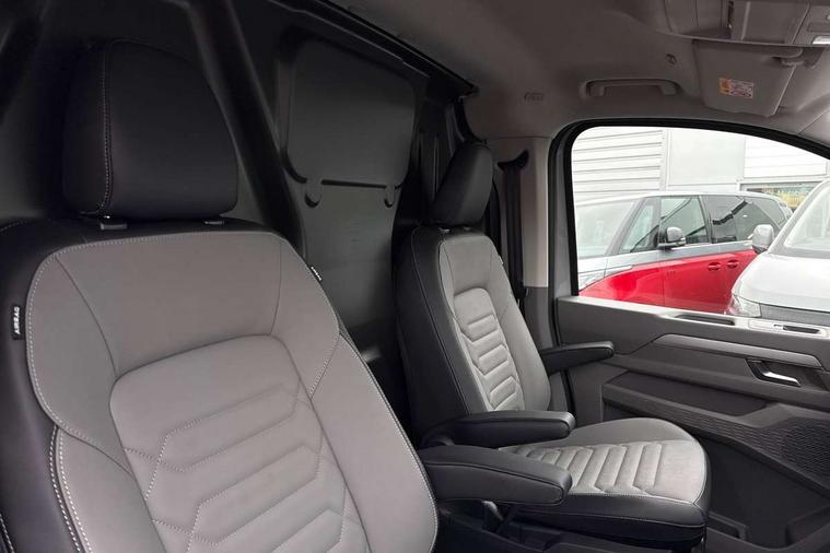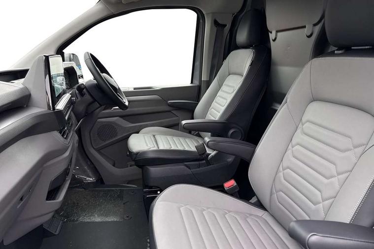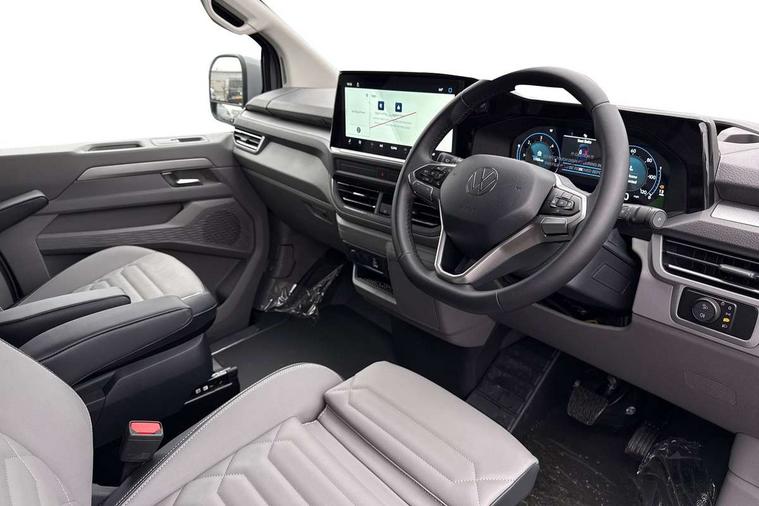 12" digital drivers display, 13" touchscreen infotainment display with wireless app connect and DAB radio, 5G Modem, Adaptive cruise control, Apple CarPlay and Android Auto, Dynamic road sign display, eCall emergency system, Electromechanical speed sensitive power steering, height and longitudinally adjustable steering column, Lane and blind spot assist with exit warning system, Preparation of VW connect and connect plus, Wireless mobile phone charging, Wrong way driver warning, Body colour bumpers, Body coloured door handles, Body coloured door mirrors, Body coloured radiator grille, Electrically heated, adjustable and folding door mirrors, Heat reflecting side window glass, Mud flaps front and rear, Rear Transporter nameplate in black grained decorative trim, Vehicle opening configuration 1x 1st row of seats, 2x all doors, 12V outlet in centre console and 12V outlet on rear right D-pillar, 2x 15-W USB data/charging ports in dashboard and 1x USB-C, 1x USB-A center bottom, 2x LED lights in load compartment, 3x additional super bright LED lights in load compartment, 4 way height and tilt adjustable head restraints, 5 additional USB-C charging ports, Black plastic scuff plate for sliding door in cargo without illumination, Cabin interior lighting, Glasses compartment in driver side roof, Grab handle on A-pillar passenger side, Illuminated lockable glovebox, Lashing rings for reinforced floor covering, Leatherette gear lever, Narrow centre console with cup holder and compartment for mobile phone, Overhead storage compartment, Rubber floor covering in cab, Striped fabric upholstery, Without passenger seats in load compartment, Driver and front passenger airbag with front passenger airbag deactivation, Dual tone horn, Front and curtain airbags for driver and front passenger, Seat belt pretensioner for driver seat, Anti theft alarm system with interior monitoring in cab, backup horn and towing protection, Electronic immobiliser, Lockable wheel bolts, Preparation for alcohol ignition interlock, 5+ Promise, Alternator - 230A, Electromechanical brake booster, Electronic stability control, ABS, ASR with deactivation button, hill start assist and brake assist system,