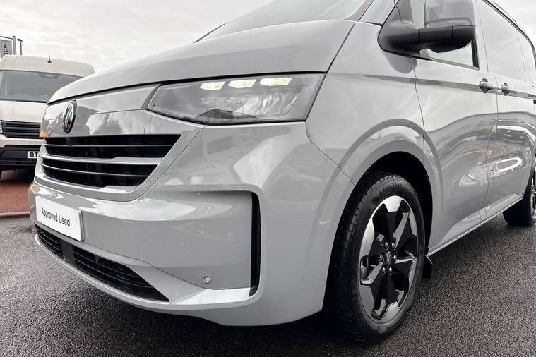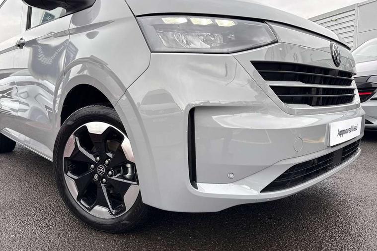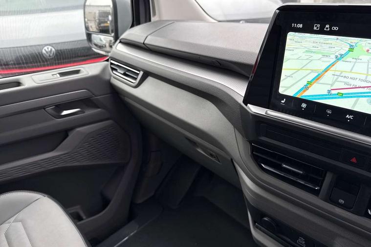 12" digital drivers display, 13" touchscreen infotainment display with wireless app connect and DAB radio, 5G Modem, Adaptive cruise control, Apple CarPlay and Android Auto, Dynamic road sign display, eCall emergency system, Electromechanical speed sensitive power steering, height and longitudinally adjustable steering column, Lane and blind spot assist with exit warning system, Preparation of VW connect and connect plus, Wireless mobile phone charging, Wrong way driver warning, Body colour bumpers, Body coloured door handles, Body coloured door mirrors, Body coloured radiator grille, Electrically heated, adjustable and folding door mirrors, Heat reflecting side window glass, Mud flaps front and rear, Rear Transporter nameplate in black grained decorative trim, Vehicle opening configuration 1x 1st row of seats, 2x all doors, 12V outlet in centre console and 12V outlet on rear right D-pillar, 2x 15-W USB data/charging ports in dashboard and 1x USB-C, 1x USB-A center bottom, 2x LED lights in load compartment, 3x additional super bright LED lights in load compartment, 4 way height and tilt adjustable head restraints, 5 additional USB-C charging ports, Black plastic scuff plate for sliding door in cargo without illumination, Cabin interior lighting, Glasses compartment in driver side roof, Grab handle on A-pillar passenger side, Illuminated lockable glovebox, Lashing rings for reinforced floor covering, Leatherette gear lever, Narrow centre console with cup holder and compartment for mobile phone, Overhead storage compartment, Rubber floor covering in cab, Striped fabric upholstery, Without passenger seats in load compartment, Driver and front passenger airbag with front passenger airbag deactivation, Dual tone horn, Front and curtain airbags for driver and front passenger, Seat belt pretensioner for driver seat, Anti theft alarm system with interior monitoring in cab, backup horn and towing protection, Electronic immobiliser, Lockable wheel bolts, Preparation for alcohol ignition interlock, 5+ Promise, Alternator - 230A, Electromechanical brake booster, Electronic stability control, ABS, ASR with deactivation button, hill start assist and brake assist system,