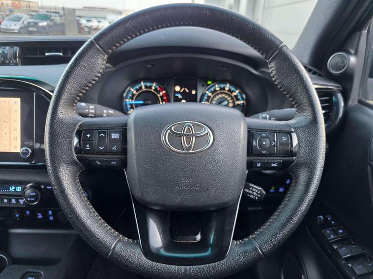 (ACC) Adaptive cruise control switch on steering wheel, 4.2" Multi information display, 8" multimedia system, Black extended surrounds on front fog lamps, Bluetooth connectivity, Colour multi information display, Dynamic guide lines on reversing camera, E-Call emergency call system, Eco driving indicator, Embedded navigation system with cloud connectivity, Front and rear parking sensors, Fuel heater, Intelligent adaptive cruise control, Lane departure alert with brake induced steering, Lane departure warning system, Lane trace assist, Lights on warning buzzer, Multi info, multimedia, telephone, voice recognition switches on steering wheel, MyT connected services, Panoramic view monitor, Power steering, Pre-collision system with pedestrian detection, Reversing camera, Road sign assist, Smart phone integration with Android auto & Apple CarPlay, Tachometer, Tyre pressure warning system (TPWS), Variable flow control (VFC) power steering, Washer fluid level warning, 6 speakers, Digital radio (DAB), MP3 compatibility, Steering wheel mounted audio controls, USB connector, Anti jam protection on front power windows, Auto dimming rear view mirror, Auto Headlights, Automatic headlamp levelling, Automatic high beam, Bi-tone dark grey and grey wheel arch moulding, Black door moulding, Black front spoiler, Black side bar with steps, Body coloured front bumper, Bumper under run protector, C - pillar in black, chrome insert on upper front grille, Dark grey door handles, Dark grey door mirrors, Dark grey front under run, Dark grey insert in headlamps, Dark grey painted lower front grille, Dark grey rear bumper, Dark grey upper front grille surround, Door mirror indicators, Electric front windows with one touch auto up & down function, Electric heated door mirrors, Electronic platform, Emergency brake light assist (EBS), Fixed rear window, Follow me home headlights, Front and rear mudguards, Front and rear power windows, Front spoiler, Front wiper De-icer, Green tinted glass, Headlight cut-off reminder, Heated rear window, Honeycomb black painted front grille, Honeycomb dark grey front grille, Invincible X wide front bumper, LED Daytime running lights, LED dual beam projector headlights, LED front fog lights, LED High mounted stop light, LED Indicators, LED rear brake lights, LED rear combination lights, LED rear lights, Microphone on front personal light, Mud flaps front and rear, Power adjustable door mirrors, Power rear side window, Power retractable door mirrors, Rear doors, Rear fog lights, Rear tailgate, Rear window defogger system, Rear window privacy glass, Shark fin antenna, Silver insert on side doors, Silver surround on multimedia display screen, smoke tinted headlights, Tailgate damper, Trailer sway control, Underbody protection cover, Variable front wipers, Variable intermittent windscreen wipers, Windscreen shadeband, 2 rear coat hooks, 220V power socket, 4 spoke leather steering wheel, 60/40 split tip-up rear bench seat, Adjustable driver seat belt extender, Adjustable rear headrests, Ambient door lighting, Ambient lighting on rear doors, Assist grips in centre pillar, Front pillar and overhead, Auto up and down function on 2nd row, Black centre console, Black front door assist grips, Black insert on centre console, Black upper dashboard, Carpet covered floor, Centre and front room light, Centre console coolbox, Centre console with lid, storage and armrest, Chrome interior door handle, Chrome surround on air conditioning buttons, Clean air filter, Closed upper passenger dashboard storage compartment, Cooler in upper glove box, Driver and passenger seatback pockets, Dual zone automatic air conditioning, Front bottle holders, Front console box, Front cup holders, Front door pockets, Heated driver and front passenger seats, Heated front and rear seats, Illuminated entry system, Inner load hooks on cargo deck, Key reminder warning, Leather gearshift, Leather upholstery, LED Driver and front passenger personal lights, Light blue ambient lighting on front doors, Locking glovebox, Manual telescopic steering wheel, Manual tilt steering wheel, Mirror on passenger sun visor, Multifunction steering wheel, Open tray on passenger dashboard, Pollen filter, Power adjustable drivers seat, Power reclining and sliding driver seat, PTC and viscous heating system, Rear armrest, Rear assist grips, Rear bottle holders, Rear cup holders, Rear door armrest, Rear door pockets, Rear headrests 3, Rear passenger footwell heating, Rear passenger room light, Seatback pockets - shopping bag hooks, silver gear shift surround on centre console, Silver insert on gear shift, Single compartment glove box, Slow opening on lower glovebox, Sunglasses holder, Synthetic leather armrest, Ticket holder on driver sun visor, Under rear passenger bench storage, Child proof rear door locks, Child safety door lock, Front and rear seatbelts reminder, Front passenger airbag detector, Isofix child seat preparation, Passenger airbag on/off switch, Pre tensioners and force limiters, Rear middle 3 point seat belt, Supplement restraint system (SRS) 7 airbags - driver and passenger, knee, side and curtain, Immobiliser, Lockable tailgate, Power door locks, Power passenger window lock, Remote central locking, Smart entry and start system button, Smartphone remote door lock, Smartphone remote hazard lights system, 2 12v sockets, 4x4 rear differential lock, 4x4 steering angle display, Anti lock braking system (ABS), Auto limited slip differntial, Brake assist, Diesel particulate filter, Double wishbone front suspension, Downhill Assist Control (DAC), Hill start assist, Leaf spring rear suspension, Load sensing proportioning system, Pitch and bounce control, Stop/start function, Traction control, Upgraded front and rear differentials, for enhanced torque and drivability, Vehicle stability control, Black chrome deco line on upper dashboard, Black chrome insert on centre air vents, Black chrome side air vent surrounds, Black side air vents, Matt grey 