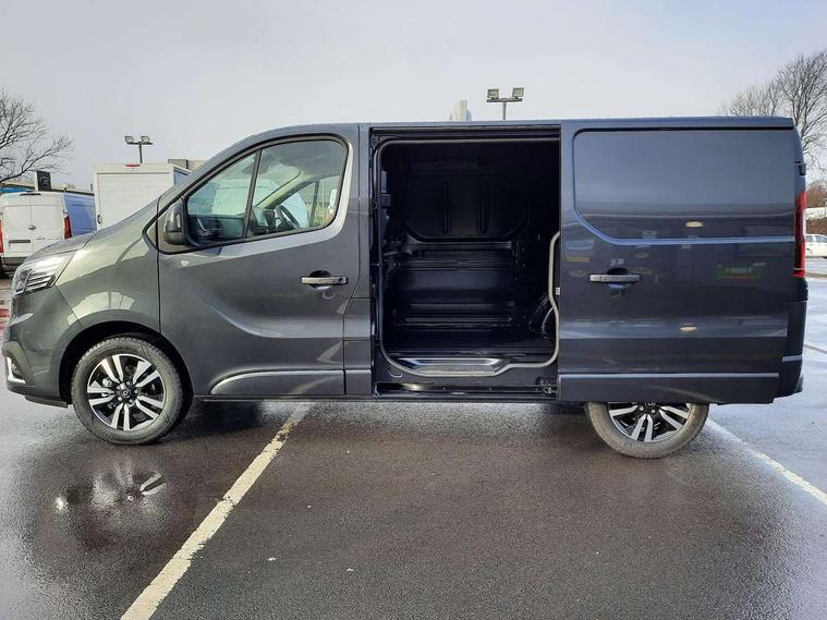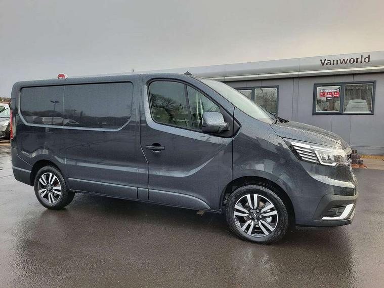 7" Colour TFT driver information display, Adaptive cruise control, Driver attention alert, Driver drowsiness warning, E-Call - automated emergency call, Easy link navigation with 8" touchscreen DAB radio with bluetooth, USB + aux input, compatible with Apple CarPlay and Android Auto, ECO mode button, Gearshift indicator, Intelligent Speed Assist, Lane departure warning system, PAS, Smart phone integration with Android auto & Apple CarPlay, Traffic sign recognition, Trip computer, Automatic high beam, Body coloured door mirrors, Body coloured door rail and rear tail light column with chrome grille, Body coloured front bumper, Body coloured side mouldings, Chrome Grille, Electric folding door mirrors, Electric front windows with one touch drivers window, Front fog lights, Full LED headlights with C-shaped DRL, Roof bar fixings, Wide view mirror, 12V power socket in front, 14 load anchorage points, Climate control, Closed glovebox, Height adjustable drivers seat with armrest and lumbar adjustment, Interior LED cabin lighting, Java cloth upholstery, LED load space lighting, Passenger bench seat with Mobile Office fold down middle passenger seat, with detachable A4 clipboard and laptop storage, Premium dashboard with horizontal grain and chrome styling, Premium faux leather steering wheel, Look pack - Trafic, Parking pack - Trafic, Visibility pack - Trafic, 3 point height adjustable seatbelts with pretensioners and load limiter, Driver and passenger seatbelt reminder, Driver's airbag, Front lateral and curtain airbags and passenger airbag with deactivation, Alarm - Thatcham T2 volumetric alarm, Alcohol interlock pre-device, Deadlocking, Electronic immobiliser, Hands free key card with push button stop/start function, Keyless entry system, Remote central locking, 12v socket in loadspace, 20L AdBlue tank, 4 disc brakes, 80 litre fuel tank, ABS with EBD (Electronic Brake force Distribution), Active emergency braking system, ESC (Electronic Stability Control) with Hill Start Assist and Grip Xtend, Over speed prevention, 17" Avens diamond cut alloy wheels,