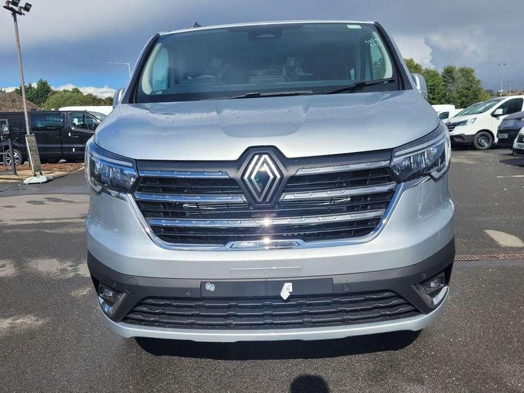360 degree parking sensors (front, rear and lateral ultra sonic sensors), 7" Colour TFT driver information display, Driver attention alert, Driver drowsiness warning, E-Call - automated emergency call, Easy link navigation with 8" touchscreen DAB radio with bluetooth, USB + aux input, compatible with Apple CarPlay and Android Auto, ECO mode button, Gearshift indicator, Intelligent Speed Assist, Lane departure warning system, PAS, Rear parking camera, Smart phone integration with Android auto & Apple CarPlay, Trip computer, Automatic high beam, Blind spot mirror on passenger sunvisor, Body coloured door mirrors, Body coloured door rail and rear tail light column with chrome grille, Body coloured front bumper, Body coloured side mouldings, Chrome Grille, Electric folding door mirrors, Electric front windows with one touch drivers window, Front fog lights, Full LED headlights with C-shaped DRL, New brand identity, Roof bar fixings, Side loading door - L and R glazed with opening window, Wide view mirror, 12V power socket in front, 16 load anchorage points, 2nd row of 3 passenger seats Individual seats with adjustable headrests, ISOFIX (left & right seat), 2 armrests, Climate control, Closed glovebox, Glazed full bulkhead, Height adjustable drivers seat with armrest and lumbar adjustment, Interior LED cabin lighting, Interior side panels - load area, Interior side panels up to windows, Java cloth upholstery, LED load space lighting, Premium dashboard with horizontal grain and chrome styling, Premium faux leather steering wheel, Look pack - Trafic, Parking pack - Trafic, Visibility pack - Trafic, 3 point height adjustable seatbelts with pretensioners and load limiter, Driver and passenger airbags, Driver and passenger seatbelt reminder, Front lateral and curtain airbags and passenger airbag with deactivation, Alarm - Thatcham T1 volumetric alarm, Alcohol interlock pre-device, Deadlocking, Electronic immobiliser, Hands free key card with push button stop/start function, Keyless entry system, Remote central locking, 20L AdBlue tank, 4 disc brakes, 6 speed gearbox, 80 litre fuel tank, ABS with EBD (Electronic Brake force Distribution), Active emergency braking system, ESC (Electronic Stability Control) with Hill Start Assist and Grip Xtend, 17" Avens diamond cut alloy wheels,