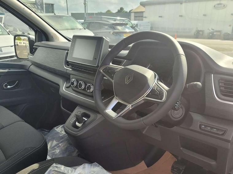 360 degree parking sensors (front, rear and lateral ultra sonic sensors), 7" Colour TFT driver information display, Driver attention alert, Driver drowsiness warning, E-Call - automated emergency call, Easy link navigation with 8" touchscreen DAB radio with bluetooth, USB + aux input, compatible with Apple CarPlay and Android Auto, ECO mode button, Gearshift indicator, Intelligent Speed Assist, Lane departure warning system, PAS, Rear parking camera, Smart phone integration with Android auto & Apple CarPlay, Trip computer, Automatic high beam, Blind spot mirror on passenger sunvisor, Body coloured door mirrors, Body coloured door rail and rear tail light column with chrome grille, Body coloured front bumper, Body coloured side mouldings, Chrome Grille, Electric folding door mirrors, Electric front windows with one touch drivers window, Front fog lights, Full LED headlights with C-shaped DRL, New brand identity, Roof bar fixings, Side loading door - L and R glazed with opening window, Wide view mirror, 12V power socket in front, 16 load anchorage points, 2nd row of 3 passenger seats Individual seats with adjustable headrests, ISOFIX (left & right seat), 2 armrests, Climate control, Closed glovebox, Glazed full bulkhead, Height adjustable drivers seat with armrest and lumbar adjustment, Interior LED cabin lighting, Interior side panels - load area, Interior side panels up to windows, Java cloth upholstery, LED load space lighting, Premium dashboard with horizontal grain and chrome styling, Premium faux leather steering wheel, Look pack - Trafic, Parking pack - Trafic, Visibility pack - Trafic, 3 point height adjustable seatbelts with pretensioners and load limiter, Driver and passenger airbags, Driver and passenger seatbelt reminder, Front lateral and curtain airbags and passenger airbag with deactivation, Alarm - Thatcham T1 volumetric alarm, Alcohol interlock pre-device, Deadlocking, Electronic immobiliser, Hands free key card with push button stop/start function, Keyless entry system, Remote central locking, 20L AdBlue tank, 4 disc brakes, 6 speed gearbox, 80 litre fuel tank, ABS with EBD (Electronic Brake force Distribution), Active emergency braking system, ESC (Electronic Stability Control) with Hill Start Assist and Grip Xtend, 17" Avens diamond cut alloy wheels,