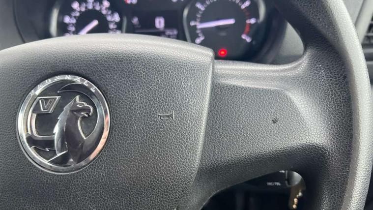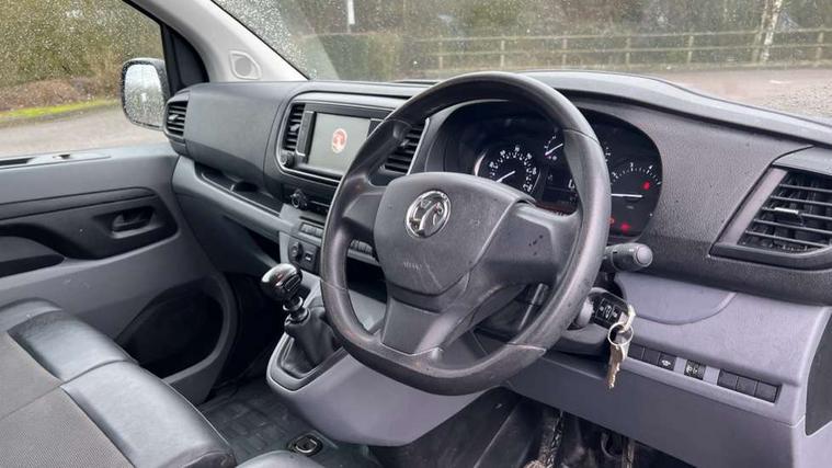 Driver drowsiness system, e-Call and b-Call, Hydraulic power assisted rack and pinion system, Instrumentation - Speedometer, rev counter, fuel gauge with low fuel warning light and coolant temperature warning light, Multi function trip computer, trip odometer, vehicle range, average speed, driving time, average and instantaneous fuel economy, Multimedia 7"colour touch, AM/FM stereo, DAB, RDS traffic prog, 4 speakers, USB, Bluetooth A2DP audio stream, mircrophone, Applecarplay/Androidauto, phone book, PAS, Rear parking distance sensor, Vauxhall connect box, Body coloured door handles, Electric front windows with one touch up/down facility, Electrically adjustable + heated door mirrors, Flexible roof mounted aerial, Front cornering lights, Front fog lights, Halogen headlights, High beam assist, Lights on audible warning, reversing light, hazard warning, rear fog light, high level brake light and side repeat indicator, Side protection mouldings, Air conditioning with air recirculation facility, pollen filter, illuminated controls and chilled glovebox facility, Cab soundproofing, Curitiba cloth upholstery with vinyl side bolsters, Driver seat - Height, reach, backrest recline, lumbar adjustment, driver's seat armrest and padded head restraint, 6 way adjustable drivers seat, Facia storage-upper glovebox, open lower glovebox with 12v socket and aux-in , lower shelf, A4 storage on top, two drink holders, pocket in gear lever, Fixed dual front passenger bench seat and backrest with underseat storage and height adjustable front padded head restraints, Fixed floor mounted load restraint lashing eyes x6, FlexCargo load through bulkhead, Fold flat centre seat backrest, Front door pockets - three separate compartments in each door, Mistral Black/Grey facia and door trim, Reach and rake adjustable steering wheel and facia mounted gear lever, Three spoke steering wheel with satin chrome effect bezel, Appearance pack - Vivaro L1, Visibility Pack - Vivaro, 3 point seat belts, Driver airbag and front passenger airbag with deactivation switch, Height adjustable outer front seatbelts, Inertia reel lap and diagonal seatbelts for all seats, Seatbelt remainder for driver and passenger, Electronic engine deadlock immobiliser, steering column lock, lockable fuel filler cap and anti theft spare wheel cradle, Remote control door locking, selective door locking, two keys with integral remote and door deadlocks, Security alarm system with monitors doors, tailgate, bonnet and the passenger compartment, 22.5 litres AdBlue tank, 70 litre fuel tank, Electronic brake force distribution, Emergency brake assist, Engine start/stop system, ESP plus + traction control, Floor mounted handbrake lever, Four channel Anti lock braking system, Front ventilated and rear disc brakes, Hill start assist, Six speed manual gearbox, Speed limiter, 16" steel wheels with full diameter wheel trims,