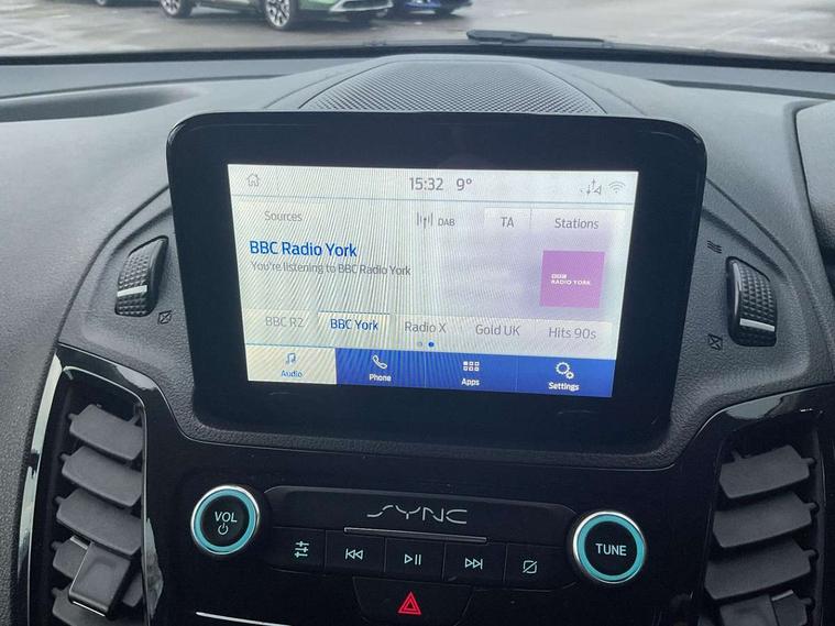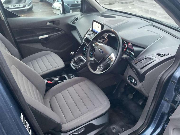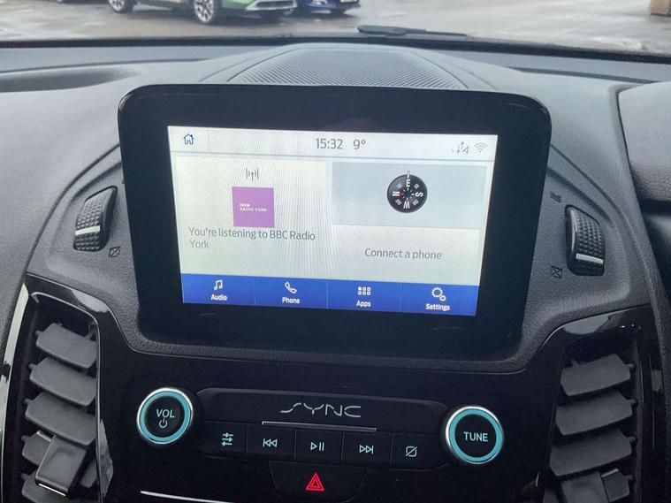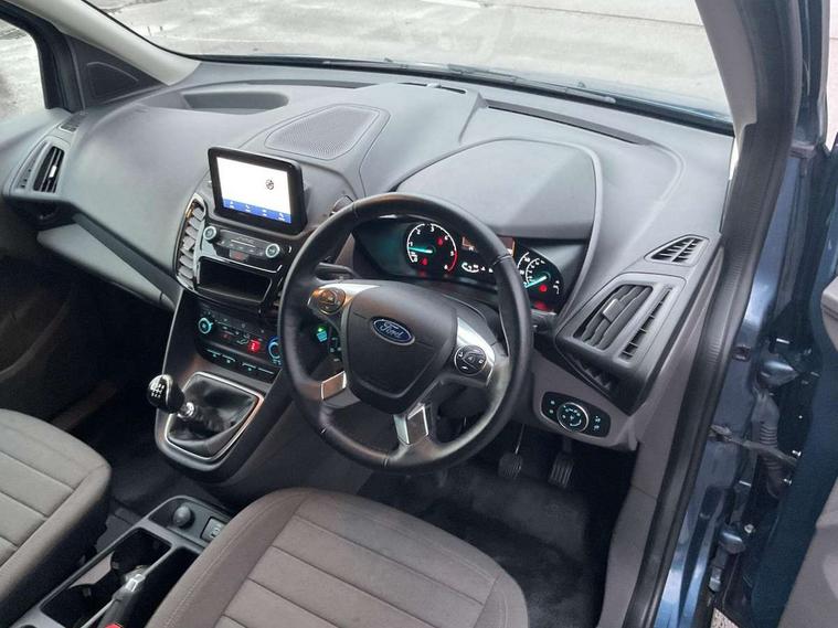 Easy fuel capless refuelling system, Eco coach, Embedded modem, Mid series analog cluster, PAS, Trip computer, Steering wheel mounted audio controls, 180 degree rear cargo doors, Active grille shutter, Automatic headlamps with follow me home with automatic windshield wiper, Body colour side protection mouldings, Body coloured door handles, Body coloured door mirrors, Body coloured lift/decklid exterior handles, Body coloured plastic front bumper, Body coloured rear bumper end caps, Daytime running lights, Driver one touch up/down power windows, Dual power heated fold back mirrors, Electric windshield defroster, Emergency brake light flashing, Front fog lights with adaptive cornering, Front lip spoiler, High mounted stop lamp, Hinged rear cargo door, Instrument panel stowage box, Moulded colour 3 bar radiator grille, Non infra red reflection windscreen, Rear fog lights, Rear tinted glass, Self coloured rear bumper, 12V socket, 2 front cupholders, 2 way front headrestraints, 4 way manually adjustable driver seat with lumbar support, Bright interior door handles, Centre console, Complete rear trim board, Configurable interior light, Door trim panel level 2, Driver seat rotary recliner, Driver sunvisor with mirror and ticket pocket, Front grab handles, Glove box lights, Glovebox with lid, Header courtesy lights with 2 map lights, High series fabric soft door armrest, Leather steering wheel, LED load compartment light, Ligne cloth upholstery, Overhead storage compartment, Passenger seat rotary recliner, Passenger sunvisor, Pollen filter without carbon filter, Reach and rake adjustable steering column, Refrigerant R134a, Rubber partial floor covering, Sensico gear shift knob, Key combination pack 2 - Transit Connect, Black seat belt, Child proof rear door locks, Driver airbag restraint, Enabled door auto relocking, Front active seat belts, Front seat belt adjuster, Configurable Unlocking, Immobiliser, Keyless start, Locking wheel nuts, Power door dead locks, Remote central double locking, Thatcham category 1 alarm with 2nd remote key, ABS, Auto start/stop system, Emergency brake assist, Heavy duty battery, Hill start assist, Power 4-wheel disc, Standard duty alternator, Traction control, 16" 6.5 7 spoke aluminium alloy wheels, 205/60 R16 tyre, Less wheel cover, Standard tire tread,