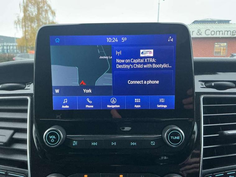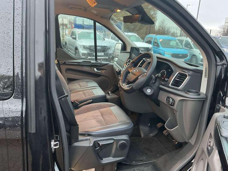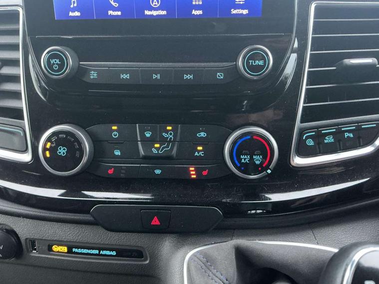 Easy fuel capless refuelling system, Embedded modem, Ford Eco mode, PAS, Selectable drive mode, Trip computer, Vehicle maintenance monitor, Audio controls mounted on steering wheel, 180 Degree rear cargo check arms, Automatic headlamps with follow me home, Automatic lights and wipers, Automatic windshield wiper, Body colour door handles, Body coloured body side mouldings, Body coloured door mirrors, Body coloured lift/decklid exterior handles, Body coloured rear bumpers, Chormed grille with 3 bars, Delete roof mounted turn signals, Door open tyre carrier drop, Driver only power front window with one touch down, Emergency brake light flashing, Front splash guards/Mud flaps, Headlamp levelling, High mounted stop lamp, Intermittent front wash/wipe, Intermittent variable windshield wiper, Kerbside side load doors, Low roof line, Passenger side sliding load door with track cover, Quad beam headlamps, Rear cargo hinged door, Rear door edge warn reflectors, Rear mudflaps, Rear splash guards, Restricted side load door opening, Tutone painted plastic front bumper, Wide bodyside body coloured moulding, 2 Interior grab handles, 2nd row three seat wide bench, 2nd/3rd Row courtesy light, 4 Load compartment tie down loops, Assist handle, B pillar assist handle, Cloth upholstery, Colour keyed exterior pack, Driver and passenger sunvisors with illuminated vanity mirrors, Extended carpet inside floor cover with rubber rear, Extended molded headliner, Floorwell lights, Front manual air conditioning, Glazed bulkhead, Header mounted courtesy lights - 2 map lights, Height adjustable head restraints, Illuminated footwell, Internal grab handles, Isofix child seat attachments - centre and offside 2nd row seats, Leather gearshift knob, LED load compartment light, Lockable glove box, Map reading lights, Passenger underseat storage box, Reach and rake adjustable steering column, Rear coat hook, Recirculation heater, Side rear door trim panel - Level 1, Sunglasses roof storage, Tool kit, Washer tank level warning lamp, Interior trim accent pack C - Transit custom, Rear seat pack 3 - Transit Custom, 3 point seatbelts for all seats, Driver's airbag, Dual note electric horn, Front active seat belts, Front passenger airbag restraint with driver/Passenger front seat belt buckle pretensioner and Passenger air bag deactivation, Height adjustable drivers seatbelt mount, Passenger seatbelt height adj, Rear seat belts, Seatbelt remainder for driver and passenger, Auto locking on drive-away, Auto relocking, Configurable unlocking 2, Locking wheel lug nut, Multi channel door entry remote and 3 Button key fob, Power door dead locks, Power lock group, Remote central locking, Thatcham category 1 alarm, Two step door unlock system, 2 12v sockets, 80 litre fuel tank, ABS, Auto start/stop system, Diesel particulate filter, ESP, ESP + EBA, Extra heavy duty alternator, Mechanical parking brake, Roll stability control, Side wind mitigation, Standard duty suspension, 16" 6.5 alloy wheels, Full wheelcovers,