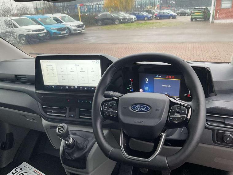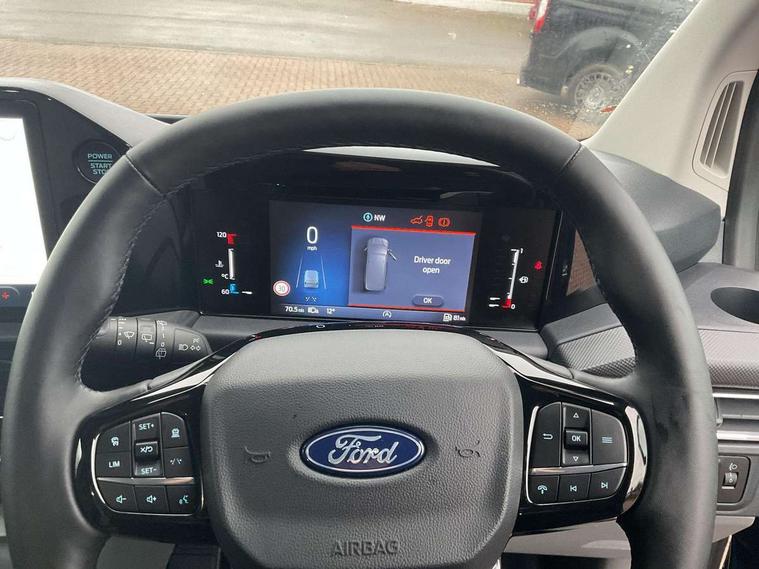 13" Touchscreen, 5G embedded modem, AECS NO SMS/Roll Detect 2G, PAS, Tyre pressure monitor, SYNC 4 - Android Auto/Apple Car Play, advance speech recognition, over the air update capability, Automatic headlights, Automatic windscreen wipers, Body coloured door mirrors, Body coloured front bumper, Body coloured rear bumpers, Daytime running lights, Electric front windows with one touch facility for driver and front passenger, Front mud flaps, Front splash guards, Low roof line, Quickclear front window defroster, Rear cargo hinged door, Rear splash guards, Trailer sway control, 6 Load compartment tie down loops, Courtesy light, Interior grab handle with driver's sunglasses holder, LED lights, Locking glove box lid, Sensico gearshift knob, 2 remote keys, Alcohol Interlock wiring preparation pack, Keyless entry and start, Locking wheel lug nut, Thatcham category 1 alarm, 20L AdBlue tank, ABS, Diesel particulate filter, ESP, Hill launch assist, Traction control, Full wheelcovers,