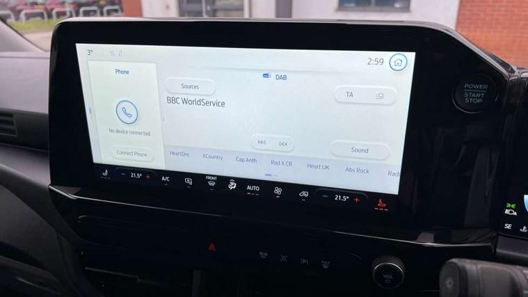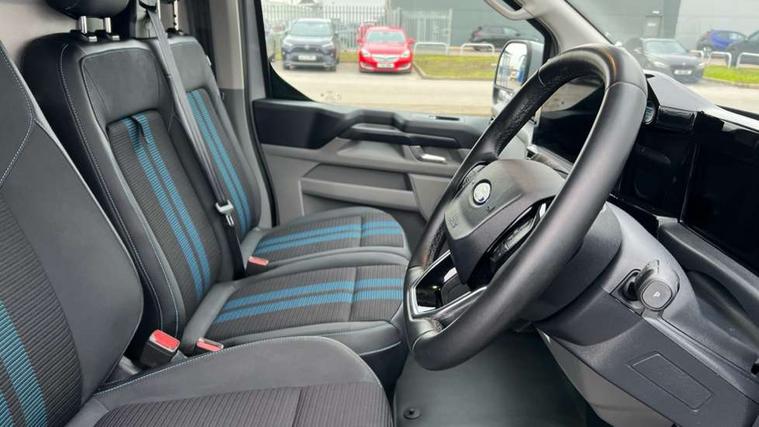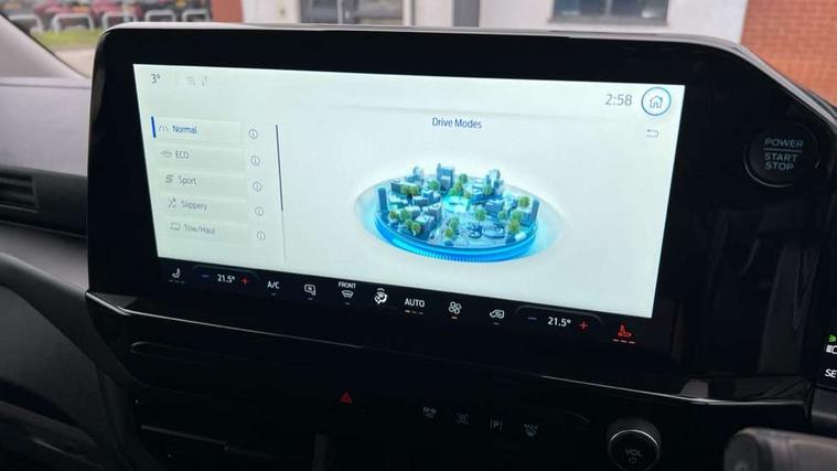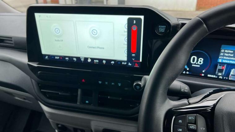 13" Touchscreen, 5G embedded modem, AECS NO SMS/Roll Detect 2G, Close Assist, PAS, Tyre pressure monitor, Wireless charging, SYNC 4 - Android Auto/Apple Car Play, advance speech recognition, over the air update capability, Automatic headlights, Automatic windscreen wipers, Body coloured door mirrors, Body coloured front bumper, Body coloured rear bumpers, Daytime running lights, Electric front windows with one touch facility for driver and front passenger, Front mud flaps, Hood Accent Stripes, LED tail lamps, Low roof line, Power cinch latch, Quickclear front window defroster, Rear cargo hinged door, Rear spoiler, Trailer sway control, 6 Load compartment tie down loops, Courtesy light, Dual zone automatic air conditioning, Interior grab handle with driver's sunglasses holder, LED lights, Locking glove box lid, Sensico gearshift knob, USB/Aux power socket, Passenger airbag, 2 remote keys, Alcohol Interlock wiring preparation pack, Keyless entry and start, Locking wheel lug nut, Standard unlocking, Thatcham category 1 alarm, 20L AdBlue tank, ABS, Diesel particulate filter, ESP, Hill launch assist, Traction control, 16" Steel spare wheel, Full wheelcovers,