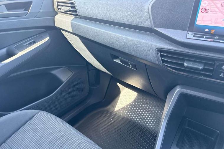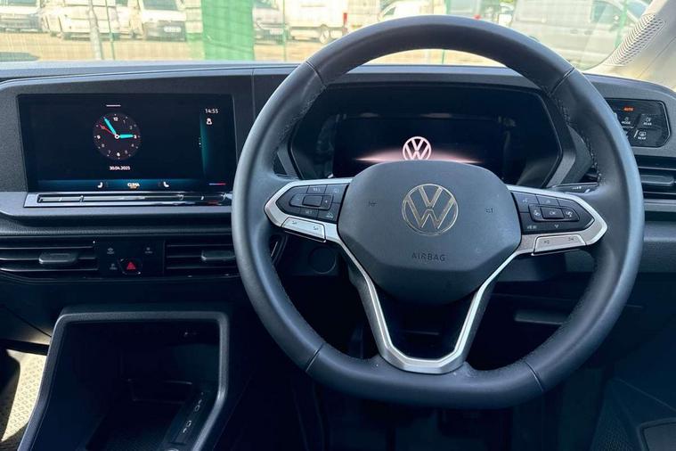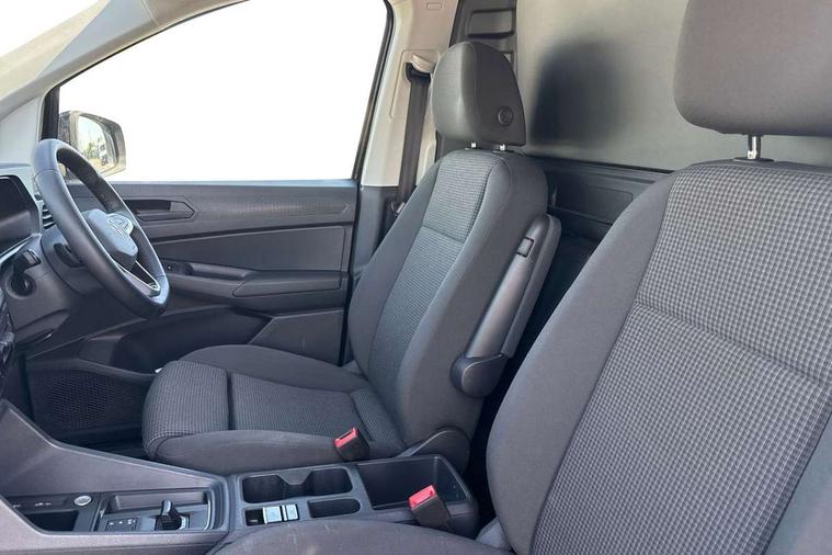 Bluetooth - Mobile phone interface, Car2X technology, Driver alert system, eCall emergency system, Intelligent Speed Assist, Lane assist, Seatbelt warning indicator, Service indicator, Start-stop system with regenerative braking, 2 USB interfaces type C in dashboard, App-Connect - Wireless for Apple CarPlay, DAB Radio, We Connect Plus Preparation, Automatic hazard light activation under emergency braking, Black painted exterior mirror housings, body-colored door handles and Silver sliding door rail, Body coloured bumpers, Electric front windows, LED rear combination lights, LED rear tail lights, Roof rail preparation, Windscreen wiper with variable intermittent delay and wash-wipe system, Dimming breakaway interior rear view mirror, Electronically controlled heating system, ergoComfort seats for driver, Interior light in headliner incorporting LED technology, Lockable glove compartment door with light, Manual heating and ventilation system, Manual height adjustment for front seats and seat cushion inclination and depth adjustment on drivers seat, Multi function leather steering wheel, Power-adjustable lumbar support for drivers seat, Reach and rake adjustable steering column, Six lashing points for securing loads, Steering wheel paddle shift, Storage compartments under driver and front passenger seats, Sun visors with mirror, airbag label on front passenger sun visor, Winter pack plus - Caddy, 3-point seat belts in front, with pretensioner and height adjustment, Driver and front passenger airbag with front passenger airbag deactivation, Tyre pressure monitoring system, Anti-theft alarm system, interior monitoring, backup horn, and towing protection, Electronic engine immobiliser, Remote central locking with deadlocks, interior locking, Anti locking braking system (ABS), Automatic post collision braking system, Brake assist, Diesel particulate filter, Electric parking brake with auto hold function, Electronic brake force distribution (EBD), Electronic differential lock (EDL), Electronic stabilisation programme (ESP), Engine drag torque control (MSR), Hill hold assist, Traction control system (TCS), Decorative beige birch vein inserts, Wheel bolts with anti-theft protection (unlockable),