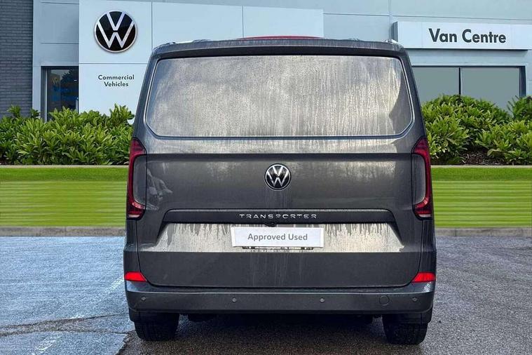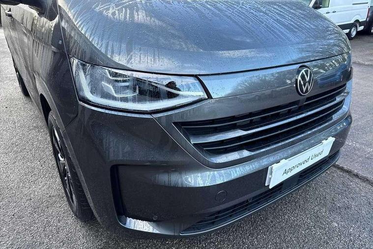 12" digital drivers display, 13" touchscreen infotainment display with wireless app connect and DAB radio, 5G Modem, Adaptive cruise control, Apple CarPlay and Android Auto, Dynamic road sign display, eCall emergency system, Electromechanical speed sensitive power steering, height and longitudinally adjustable steering column, Lane and blind spot assist with exit warning system, Preparation of VW connect and connect plus, Traffic jam assist, Wireless mobile phone charging, Wrong way driver warning, Body colour bumpers, Body coloured door handles, Body coloured door mirrors, Body coloured radiator grille, Electrically heated, adjustable and folding door mirrors, Heat reflecting side window glass, Mud flaps front and rear, Rear Transporter nameplate in black grained decorative trim, Vehicle opening configuration 1x 1st row of seats, 2x all doors, 12V outlet in centre console and 12V outlet on rear right D-pillar, 2x 15-W USB data/charging ports in dashboard and 1x USB-C, 1x USB-A center bottom, 2x LED lights in load compartment, 3x additional super bright LED lights in load compartment, 4 way height and tilt adjustable head restraints, 5 additional USB-C charging ports, Black plastic scuff plate for sliding door in cargo without illumination, Cabin interior lighting, Gear selector lever on steering wheel, Glasses compartment in driver side roof, Grab handle on A-pillar passenger side, Illuminated lockable glovebox, Lashing rings for reinforced floor covering, Narrow centre console with cup holder and compartment for mobile phone, Overhead storage compartment, Rubber floor covering in cab, Striped fabric upholstery, Without passenger seats in load compartment, Driver and front passenger airbag with front passenger airbag deactivation, Dual tone horn, Front and curtain airbags for driver and front passenger, Seat belt pretensioner for driver seat, Anti theft alarm system with interior monitoring in cab, backup horn and towing protection, Electronic immobiliser, Lockable wheel bolts, Preparation for alcohol ignition interlock, 5+ Promise, Alternator - 230A, Electromechanical brake booster, Electronic stability control, ABS, ASR with deactivation button, hill start assist and brake assist system,