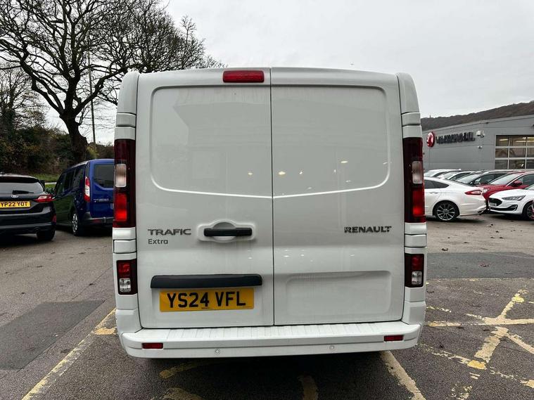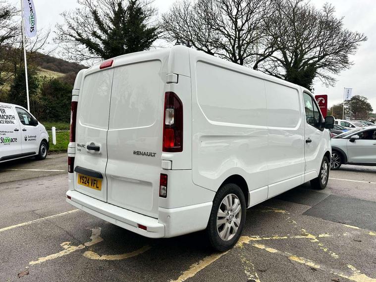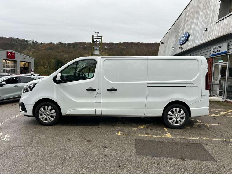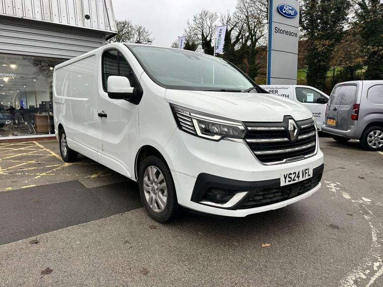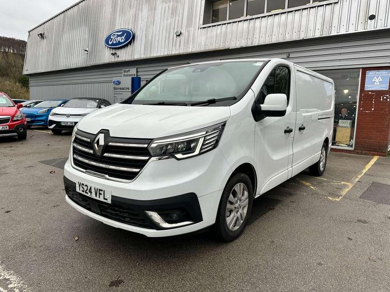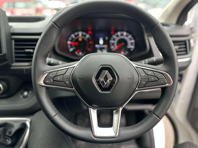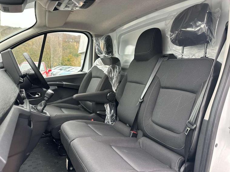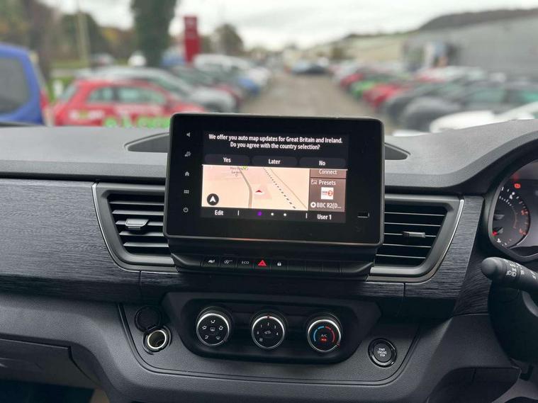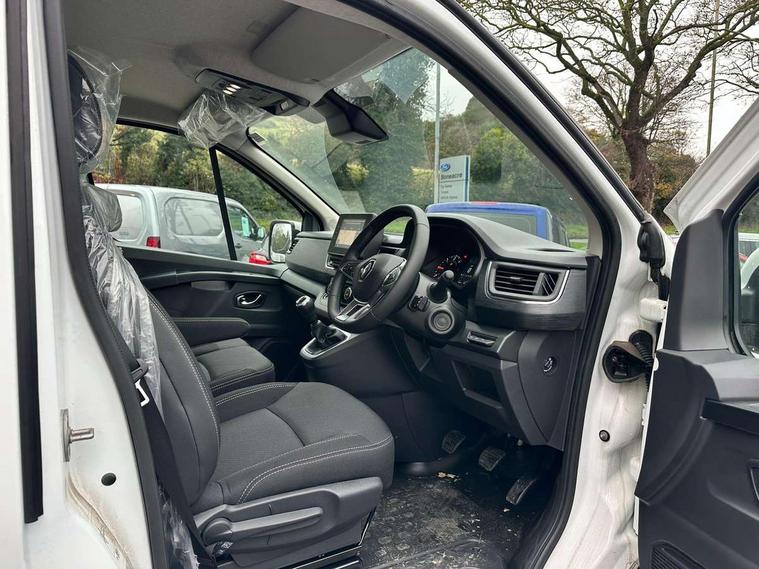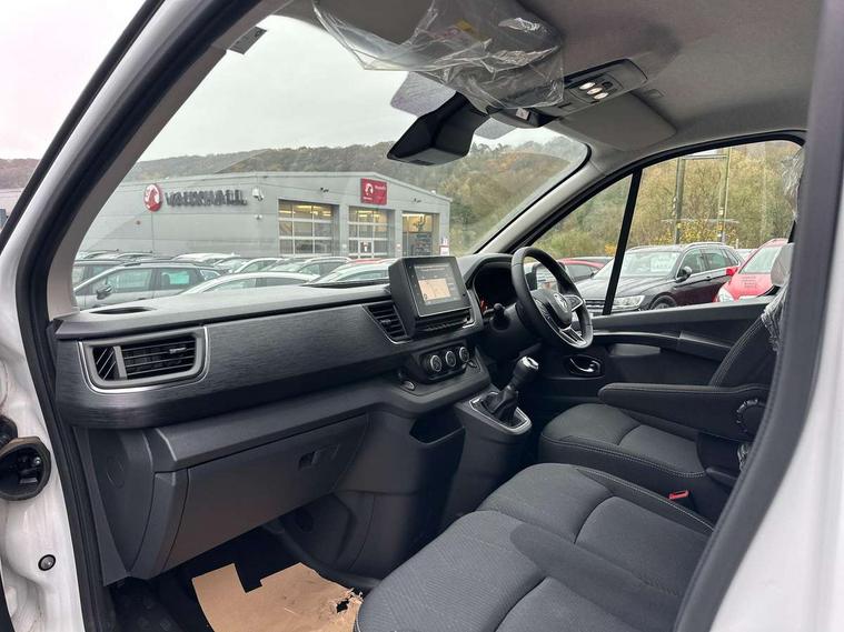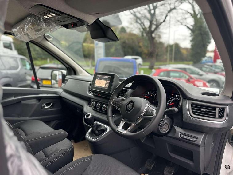 4.2" TFT colour driver information display, Driver attention alert, Easy link navigation with 8" touchscreen DAB radio with bluetooth, USB + aux input, compatible with Apple CarPlay and Android Auto, ECO mode button, Gearshift indicator, Lane departure warning system, PAS, Smart phone integration with Android auto & Apple CarPlay, Traffic sign recognition, Trip computer, Automatic high beam, Body coloured door mirrors, Body coloured door rail and rear tail light column with chrome grille, Body coloured front bumper, Body coloured side mouldings, Electric folding door mirrors, Electric front windows with one touch drivers window, Front fog lights, Full LED headlights with C-shaped DRL, Roof bar fixings, Wide view mirror, 12V power socket in front, 16 load anchorage points, Closed glovebox, Height adjustable drivers seat with armrest and lumbar adjustment, Interior LED cabin lighting, Java cloth upholstery, LED load space lighting, Mobile office, Passenger seat bench with under seat storage, Premium dashboard with horizontal grain and chrome styling, Premium faux leather steering wheel, Look pack - Trafic, Visibility pack - Trafic, 3 point height adjustable seatbelts with pretensioners and load limiter, Driver and passenger seatbelt reminder, Driver's airbag, Front lateral and curtain airbags and passenger airbag with deactivation, Alarm - Thatcham T2 volumetric alarm, Deadlocking, Electronic immobiliser, Hands free key card with push button stop/start function, Keyless entry system, Remote central locking, 12v socket in loadspace, 20L AdBlue tank, 4 disc brakes, 80 litre fuel tank, ABS with EBD (Electronic Brake force Distribution), Active emergency braking system, ESC (Electronic Stability Control) with Hill Start Assist and Grip Xtend, Over speed prevention, 17" Avens alloy wheels,