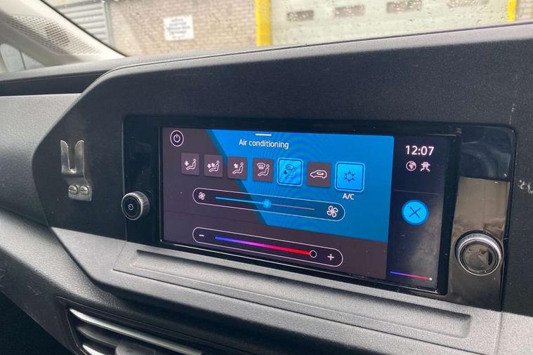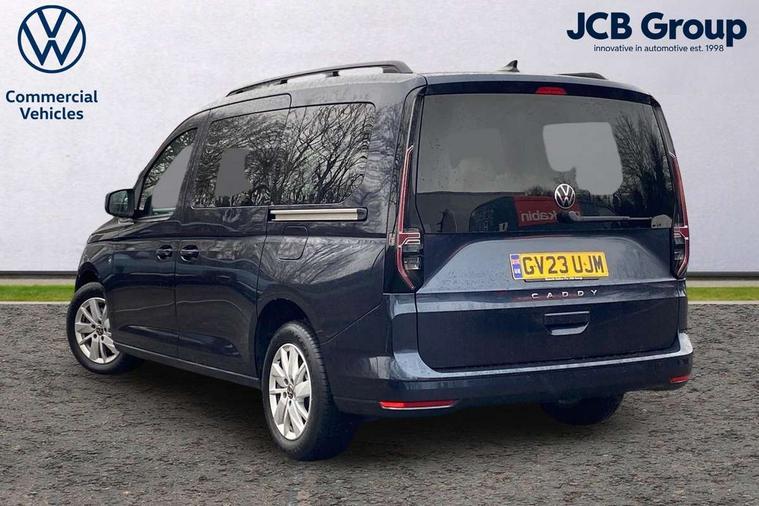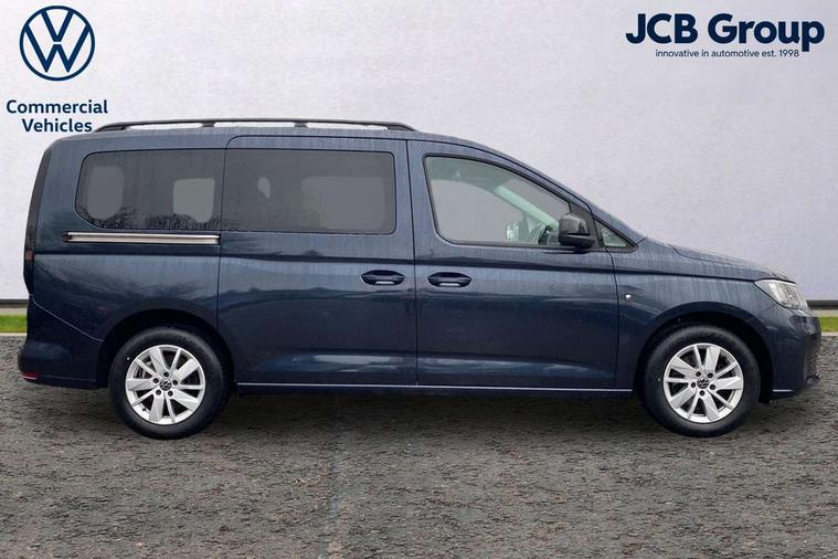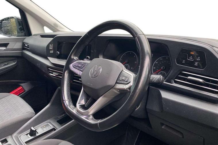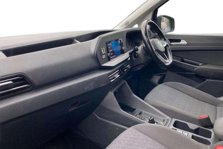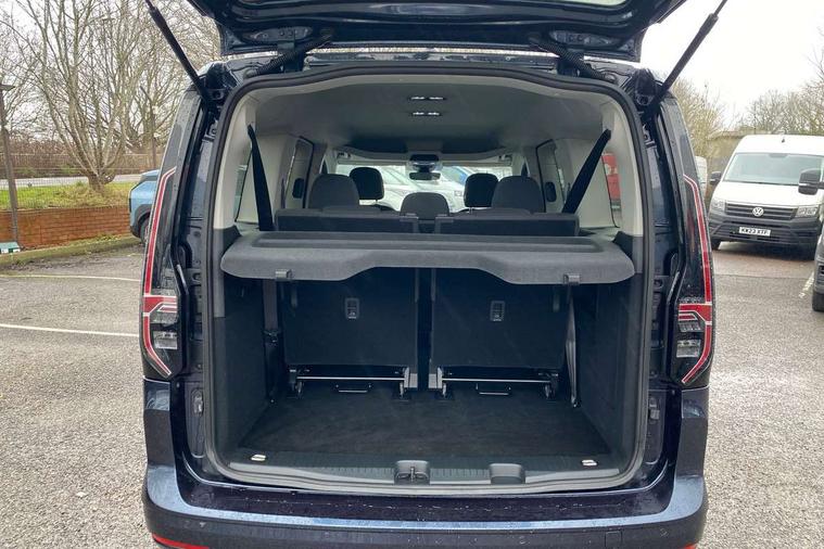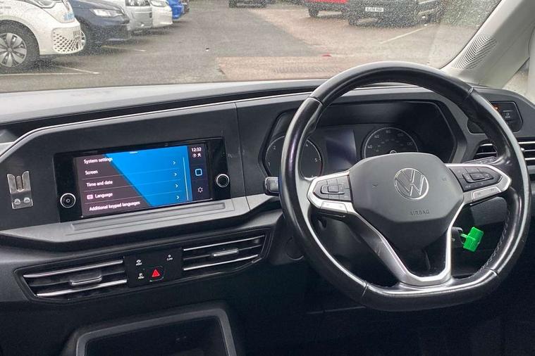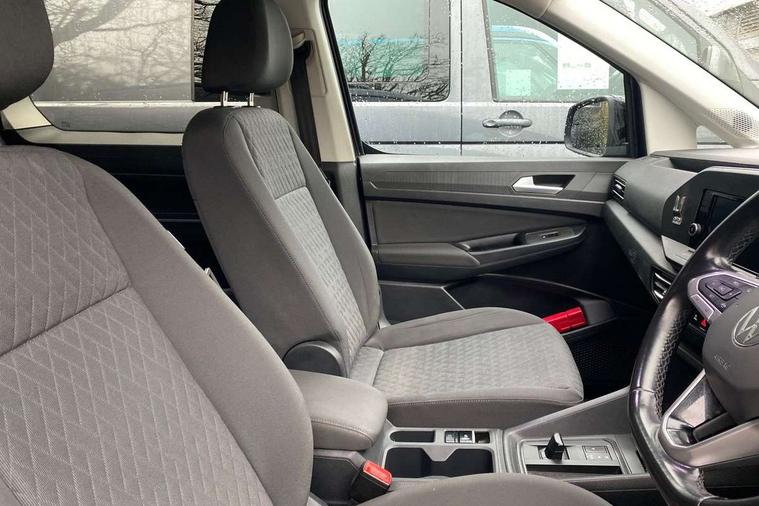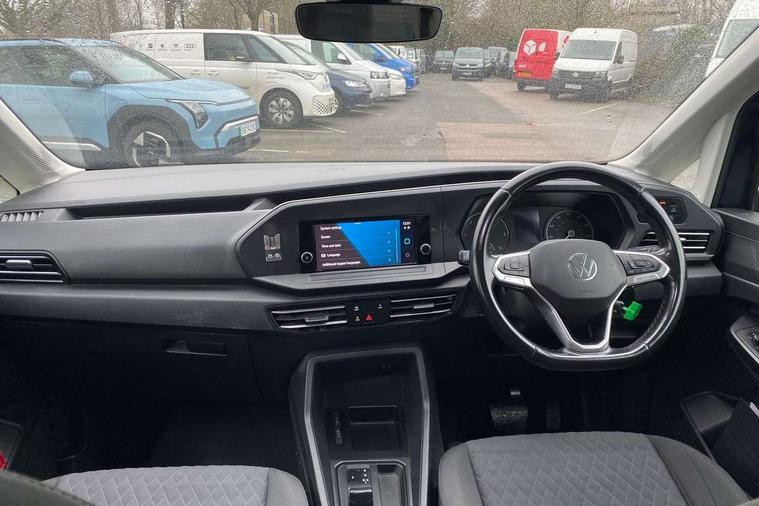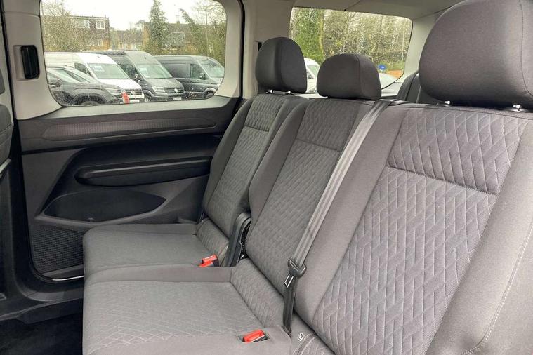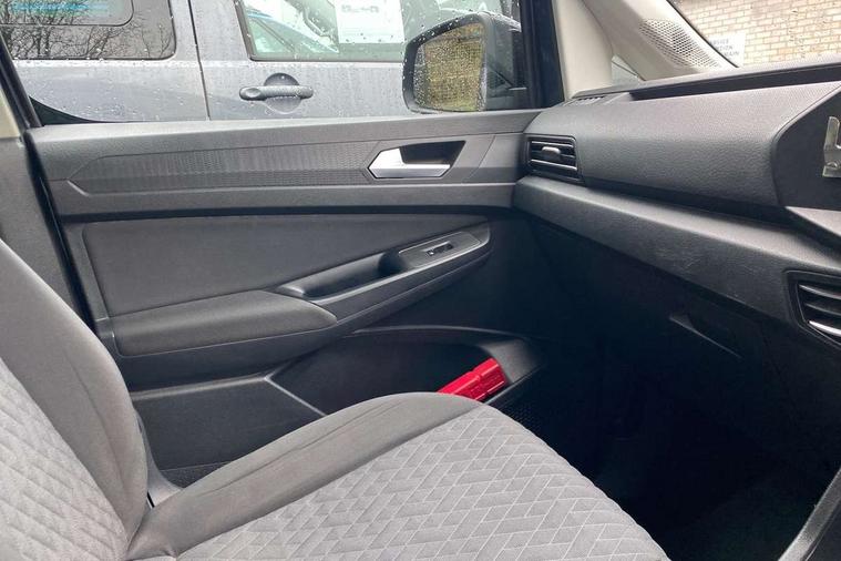 Driver alert system, eCall emergency call system, Gesture control, Lane keeping system, Multi function display, On board computer, Service interval indicator, Start/stop system with regenerative braking, Tailgate with window, We connect plus preparation, Diesel particulate filter, Electronic differential lock, 2 Type C USB, DAB Digital radio, Anti dazzle rear view mirror, Automatic hazard lights activation under emergency braking, Automatic headlight levelling system, Black painted exterior mirror housings, Body colour bumpers, Body colour door handles, Electric front windows, Electrically adjustable and folding door mirrors, Fixed side window in load/passenger compartment, Heat insulating windscreen, Heated rear window, LED rear combination lights, Rear window wiper and washer system with intermittent control, Silver sliding door rail, Third high level brake light, Twin near side and off side sliding doors, Windscreen wiper with variable intermittent delay and wash wipe system, 12V socket in passenger compartment, 5 standard interior lights in passenger compartment, Backrest release for front passenger seat, Carpet floor covering in cab, Carpet floor covering in passenger compartment, Centre console high with armrests adjustable, Centre console with 2 cupholders, Door and side trim panel in fabric, Electrically controlled heating system, Folding table on front seat backrests, Front head restraints, Front passenger seat foldable, Height adjustable head restraints, Isofix on 2nd row outer seats, Leather gearshift knob/handle, Leather multifunction steering wheel, LED interior light in headlining, Lockable glove compartment with light, Manual adjustable lumbar support in front seats, Manual front seats with height adjustment, Reach and rake adjustable steering column, Rear head restraints, Removable waste bin with cover for cab, Retractable luggage compartment cover, Seat occupied recognition for front seats, Sliding trunk cover, Split folding/removable rear seat, Storage drawers under front seats, Sun visors with mirror and airbag label on front passenger, Trialog cloth upholstery, 7 seat pack - Caddy, 3-point seat belts in front with pretensioner and height adjustment, 3x3 point rear seatbelts, Anti-lock braking system (ABS), Automatic post collision braking system, Autonomous emergency braking front assist with pedestrian and cyclist monitoring, Brake assist, Child locks on rear doors, Curtain airbag for outer seats in rear, Direct tyre pressure monitoring system, Driver and front passenger airbag with front passenger airbag deactivation, Electric parking brake with auto hold function, Electronic brake force distribution, Engine drag torque control, ESP, First aid kit with warning triangle and safety vest, Front centre airbag, Power operated child safety locks, Seat belt reminder, Side and curtain airbag for driver and front passenger, Traction control system (TCS), Anti theft alarm system with interior monitoring, backup horn and towing protection, Electronic engine immobiliser, Wheel bolts unlockable anti-theft protection, Decorative inserts in beige birch vein,