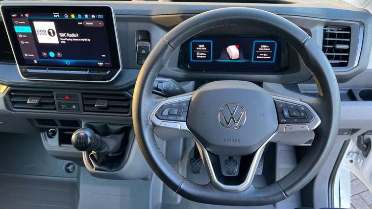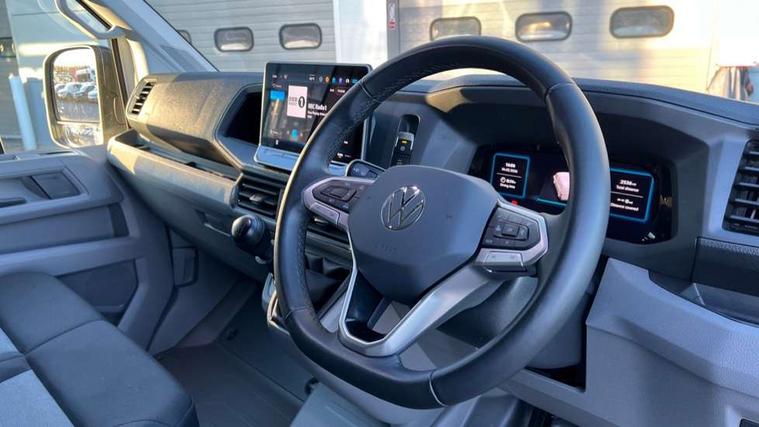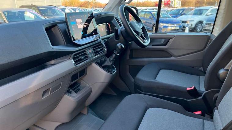 Bluetooth, Digital clock, Driver alert system, E-call + We connect basic preparation, Instrument cluster, Lights on warning buzzer, Locking fuel cap, Multi-function Display Plus, Rev counter, Service indicator, Speedometer, Voice control system, Composition media with 6.5" with we connect plus prep, 4 speaker, multifun display plus, USB, mob interface, app con, "We connect function", DAB Radio, Auto low beam mode, Leaving home function and manual coming home function, Cab doors, Convex and wide angle mirror, Driver seatbelt warning light, Electric windows, Electrically heated and adjustable door mirrors, Half painted front bumper, Heat insulating glass, Indicators in front door mirrors, One towing eye in front, Rear wing doors with 270 degree hinges, Special identification plate, Unpainted radiator grille, Air recirculation system, Ashtray, Centre console storage tray, CFCU preparation, Charcoal filter, Climatic air conditioning, Document holder on centre console, Drinks holders, Electromechanical Servotronic steering, Electronically controlled heating system, Fully adjustable suspension type driver seat, Grab handles on rear entry pillars, Height adjustable head restraints, Height and reach adjustable steering wheel, Illuminated glove compartment with lockable lid, Interior light, including 2 reading lights, Interior light, switchable by door, Jack and tool kit, Preparation for interface for external use with terminal block, Storage compartments in doors and in step, right, Storage tray on dashboard, Two 12V outlets in the cab (in the dashboard), Without rear side trim panel passenger load compartment, Non-smokers pack - Crafter, 3 point inertia reel belt on all seats, Automatic hazard light with emergency braking, Crosswind assist, Driver and front passenger airbag with front passenger airbag deactivation, Height adjustable seatbelts for outer cab seats, 1 rigid key, Anti-theft alarm with interior monitor, back up horn and tow away protect, overhead storage with two 1-DIN, reading light, SAFELOCK with 2 remote keys, Engine immobiliser, ABS, Automatic post collision braking system, EBA, EBD, EDL, ESP, Front disc brakes, HBA, Hill start assist, Parking brake - hill hold control, Start and stop system with regenerative braking, TCS, Hub cap covers,