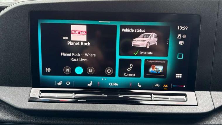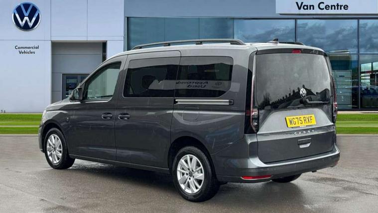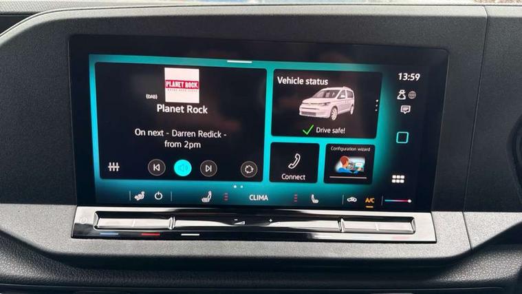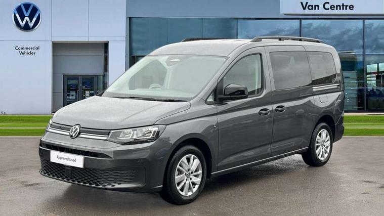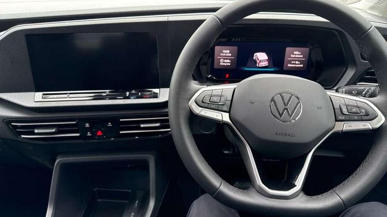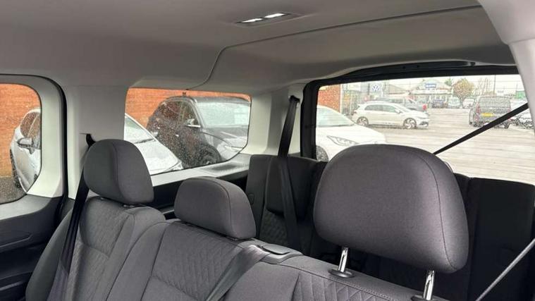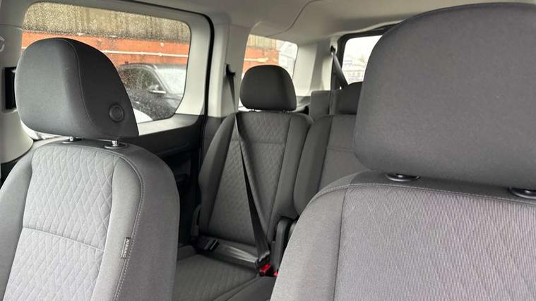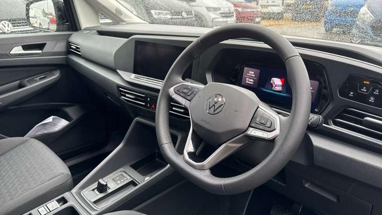 Bluetooth mobile phone interface, Cruise control + speed limiter, Digital cockpit, Driver alert system, eCall emergency call system, Front and rear parking sensors, Gesture control, Lane assist, Multi function display, On board computer, Rear view camera, Service interval indicator, Start/stop system with regenerative braking, We connect plus preparation, Diesel particulate filter, Electronic differential lock, 2 Type C USB, DAB Digital radio, Anti dazzle rear view mirror, Automatic hazard lights activation under emergency braking, Body colour bumpers, Electric front windows, Electrically adjustable and folding door mirrors, Fixed side window in load/passenger compartment, Heated rear window, LED rear tail lights, Rain sensor, Rear window wiper and washer system with intermittent control, Third high level brake light, Twin near side and off side sliding doors, Windscreen wiper with variable intermittent delay and wash wipe system, 12V socket in passenger compartment, 5 standard interior lights in passenger compartment, Backrest release for front passenger seat, Carpet floor covering in cab, Carpet floor covering in passenger compartment, Centre console high with armrests adjustable, Centre console with 2 cupholders, Door and side trim panel in fabric, Electrically controlled heating system, Folding table on front seat backrests, Front head restraints, Front passenger seat foldable, Glove compartment cover with light, Height adjustable head restraints, Illumination lockable glovebox compartment, Interior light in headliner incorporating LED technology, Isofix on 2nd row outer seats, Leather gearshift knob/handle, Leather multifunction steering wheel, Manual adjustable lumbar support in front seats, Manual front seats with height adjustment, Reach and rake adjustable steering column, Rear head restraints, Removable waste bin with cover for cab, Retractable luggage compartment cover, Seat occupied recognition for front seats, Sliding trunk cover, Split folding/removable rear seat, Storage drawers under front seats, Sun visors with mirror and airbag label on front passenger, Trialog cloth upholstery, 7 seat pack - Caddy, 3-point seat belts in front with pretensioner and height adjustment, 3x3 point rear seatbelts, Anti-lock braking system (ABS), Automatic post collision braking system, Autonomous emergency braking front assist with pedestrian and cyclist monitoring, Brake assist, Child locks on rear doors, Curtain airbag for outer seats in rear, Direct tyre pressure monitoring system, Driver and front passenger airbag with front passenger airbag deactivation, Electric parking brake with auto hold function, Electronic brake force distribution, Engine drag torque control, ESP, First aid kit with warning triangle and safety vest, Front centre airbag, Power operated child safety locks, Seat belt warning if unfastened, front and rear, Side and curtain airbag for driver and front passenger, Traction control system (TCS), Anti theft alarm system with interior monitoring, backup horn and towing protection, Electronic engine immobiliser, Wheel bolts unlockable anti-theft protection, Decorative inserts birch vein,
