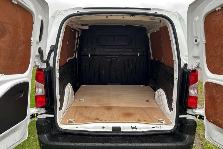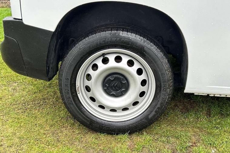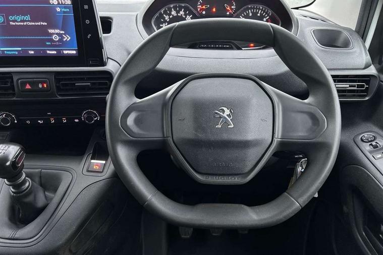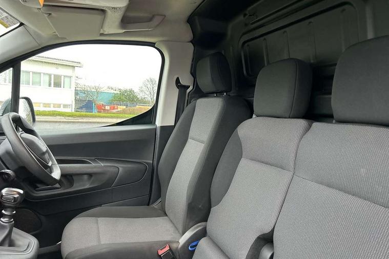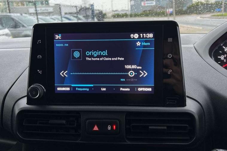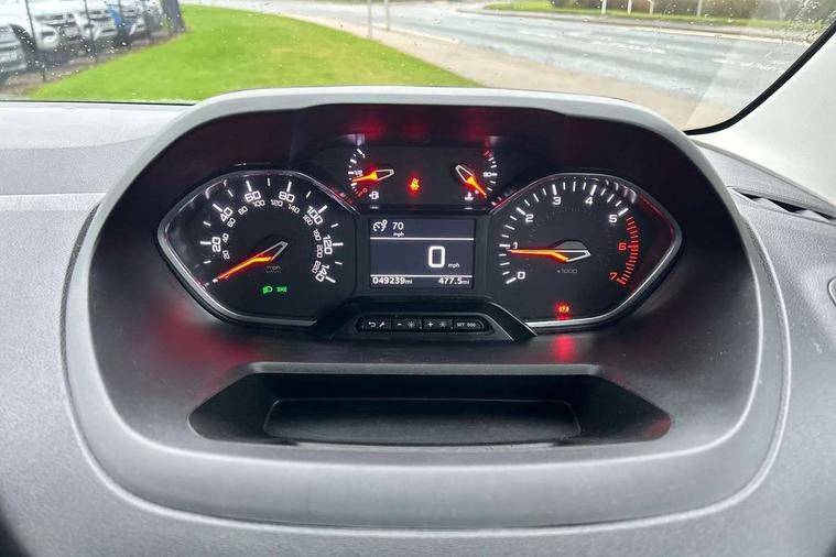 Electric power assisted steering with height and reach adjustable steering wheel, Lockable fuel cap, Multi-function on-board trip computer, Rev counter with maintenance and gear efficiency indicators (GEI), Tyre pressure monitor, Apple Carplay/Android Auto, Electric front windows with one touch operation, Electrically adjustable door mirrors, Electrically folding door mirrors with temperature sensor, Front fog lights, Heated door mirrors, Height adjustable halogen headlights with automatic illumination and integrated daytime running lights (DRLs), High level third brake light, Nearside side sliding door, Two speed intermittent front wipers, Visible VIN at windscreen base, 12 volt socket in dashboard, 6 floor mounted load securing rings, 6 way adjustable driver seat with lumbar support and under seat storage, Cup holders for driver and passenger on either side of the dashboard, Curitiba cloth upholstery, Front door pockets with 1.5L bottle holder, Hard plastic floor protection in cabin, Multiflex modular folding passenger bench seat with pivoting writing table, storage under central seat, load through hatch and load protection cover, Overhead storage shelf in cabin, Upper glove box storage compartment, Automatic activation of hazard warning lights on major deceleration, Door opening warning and audible lights on warning, Driver and passenger seatbelt unfastened warning, Driver's airbag, Dashboard mounted central locking push button and auto locking above 7mph, Manual door lock for front passenger door, Perimetric and volumetric thatcham category 1 approved alarm with tilt sensor, Remote central locking with deadlocking, selective cab and load area locking via 3 button plip remote control key, Thatcham approved rolling code transponder immobiliser, Automatic electronic parking brake, Electronic Stability Control and ABS with hill start assist, EBA and EBFD, Full size steel spare wheel,