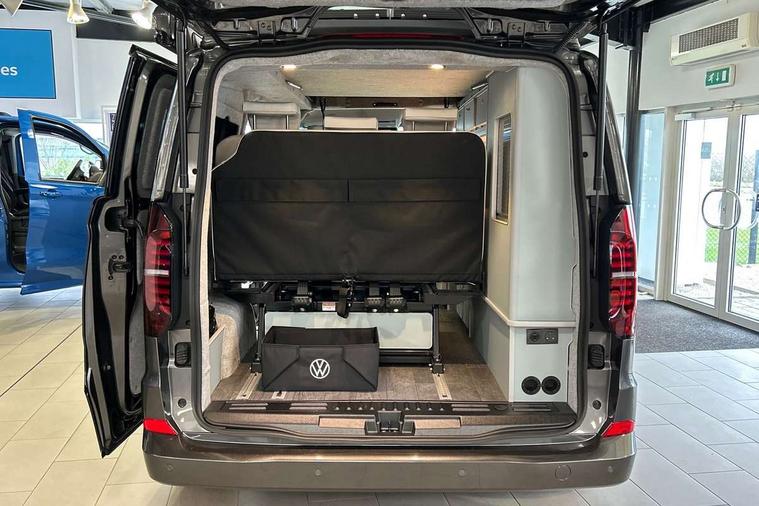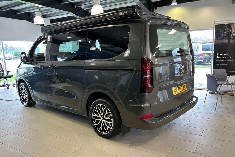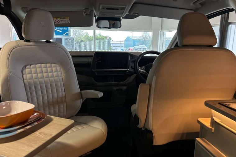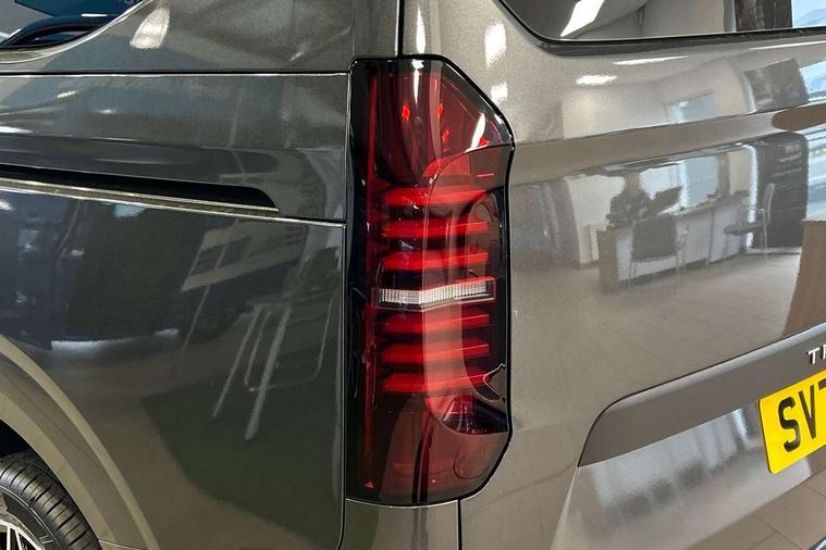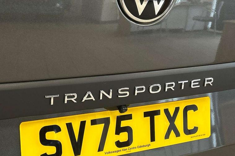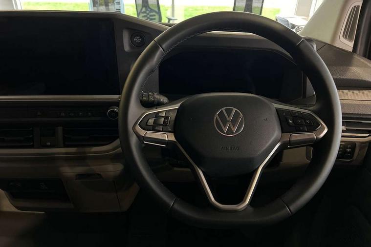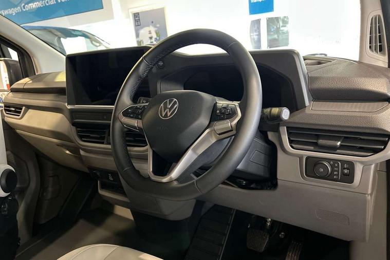 12" digital drivers display, 13" touchscreen infotainment display with wireless app connect and DAB radio, 5G Modem, Apple CarPlay and Android Auto, Cruise control, Dynamic road sign display, eCall emergency system, Electromechanical speed sensitive power steering, height and longitudinally adjustable steering column, Lane assist, Preparation of VW connect and connect plus, Wrong way driver warning, 4 speakers - 2x dashboard, 2x cab doors, Body coloured door handles, Heat reflecting side window glass, Mud flaps front and rear, Rear Transporter nameplate in black grained decorative trim, Vehicle opening configuration 1x 1st row of seats, 2x all doors, 2x 15-W USB data/charging ports in dashboard and 1x USB-C, 1x USB-A center bottom, 2x LED lights in load compartment, 3 spoke leather wrapped multi function steering wheel, 4 way height and tilt adjustable head restraints, Black plastic scuff plate for sliding door in cargo without illumination, Cabin interior lighting, Gear selector lever on steering wheel, Lashing rings for reinforced floor covering, Narrow centre console with cup holder and compartment for mobile phone, Overhead storage compartment, Roof grab handle on front passenger side, Rubber floor covering in cab, Striped fabric upholstery, Without passenger seats in load compartment, Driver and front passenger airbag with front passenger airbag deactivation, Dual tone horn, Front and curtain airbags for driver and front passenger, Seat belt pretensioner for driver seat, Anti theft alarm system with interior monitoring in cab, backup horn and towing protection, Electronic immobiliser, Preparation for alcohol ignition interlock, 5+ Promise, Alternator - 230A, Electronic stability control, ABS, ASR with deactivation button, hill start assist and brake assist system,