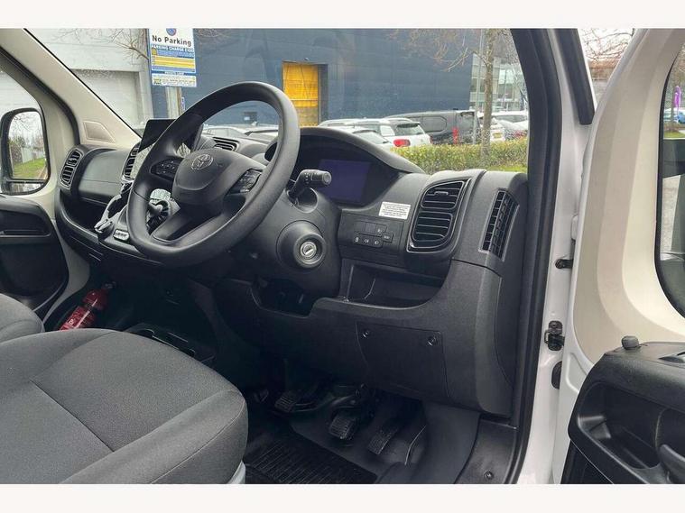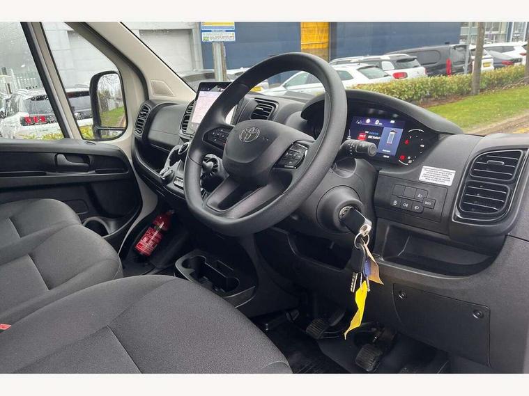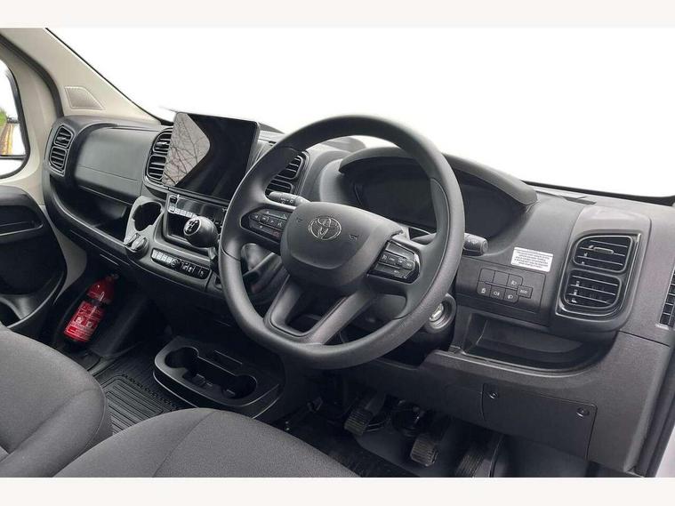 10" multimedia screen, 7" colour screen multi information display, Audio switches behind steering wheel, Bluetooth handsfree connectivity, Cruise control, Digital intrument cluster, Dynamic guide lines on reversing camera, Intelligent Speed Assist, Lane Departure Alert (LDA) switch on lower driver dashboard, Lane departure alert with steering control, Lane trace assist, Navigation system, PAS, Pre-collision system with pedestrian and cyclist detection, Rear parking sensors, Rear view camera, Road sign assist, Tyre pressure warning system (TPWS), Voice recognition, Voice recognition switch on steering wheel, 6 speakers, Apple Carplay/Android Auto, Digital radio (DAB), 180 degree opening rear doors, Automatic headlights, Automatic high beam, Black front bumper, Black insert on upper front grille, Black rear bumper, Halogen projector headlamps with LED daytime running lights, Heated door mirrors, LED Front light guide, Manually retractable door mirrors, Panel rear wing doors, Power adjustable door mirrors, Sliding side door - left, Smoke tinted (30%) privacy glass, 12v power outlet - Cargo area, Adjustable lumbar support on drivers seat, Automatic air conditioning, Cloth upholstery, Driver seat armrest, Height adjustable and sliding driver and front passenger seats, Inner load hooks on cargo deck, LED Boot light, Panel bulkhead, Telephone switches on steering wheel, Driver and front passenger airbags, Driver attention assist, Emergency call, Front seatbelt reminder, Rear seatbelt reminder, Anti tamper, glass breaking sensors, intrusion and motion sensor alarm, Hill start assist control, Vehicle stability control plus (VSC+), 15" steel wheels, Full size spare wheel, Underbody spare wheel carrier,