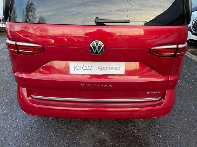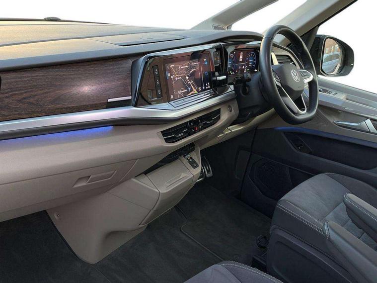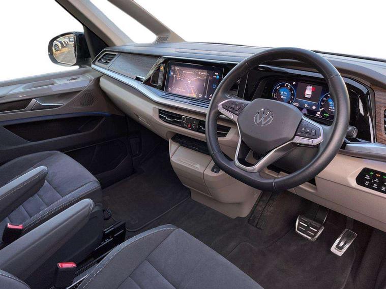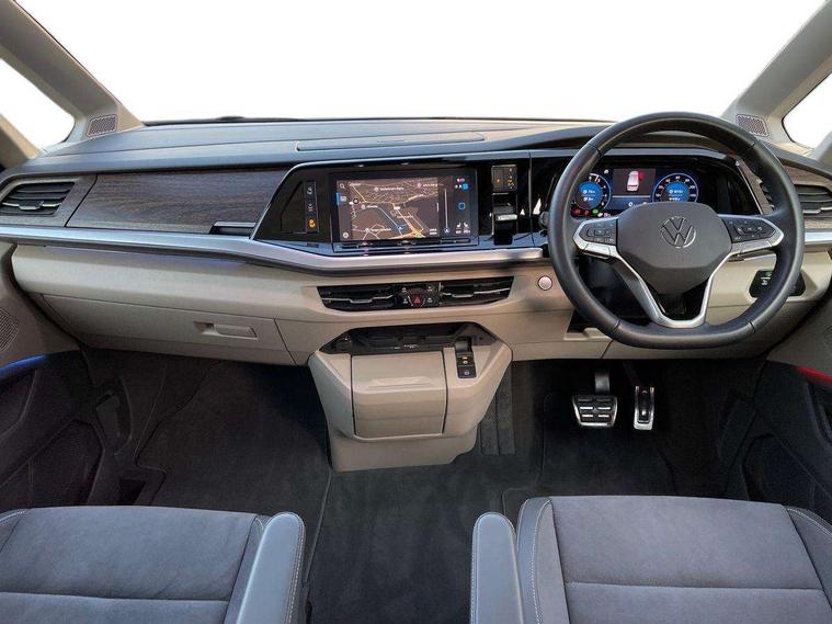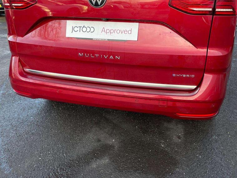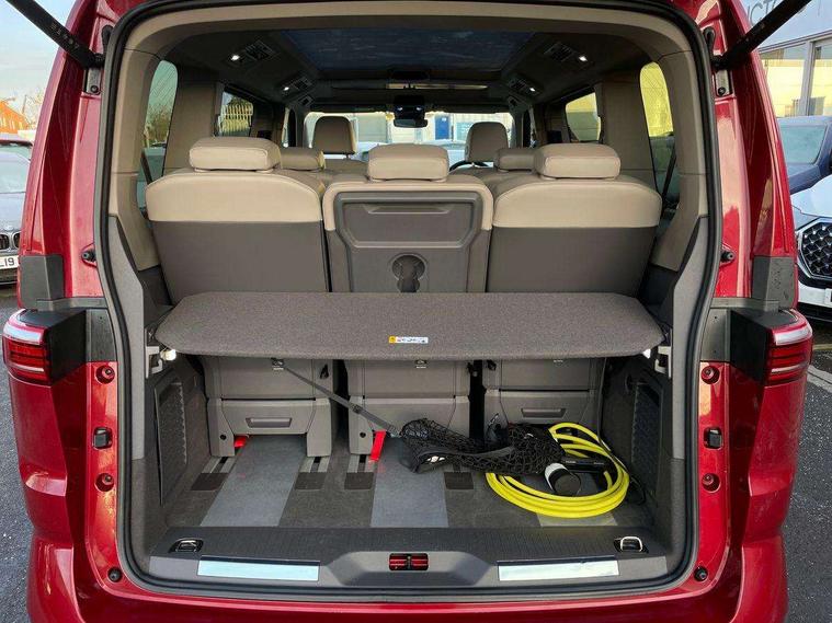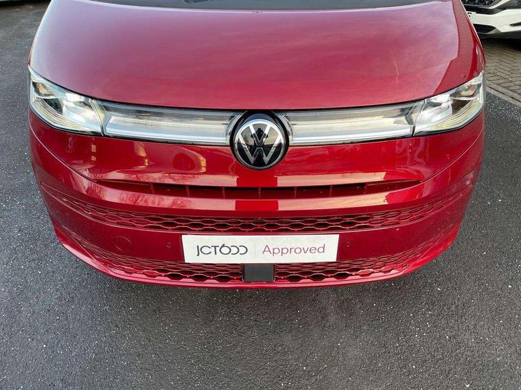 Adaptive cruise control with C2X including front assist and city emergency braking system, App-Connect incl. App-Connect Wireless for Apple CarPlay and Android Auto, Digital Cockpit Pro with 10.25" Display, Driver alert system, Dynamic road sign display, eCall emergency system, Electric tailgate with virtual pedal, Electrically-operated tailgate opening and closing function (Easy open), operated via foot movement under rear tailgate, Emergency assist, Lane change system with side assist including blind spot monitor, rear traffic alert and exit warning system, Lane keeping system Lane Assist, Mobile phone interface, PAS, Rear view camera, Semi-automated driving assistance, Socket AC Type 2, Travel assist, Voice control system including Alexa web app, We connect preparation, 1 x 6 metre charging cables - 16amp AC cable for wallbox chargepoints (mode 3), Electronic differential lock, 2 USB-C ports in front and 4 USB-C ports in passenger compartment, Digital radio reception (DAB+), Additional interior noise reduction measures, Advanced high beam control dynamic light assist for LED matrix headlamps, Automatic headlight control with welcome home lights, Body coloured exterior door handles, Break away auto dimming rear view interior mirror, Dynamic headlight range control with dynamic cornering light, Electric sliding rear side door on the left/right with easy open feature, Electrically adjustable, heated and folding door mirrors, Front fog lights, Glossy black painted radiator grille with 2 illuminated chrome trims, Heated rear window with window wiper and washer system, Heated windscreen, High gloss black exterior mirror housing, IQ.Light LED matrix headlamps with LED separate daytime running light, Laminated safety glass windshield, heat and sound insulating, LED 3rd brake lamp, LED rear combination lamps, Rear wiper, Stainless steel tailgate trim, Surround lighting in door area and tailgate with logo projection in door area, Windshield wiper intermittent control with rain sensor, 1 x 12V sockets on the dash panel, 12V socket in passenger compartment, 3 seat bench in 3rd row, 30 colours ambient interior lighting and tailgate surround lighting, 7 single seats removable/movable, Carpet mats in cab, Climatronic 3 zone air conditioning with 2nd evaporator, auxiliary heater, air conditioned headliner and additional passenger control, Front and rear head restraints, Grab handles on A pillar for access, on driver and front passenger side, Heated steering wheel, Height adjustable seats, Height and longitudinal adjustment steering wheel with gear shift paddles, Illumination lockable glovebox compartment, ISOFIX (including i-size) and top tether in all seats in 2nd and 3rd rows, LED luggage compartment lighting X 2, Load compartment partition to 20kg with bag hooks and luggage net, Luggage compartment lid power latching with unlatching from inside, Multifunction leather steering wheel with tiptronic, Reinforced carpet floor covering in passenger compartment, Removable armrests for front seats with power adjustable lumbar support and folding table for 2nd row passenger seats, Removable armrests in 2nd row passenger seats, Single front passenger seat, Stainless steel pedals, Storage compartment under the 2nd and 3rd row seat and two waste bins, Sun visors with illuminated vanity mirrors and airbag warning label on front passenger sun visors, 3x3 point rear seat belts, ABS, Automatic post collision braking system, Autonomous emergency braking front assist with pedestrian and cyclist monitoring, Driver and front passenger airbag with front passenger airbag deactivation, Electric childproof lock, Electronic stability control (ESC) and Electromechanical brake booster, ESP, First aid kit with warning triangle and safety vest, Front disc brakes, Hill hold assist, Seat belt warning for the drivers and all passengers seats if unfastened, Side and curtain airbags for driver and front passenger, curtain airbags for outer seats in rear, centre airbag in front, Single tone horn, Traction control, Tyre pressure monitoring system, Anti theft alarm system with interior monitoring in cab, backup horn and towing protection, Central locking system keyless entry with touch two stage unlocking, Start/stop button on centre console, Dark woodgrain optic decorative inserts,