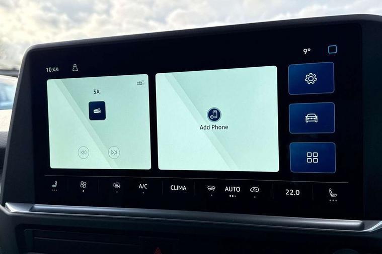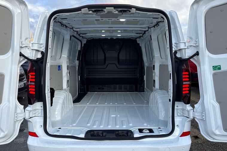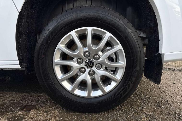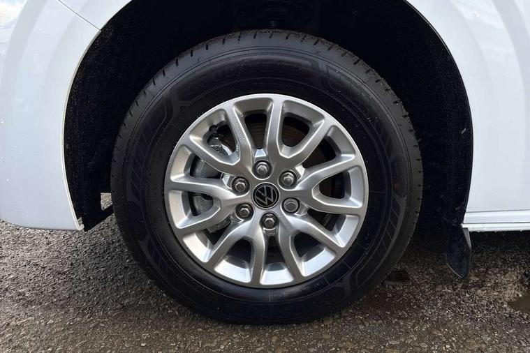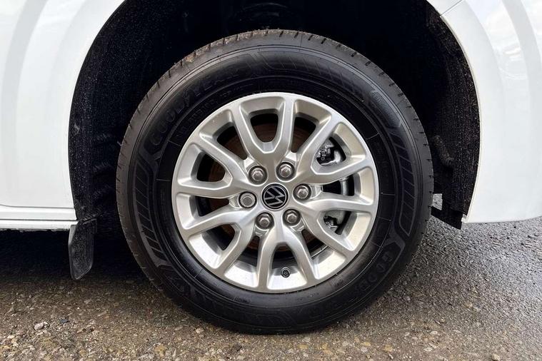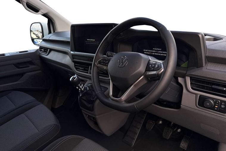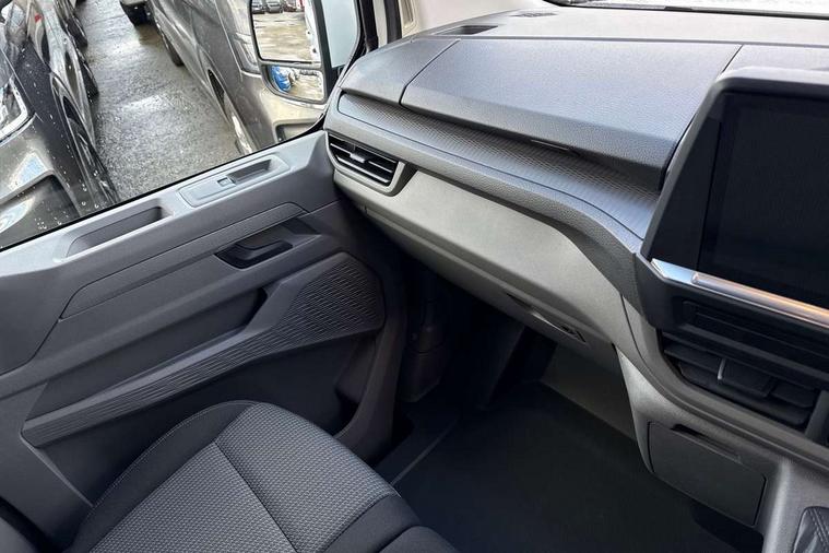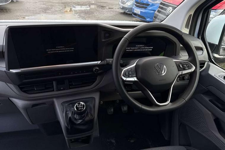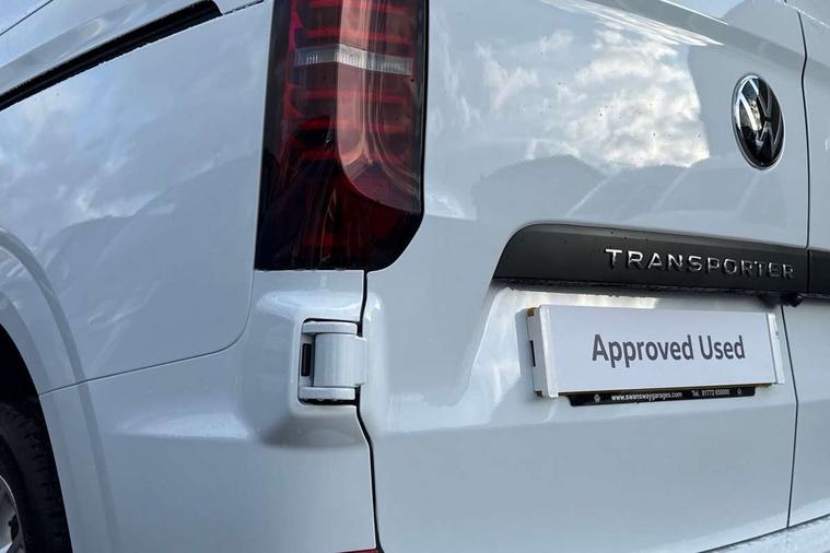 12" digital drivers display, 13" touchscreen infotainment display with wireless app connect and DAB radio, 5G Modem, Adaptive cruise control, Apple CarPlay and Android Auto, Dynamic road sign display, eCall emergency system, Electromechanical speed sensitive power steering, height and longitudinally adjustable steering column, Lane and blind spot assist with exit warning system, Preparation of VW connect and connect plus, Wireless mobile phone charging, Wrong way driver warning, Body colour bumpers, Body coloured door handles, Body coloured door mirrors, Body coloured radiator grille, Electrically heated, adjustable and folding door mirrors, Heat reflecting side window glass, Mud flaps front and rear, Rear Transporter nameplate in black grained decorative trim, Vehicle opening configuration 1x 1st row of seats, 2x all doors, 12V outlet in centre console and 12V outlet on rear right D-pillar, 2x 15-W USB data/charging ports in dashboard and 1x USB-C, 1x USB-A center bottom, 2x LED lights in load compartment, 3x additional super bright LED lights in load compartment, 4 way height and tilt adjustable head restraints, 5 additional USB-C charging ports, Black plastic scuff plate for sliding door in cargo without illumination, Cabin interior lighting, Glasses compartment in driver side roof, Grab handle on A-pillar passenger side, Illuminated lockable glovebox, Lashing rings for reinforced floor covering, Leatherette gear lever, Narrow centre console with cup holder and compartment for mobile phone, Overhead storage compartment, Rubber floor covering in cab, Striped fabric upholstery, Without passenger seats in load compartment, Driver and front passenger airbag with front passenger airbag deactivation, Dual tone horn, Front and curtain airbags for driver and front passenger, Seat belt pretensioner for driver seat, Anti theft alarm system with interior monitoring in cab, backup horn and towing protection, Electronic immobiliser, Lockable wheel bolts, Preparation for alcohol ignition interlock, 5+ Promise, Alternator - 230A, Electromechanical brake booster, Electronic stability control, ABS, ASR with deactivation button, hill start assist and brake assist system,