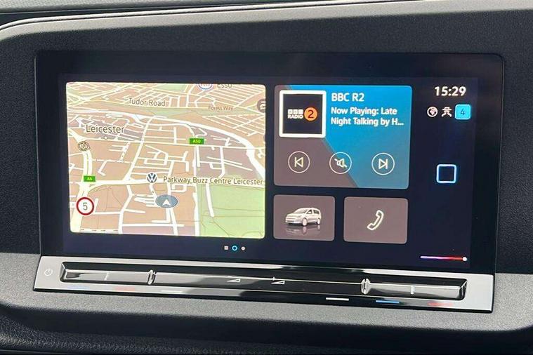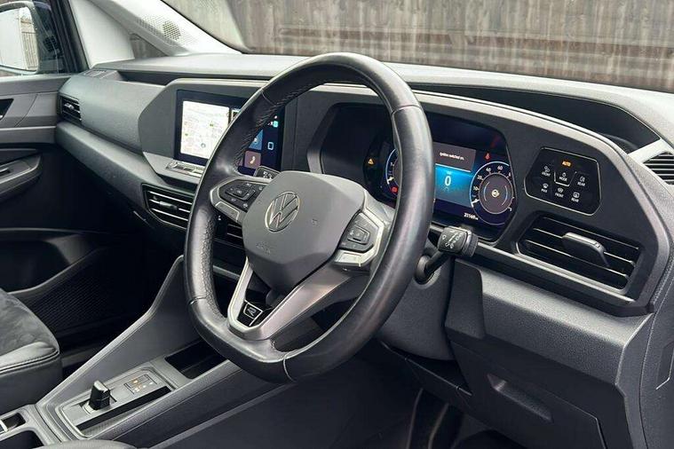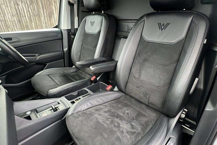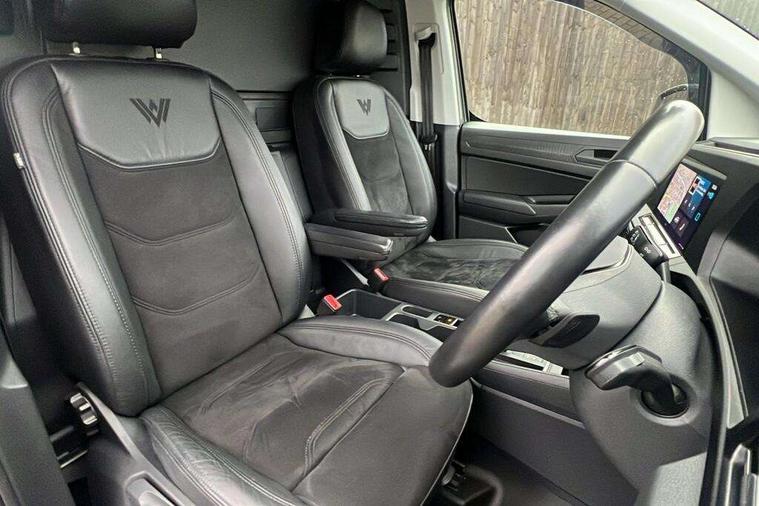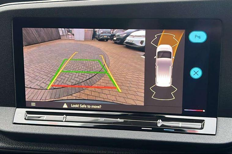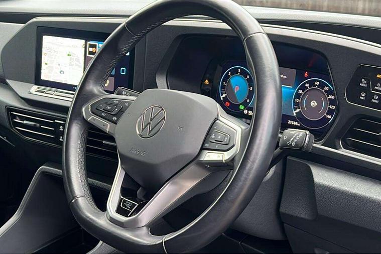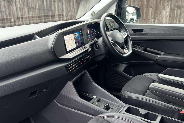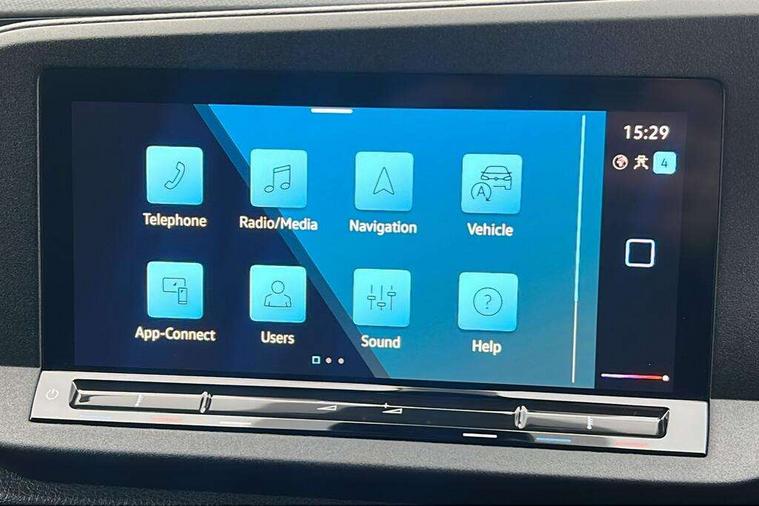 Driver alert system includes drowsiness detection, Emergency call control unit with eCall, Multi-function Display, Seatbelt warning indicator, Service indicator, Start-stop system with regenerative braking, DAB Radio, We Connect Plus Preparation, Automatic hazard light activation under emergency braking, Black painted exterior mirror housings, body-colored door handles and Silver sliding door rail, Body coloured bumpers, Electric front windows, Heated windscreen, LED rear combination lights, LED rear tail lights, Roof rail preparation, Windscreen wiper with variable intermittent delay and wash-wipe system, Electronically controlled heating system, ergoComfort seats for driver, Interior light in headlining, Lockable glove compartment door with light, Manual height adjustment for front seats and seat cushion inclination and depth adjustment on drivers seat, Multi function leather steering wheel, Power-adjustable lumbar support for drivers seat, Reach and rake adjustable steering column, Six lashing points for securing loads, Steering wheel paddle shift, Storage compartments under driver and front passenger seats, Sun visors with mirror, airbag label on front passenger sun visor, 3-point seat belts in front, with pretensioner and height adjustment, Driver and front passenger airbag with front passenger airbag deactivation, Anti-theft alarm system, interior monitoring, backup horn, and towing protection, Electronic engine immobiliser, Remote central locking with deadlocks, interior locking, Anti locking braking system (ABS), Automatic post collision braking system, Electric parking brake with auto hold function, Electronic brake force distribution (EBD), Electronic differential lock (EDL), Electronic stabilisation programme (ESP), Emergency brake assist, Engine drag torque control (MSR), Hill hold assist, Traction control system (TCS), Decorative beige birch vein inserts, 17" Barahona Silver alloy wheels, Wheel bolts with anti-theft protection (unlockable),