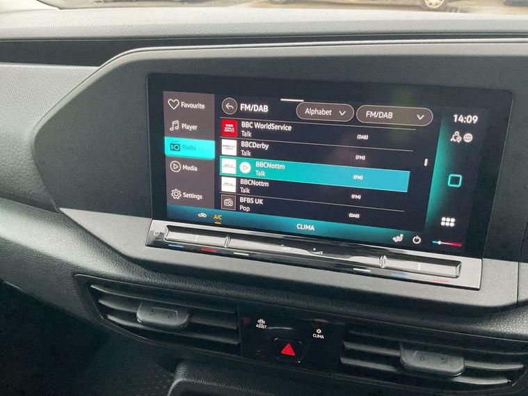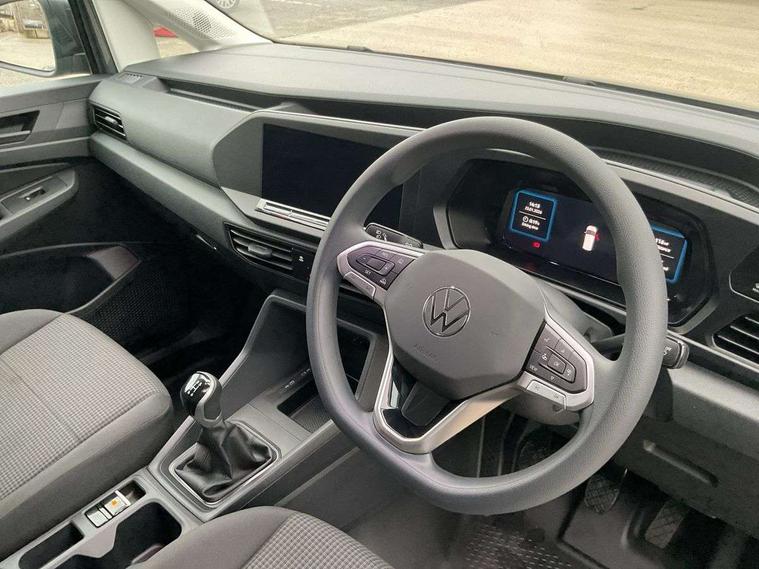 Bluetooth - Mobile phone interface, Car2X technology, Driver alert system, eCall emergency system, Intelligent Speed Assist, Lane assist, Seatbelt warning indicator, Service indicator, Start-stop system with regenerative braking, 2 USB interfaces type C in dashboard, DAB Radio, We Connect Basic Preparation, Automatic hazard light activation under emergency braking, Black front and rear bumpers, Electric front windows, Heat insulating windscreen, Roof rail preparation, Windscreen wiper with variable intermittent delay and wash-wipe system, Dimming breakaway interior rear view mirror, Electronically controlled heating system, Interior light in headliner incorporting LED technology, Lockable glove compartment door with light, Manual heating and ventilation system, Manual height adjustment for front seats, Reach and rake adjustable steering column, Six lashing points for securing loads, 3-point seat belts in front, with pretensioner and height adjustment, Driver and front passenger airbag with front passenger airbag deactivation, Tyre pressure monitoring system, Anti-theft alarm system, interior monitoring, backup horn, and towing protection, Electronic engine immobiliser, Remote central locking with deadlocks, interior locking, Anti locking braking system (ABS), Automatic post collision braking system, Autonomous Emergency Braking Front Assist with Pedestrian Monitoring, Brake assist, Diesel particulate filter, Electric parking brake with auto hold function, Electronic brake force distribution (EBD), Electronic differential lock (EDL), Electronic stabilisation programme (ESP), Engine drag torque control (MSR), Hill hold assist, Traction control system (TCS), Decorative beige birch vein inserts, Full size wheel trims,