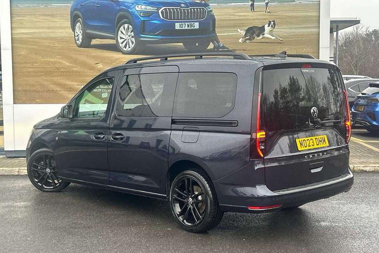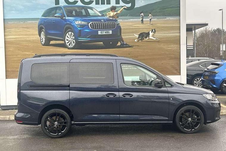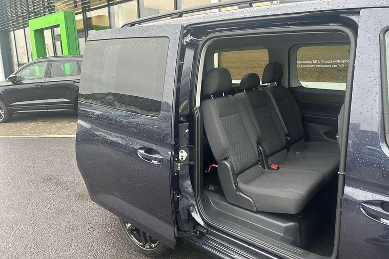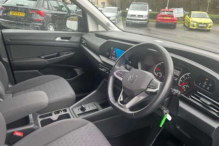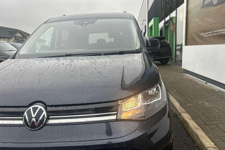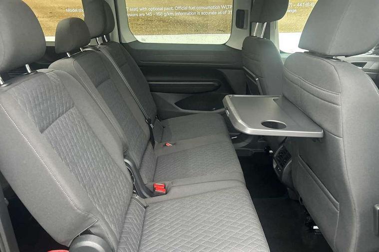 Driver alert system, eCall emergency call system, Gesture control, Lane keeping system, Multi function display, On board computer, Service interval indicator, Start/stop system with regenerative braking, Tailgate with window, We connect plus preparation, Diesel particulate filter, Electronic differential lock, 2 Type C USB, DAB Digital radio, Anti dazzle rear view mirror, Automatic hazard lights activation under emergency braking, Automatic headlight levelling system, Black painted exterior mirror housings, Body colour bumpers, Body colour door handles, Electric front windows, Electrically adjustable and folding door mirrors, Fixed side window in load/passenger compartment, Heat insulating windscreen, Heated rear window, LED rear combination lights, Rear window wiper and washer system with intermittent control, Silver sliding door rail, Third high level brake light, Twin near side and off side sliding doors, Windscreen wiper with variable intermittent delay and wash wipe system, 12V socket in passenger compartment, 5 standard interior lights in passenger compartment, Backrest release for front passenger seat, Carpet floor covering in cab, Carpet floor covering in passenger compartment, Centre console high with armrests adjustable, Centre console with 2 cupholders, Door and side trim panel in fabric, Electrically controlled heating system, Folding table on front seat backrests, Front head restraints, Front passenger seat foldable, Height adjustable head restraints, Isofix on 2nd row outer seats, Leather gearshift knob/handle, Leather multifunction steering wheel, LED interior light in headlining, Lockable glove compartment with light, Manual adjustable lumbar support in front seats, Manual front seats with height adjustment, Reach and rake adjustable steering column, Rear head restraints, Removable waste bin with cover for cab, Retractable luggage compartment cover, Seat occupied recognition for front seats, Sliding trunk cover, Split folding/removable rear seat, Storage drawers under front seats, Sun visors with mirror and airbag label on front passenger, Trialog cloth upholstery, 7 seat pack - Caddy, 3-point seat belts in front with pretensioner and height adjustment, 3x3 point rear seatbelts, Anti-lock braking system (ABS), Automatic post collision braking system, Autonomous emergency braking front assist with pedestrian and cyclist monitoring, Brake assist, Child locks on rear doors, Curtain airbag for outer seats in rear, Direct tyre pressure monitoring system, Driver and front passenger airbag with front passenger airbag deactivation, Electric parking brake with auto hold function, Electronic brake force distribution, Engine drag torque control, ESP, First aid kit with warning triangle and safety vest, Front centre airbag, Power operated child safety locks, Seat belt reminder, Side and curtain airbag for driver and front passenger, Traction control system (TCS), Anti theft alarm system with interior monitoring, backup horn and towing protection, Electronic engine immobiliser, Wheel bolts unlockable anti-theft protection, Decorative inserts in beige birch vein,