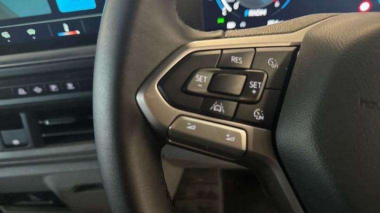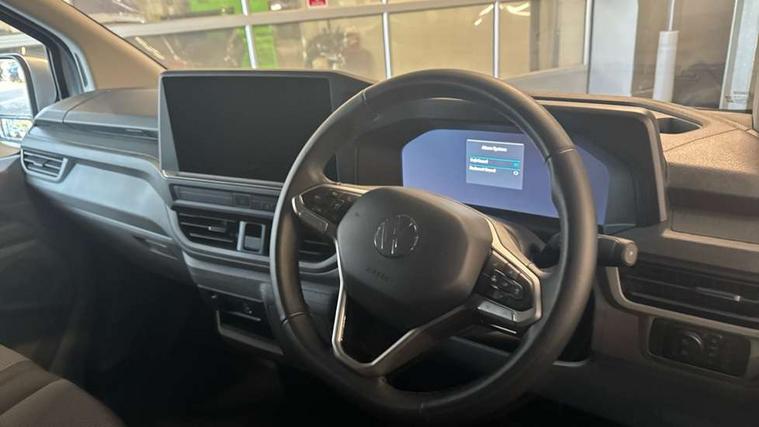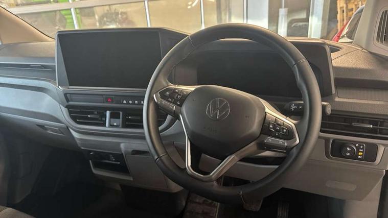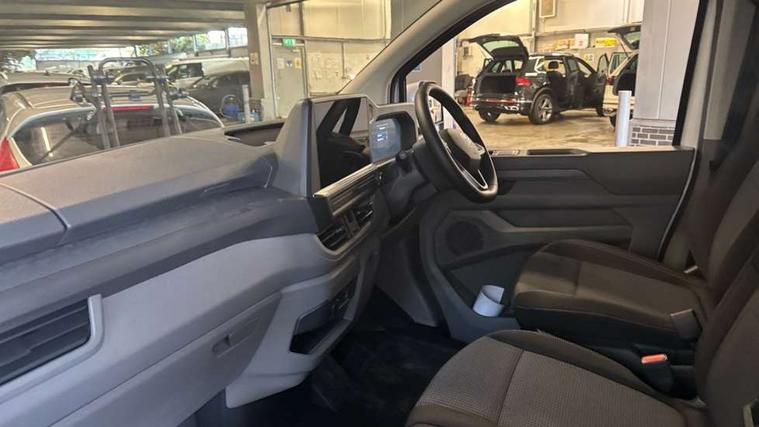 12" digital drivers display, 13" touchscreen infotainment display with wireless app connect and DAB radio, 5G Modem, Apple CarPlay and Android Auto, Cruise control, Dynamic road sign display, eCall emergency system, Electromechanical speed sensitive power steering, height and longitudinally adjustable steering column, Lane assist, Preparation of VW connect and connect plus, Wrong way driver warning, 4 speakers - 2x dashboard, 2x cab doors, Body coloured door handles, Heat reflecting side window glass, Mud flaps front and rear, Rear Transporter nameplate in black grained decorative trim, Vehicle opening configuration 1x 1st row of seats, 2x all doors, 2x 15-W USB data/charging ports in dashboard and 1x USB-C, 1x USB-A center bottom, 2x LED lights in load compartment, 3 spoke leather wrapped multi function steering wheel, 4 way height and tilt adjustable head restraints, Black plastic scuff plate for sliding door in cargo without illumination, Cabin interior lighting, Gear selector lever on steering wheel, Lashing rings for reinforced floor covering, Narrow centre console with cup holder and compartment for mobile phone, Overhead storage compartment, Roof grab handle on front passenger side, Rubber floor covering in cab, Striped fabric upholstery, Without passenger seats in load compartment, Driver and front passenger airbag with front passenger airbag deactivation, Dual tone horn, Front and curtain airbags for driver and front passenger, Seat belt pretensioner for driver seat, Anti theft alarm system with interior monitoring in cab, backup horn and towing protection, Electronic immobiliser, Preparation for alcohol ignition interlock, 5+ Promise, Alternator - 230A, Electronic stability control, ABS, ASR with deactivation button, hill start assist and brake assist system,