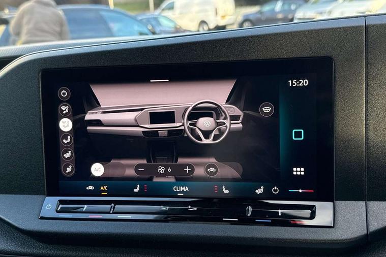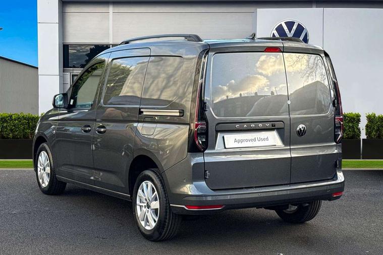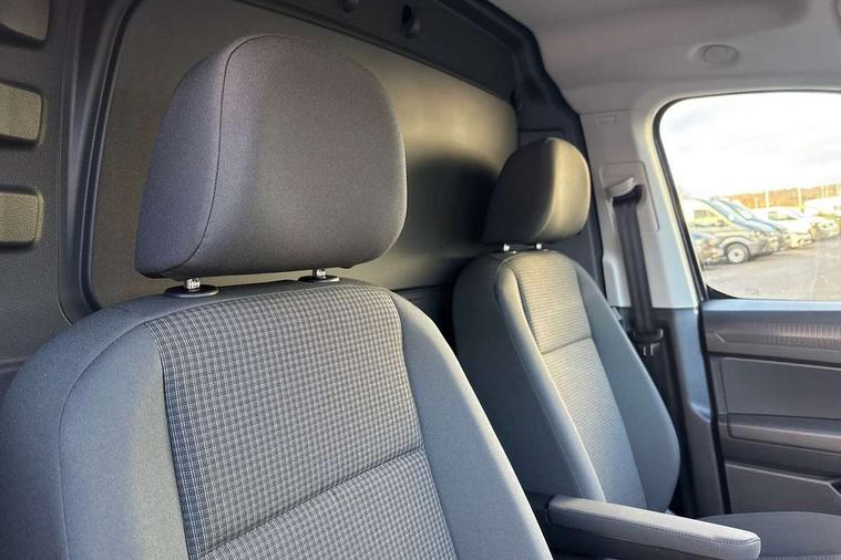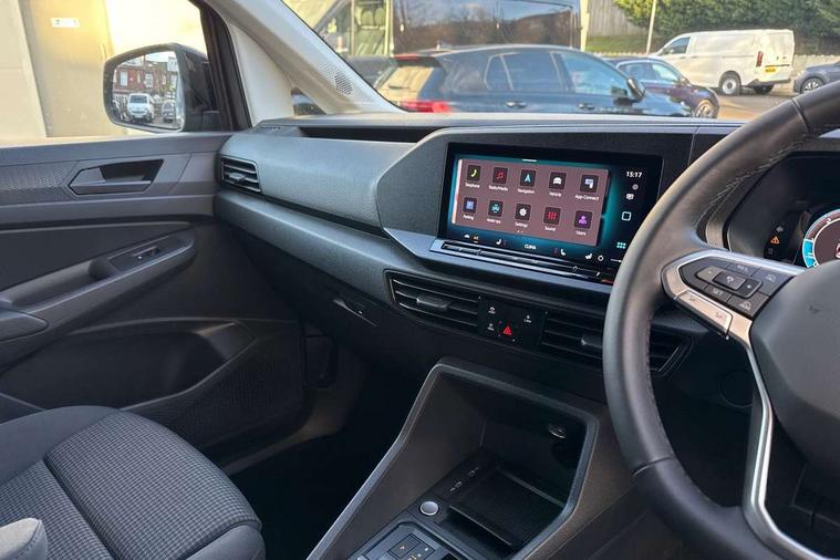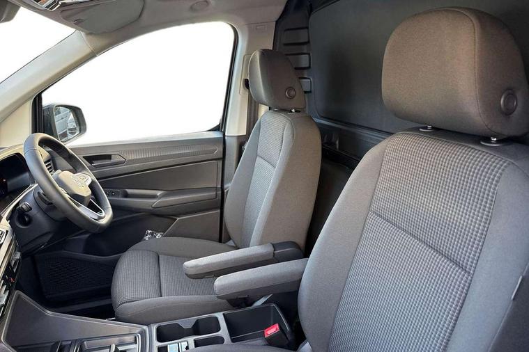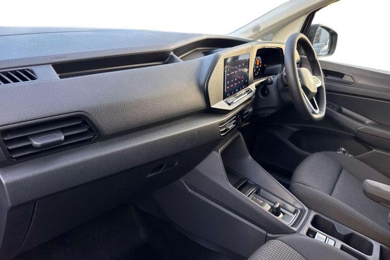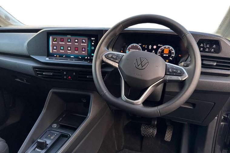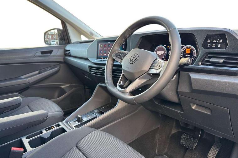 Bluetooth - Mobile phone interface, Car2X technology, Driver alert system, eCall emergency system, Intelligent Speed Assist, Lane assist, Seatbelt warning indicator, Service indicator, Start-stop system with regenerative braking, 2 USB interfaces type C in dashboard, App-Connect - Wireless for Apple CarPlay, DAB Radio, We Connect Plus Preparation, Automatic hazard light activation under emergency braking, Black painted exterior mirror housings, body-colored door handles and Silver sliding door rail, Body coloured bumpers, Electric front windows, LED rear combination lights, LED rear tail lights, Roof rail preparation, Windscreen wiper with variable intermittent delay and wash-wipe system, Dimming breakaway interior rear view mirror, Electronically controlled heating system, ergoComfort seats for driver, Interior light in headliner incorporting LED technology, Lockable glove compartment door with light, Manual heating and ventilation system, Manual height adjustment for front seats and seat cushion inclination and depth adjustment on drivers seat, Multi function leather steering wheel, Power-adjustable lumbar support for drivers seat, Reach and rake adjustable steering column, Six lashing points for securing loads, Steering wheel paddle shift, Storage compartments under driver and front passenger seats, Sun visors with mirror, airbag label on front passenger sun visor, Winter pack plus - Caddy, 3-point seat belts in front, with pretensioner and height adjustment, Driver and front passenger airbag with front passenger airbag deactivation, Tyre pressure monitoring system, Anti-theft alarm system, interior monitoring, backup horn, and towing protection, Electronic engine immobiliser, Remote central locking with deadlocks, interior locking, Anti locking braking system (ABS), Automatic post collision braking system, Brake assist, Diesel particulate filter, Electric parking brake with auto hold function, Electronic brake force distribution (EBD), Electronic differential lock (EDL), Electronic stabilisation programme (ESP), Engine drag torque control (MSR), Hill hold assist, Traction control system (TCS), Decorative beige birch vein inserts, Wheel bolts with anti-theft protection (unlockable),