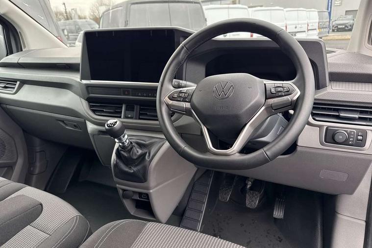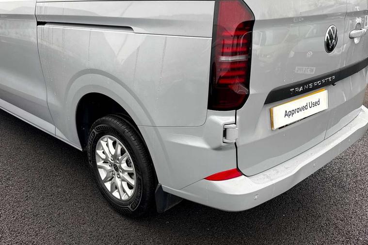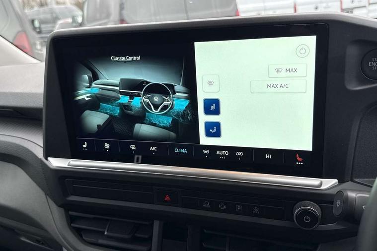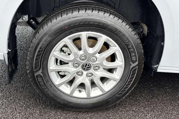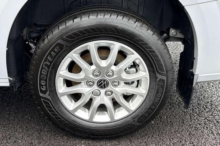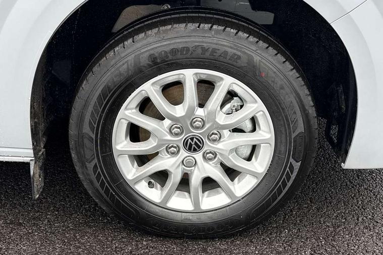 12" digital drivers display, 13" touchscreen infotainment display with wireless app connect and DAB radio, 5G Modem, Adaptive cruise control, Apple CarPlay and Android Auto, Dynamic road sign display, eCall emergency system, Electromechanical speed sensitive power steering, height and longitudinally adjustable steering column, Lane and blind spot assist with exit warning system, Preparation of VW connect and connect plus, Wireless mobile phone charging, Wrong way driver warning, Body colour bumpers, Body coloured door handles, Body coloured door mirrors, Body coloured radiator grille, Electrically heated, adjustable and folding door mirrors, Heat reflecting side window glass, Mud flaps front and rear, Rear Transporter nameplate in black grained decorative trim, Vehicle opening configuration 1x 1st row of seats, 2x all doors, 12V outlet in centre console and 12V outlet on rear right D-pillar, 2x 15-W USB data/charging ports in dashboard and 1x USB-C, 1x USB-A center bottom, 2x LED lights in load compartment, 3x additional super bright LED lights in load compartment, 4 way height and tilt adjustable head restraints, 5 additional USB-C charging ports, Black plastic scuff plate for sliding door in cargo without illumination, Cabin interior lighting, Glasses compartment in driver side roof, Grab handle on A-pillar passenger side, Illuminated lockable glovebox, Lashing rings for reinforced floor covering, Leatherette gear lever, Narrow centre console with cup holder and compartment for mobile phone, Overhead storage compartment, Rubber floor covering in cab, Striped fabric upholstery, Without passenger seats in load compartment, Driver and front passenger airbag with front passenger airbag deactivation, Dual tone horn, Front and curtain airbags for driver and front passenger, Seat belt pretensioner for driver seat, Anti theft alarm system with interior monitoring in cab, backup horn and towing protection, Electronic immobiliser, Lockable wheel bolts, Preparation for alcohol ignition interlock, 5+ Promise, Alternator - 230A, Electromechanical brake booster, Electronic stability control, ABS, ASR with deactivation button, hill start assist and brake assist system,
