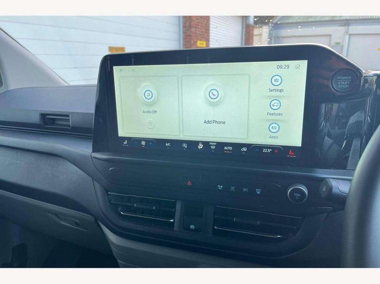 13" Touchscreen, 5G embedded modem, AECS NO SMS/Roll Detect 2G, PAS, Tyre pressure monitor, SYNC 4 - Android Auto/Apple Car Play, advance speech recognition, over the air update capability, Automatic headlights, Automatic windscreen wipers, Body coloured door mirrors, Body coloured front bumper, Body coloured rear bumpers, Daytime running lights, Electric front windows with one touch facility for driver and front passenger, Front mud flaps, Front splash guards, Low roof line, Quickclear front window defroster, Rear cargo hinged door, Rear splash guards, Trailer sway control, 8 Load compartment tie down loops, Courtesy light, Interior grab handle with driver's sunglasses holder, LED lights, Locking glove box lid, Sensico gearshift knob, 2 remote keys, Alcohol Interlock wiring preparation pack, Keyless entry and start, Locking wheel lug nut, Thatcham category 1 alarm, 20L AdBlue tank, ABS, Diesel particulate filter, ESP, Hill launch assist, Traction control, Full wheelcovers,