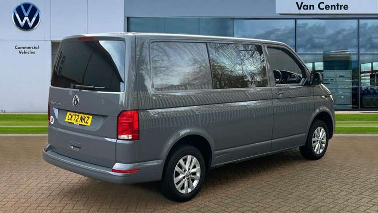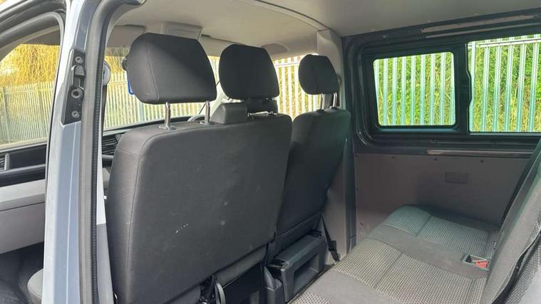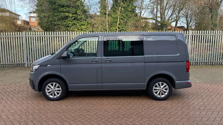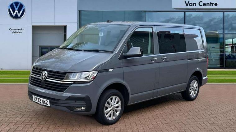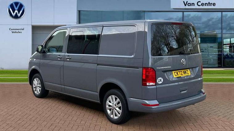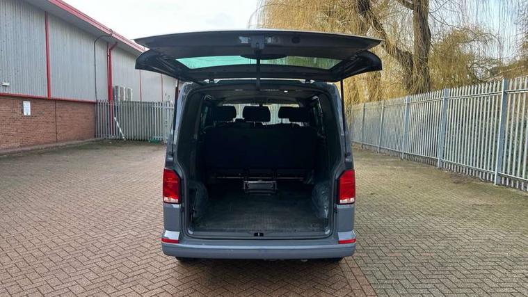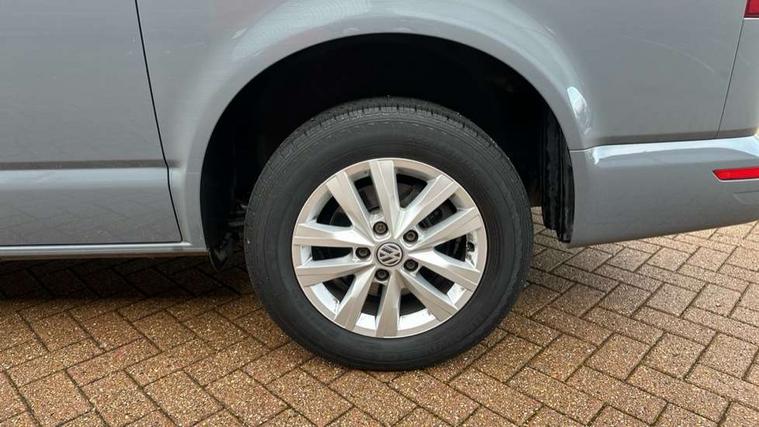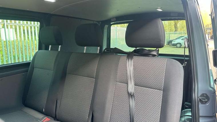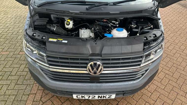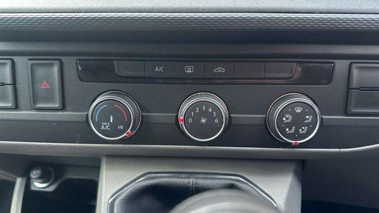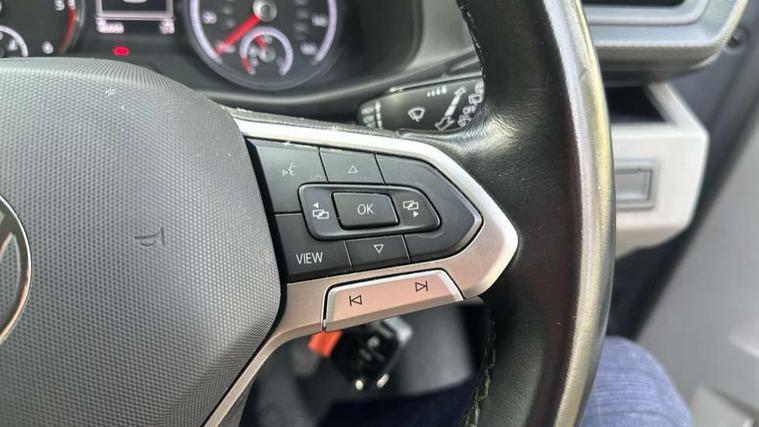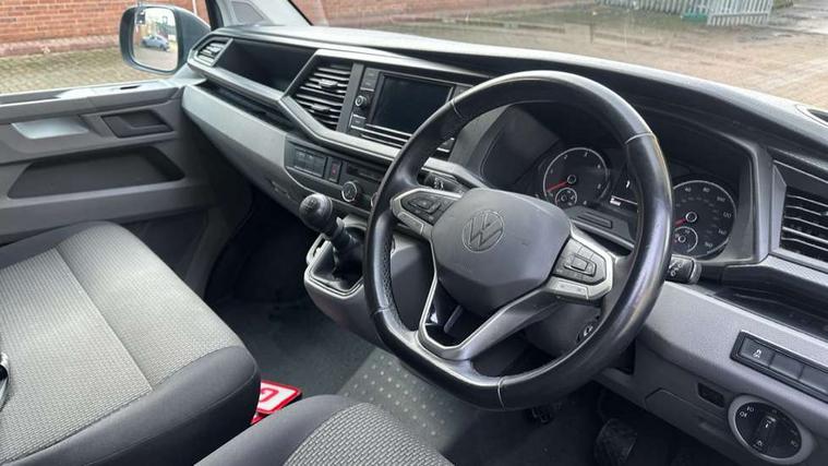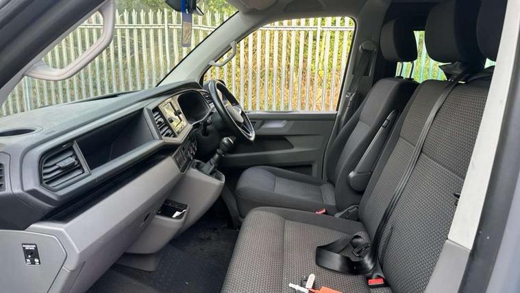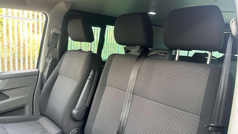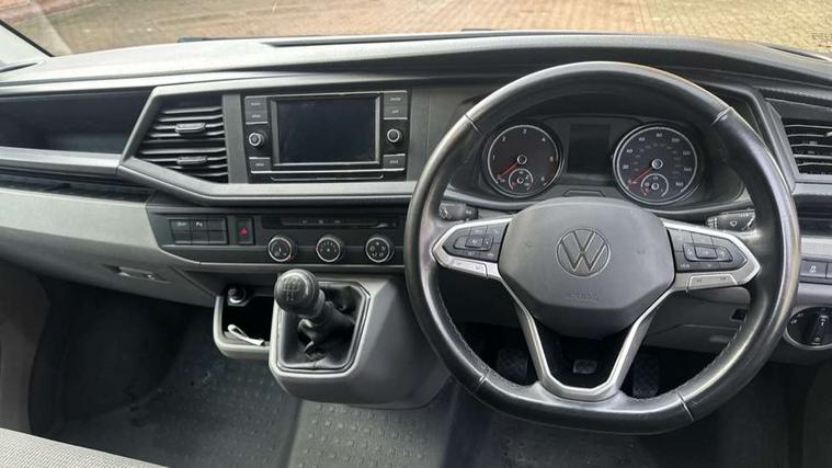 Adaptive cruise control, Child seat anchors ISOFIX and top tether in 2nd row of seats, Cross wind assist, Dimmable illuminated instruments, Driver alert with black and white multi function display plus, eCall emergency system, Forward collision warning front assist with autonomous emergency braking, Headlight range control, Mobile phone interface, Without voice control, 2 USB interfaces type C in dashboard, 4 speakers with 2 tweeters and 2 woofers, Composition colour radio with 6.5" touchscreen, Digital radio reception (DAB+), Volkswagen app connect, Automatic headlight control, leaving home and manual coming home feature, Front fog lamps with cornering light, Green heat insulating glass, Heated front windscreen, Illuminated steps in passenger/load compartment, Left convex exterior mirror, Power folding adjustable door mirrors with separately heated, Privacy glass from the B-pillar and heat-insulating glass in front, Radiator grille with 2 chrome trims, Rear window with heated insulating glass, heated rear window wiper and washer system, Right convex exterior mirror, Tailgate closing with unlatching from the inside, Transporter nameplate on the rear fender, Windshield wiper intermittent control with rain sensor for windshield wipers, Without adhesive film, 3 spoke leather wrapped multi function steering wheel, Additional sound deadening measures in cab and passenger compartment, Auto dimming breakaway interior rear view mirror, Comfort headliner in cab, hardboard roof trim in passenger and load compartment, Dust/pollen filter, Folding grab handles and storage compartments on cab seats, reading light, Front seats on the right in 1st row of seat, Glove compartment with illumination, Heavy duty tool kit and jack, Interior plastic loading edge protection, Lashing rings for load restraint system, LED Interior lighting in load and passenger compartment, Medium height for vehicles with window aperture hardboard side trim panels in passenger/load compartment, Refrigerant R134a, Standard lower part dashboard in palladium, Without partition, Without seats in 3rd row of seats, Comfort pack - Transporter, Exterior pack without fog light- Transporter, Light and vision pack - Transporter, Non smoker pack - Transporter, 3 point height adjustable seat belts on outer seats cab with electric pretensioners, Driver and front passenger airbag with front passenger airbag deactivation, Power operated child safety lock, Warning buzzer and light for driver seat belt not fastened, Anti theft alarm system with interior monitoring in cab, backup horn and towing protection, Lockable wheel bolts, 16" chassis with 16" brake system, Diesel particulate filter, Electronic stability control, ABS, ASR with deactivation button, hill start assist and brake assist system, Speed limiter, Start/stop system with regenerative breaking, 16" Clayton alloy wheels, Wheel trims,