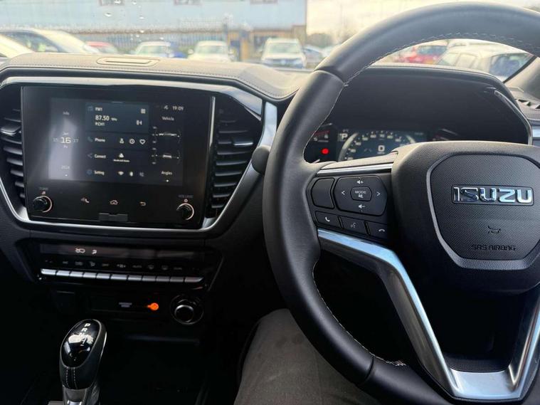 4.2" Multi function display, 4WD shift on the fly, 7" multifunction colour touchscreen, Adaptive cruise control, Blind spot monitor, Bluetooth connectivity, Door open warning light, eCall, Emergency lane keeping, Forward Collision warning, Front and rear parking sensors, Intelligent speed limiter, Lane departure warning and prevention system, Lane keep assist, Multi collision brake, On/off button for lane support system mounted on steering wheel, One motion door unlock for driver's side, Rear cross traffic alert, Reversing camera, Speed sensitive power steering, Traffic sign recognition, 6 speakers, Apple Carplay/Android Auto, Audio and cruise controls mounted on steering wheel, Digital radio (DAB), Front USB connection, Rear USB connection, Automatic headlights, Automatic windscreen wipers with rain sensor, Bi-LED headlights, Body coloured front bumper, Body coloured rear bumper with integrated step, Chrome door handles, Chrome upper and lower dark gray radiator grille, Folding heated and chrome door mirrors with side indicator repeaters, Follow me home light, Front and rear power windows with driver side auto up/down function with pinch protection and timer, Heated rear windscreen, High beam assist, Integrated fuel filler cap with AdBlue, LED Daytime running lights, LED front fog lights, LED rear lights, Manually dimmable rear view mirror, Rear fog lights, Rear radar chipping guard, Security etched glass, Silver side steps, Tailgate damper, Trailer sway control, 2 x Rear side ISOFIX child seat anchors with top tether anchors, 60/40 folding seat base, 8 way adjustable electric driver's seat, Carpet covered floor, Centre and floor console, Closed upper and open lower glove boxes, Closed upper driver dashboard storage compartment, Driver and passenger sun visors with vanity mirror, Driver's footrest, Dual zone climate control, Flat folding rear seats, Front centre armrest, Front cup holders in centre console and dash - driver and passenger sides, Front door pockets with bottle holder, Front seat back map pockets, Heated front seats, Height adjustable front headrests, Height adjustable rear headrest, Height and reach adjustable steering wheel, Leather steering wheel, Leather upholstery, Map lights, Power driver's seat lumbar support, Rear centre armrest with cup holders, Rear door pockets with bottle holder, Sunglasses holder and overhead console, Underseat storage compartment, Welcome lighting, 3x3 point rear seatbelts, AT Pedal misapplication mitigation, Autonomous emergency braking, Centre SRS airbag, Child proof rear door locks, Front, side, curtain and driver knee SRS airbags, Height adjustable front seatbelt pre-tensioners with load limiters, Passenger airbag deactivation switch, Seatbelt reminder indicator, Alarm with deadlock, Insurance approved immobiliser, Keyless entry and push button start featuring Walk Away Lock and Anti-Relay Attack systems, Locking wheel nuts, Remote central locking, Tailgate central locking, 12V power outlets, Anti lock braking system (ABS), Brake assist, EBD, Electronic Stability Control (ESC) with traction control, Hill Descent Control, Hill start assist, Rear differential lock with harness protector, Stop/start function, 18" Two-tone alloy wheels,