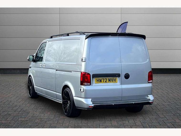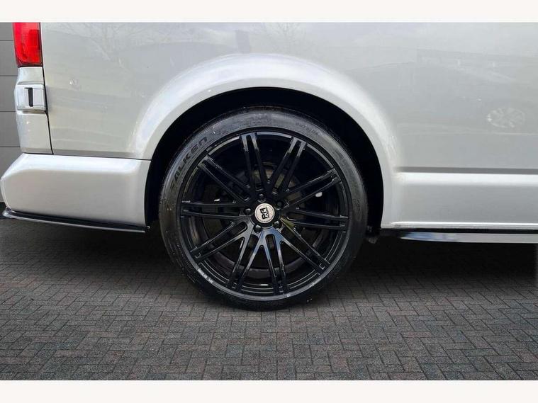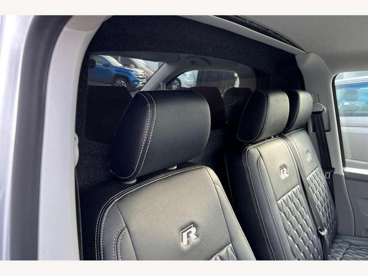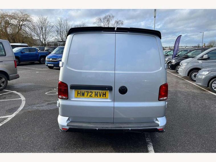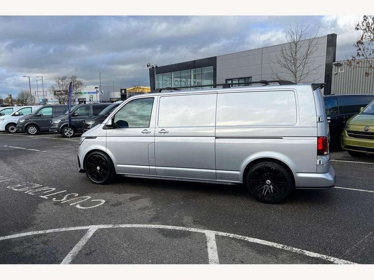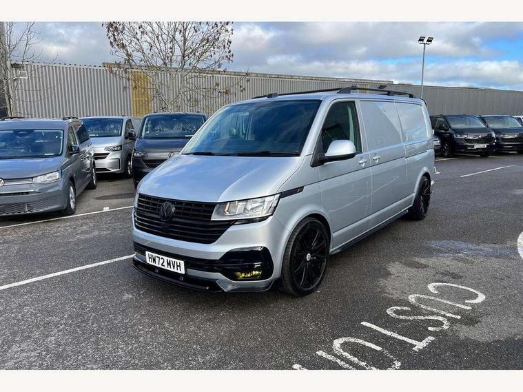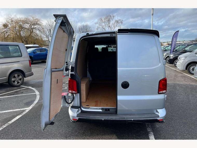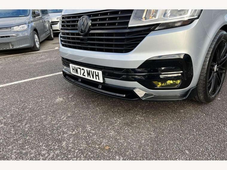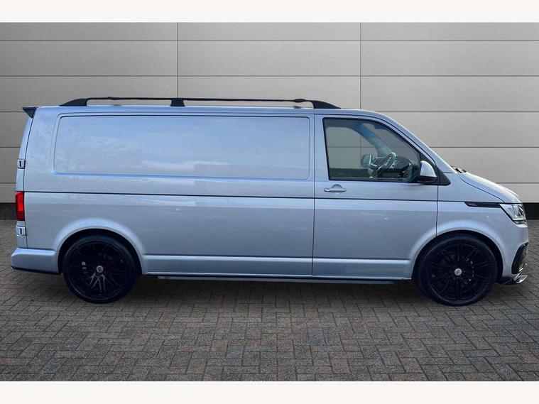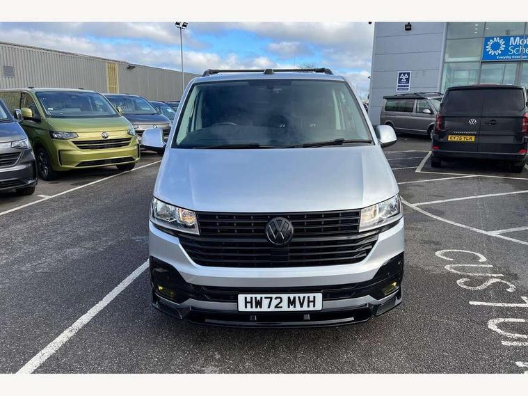 Adaptive cruise control, Cross wind assist, Dimmable illuminated instruments, Driver alert with Multi-function display plus, eCall emergency system, Forward collision warning front assist with autonomous emergency braking, Mobile phone interface, Multi function display plus with black and white display, 2 USB interfaces type C in dashboard, 4 speakers with 2 tweeters and 2 woofers, Composition colour radio with 6.5" touchscreen, Digital radio reception (DAB+), Volkswagen app connect, Automatic headlight control, leaving home and manual coming home feature, Closing rear wing door with unlatching from the inside, Front fog lamps with cornering light, Heat insulating glass (green) in cab and passenger/load compartment, Heated front windscreen, Left convex exterior mirror, Power folding adjustable door mirrors with separately heated, Radiator grille with 2 chrome trims, Rear wing doors without window apertures, Right convex exterior mirror, Transporter nameplate on the rear fender, Windshield wiper intermittent control with rain sensor for windshield wipers, 3 spoke leather wrapped multi function steering wheel, Auto dimming breakaway interior rear view mirror, Comfort headliner in cab, hardboard roof trim in passenger and load compartment, Dust/pollen filter, Front and rear left without window closed side panel in load compartment, Front seats on the right in 1st row of seat, Glove compartment with illumination, Heavy duty tool kit and jack, High partition, Interior plastic loading edge protection, LED Interior lighting in load and passenger compartment, Manual adjustable lumbar support for right single seat in 1st row seats, Refrigerant R134a, Standard lower part dashboard in palladium, Storage compartments on cab seats and reading light, Without right side window apertures in passenger and load compartment, Comfort pack - Transporter, Exterior pack without fog light- Transporter, Non smoker pack - Transporter, 3 point height adjustable seat belts on outer seats cab with electric pretensioners, Driver and front passenger airbag with front passenger airbag deactivation, Warning buzzer and light for driver and front passenger seat belt not fastened, Without child safety lock in passenger compartment, Anti theft alarm system with interior monitoring in cab, backup horn and towing protection, Lockable wheel bolts, 16" chassis with 16" brake system, Diesel particulate filter, Electronic stability control, ABS, ASR with deactivation button, hill start assist and brake assist system, Start/stop system with regenerative breaking, 16" Clayton alloy wheels,