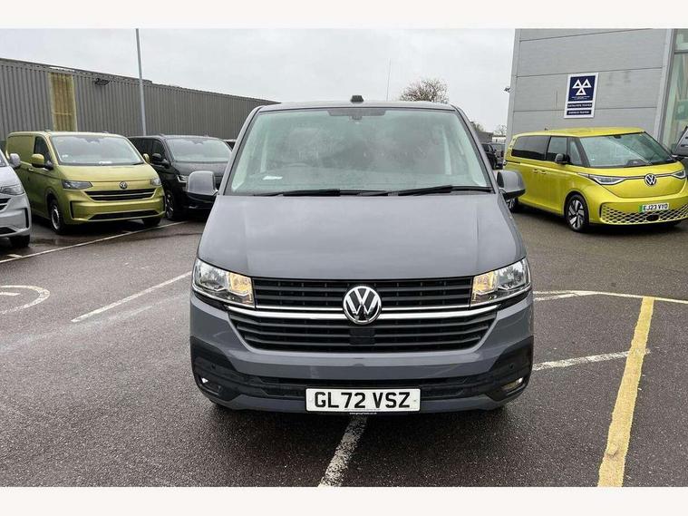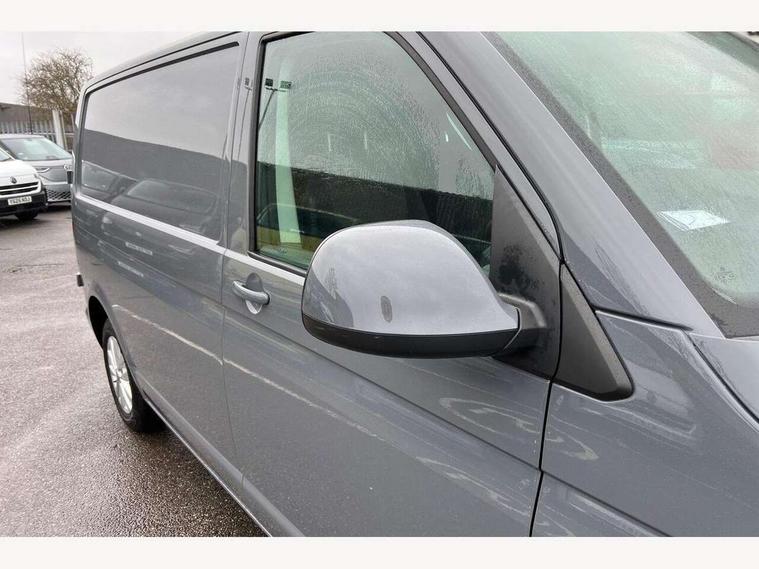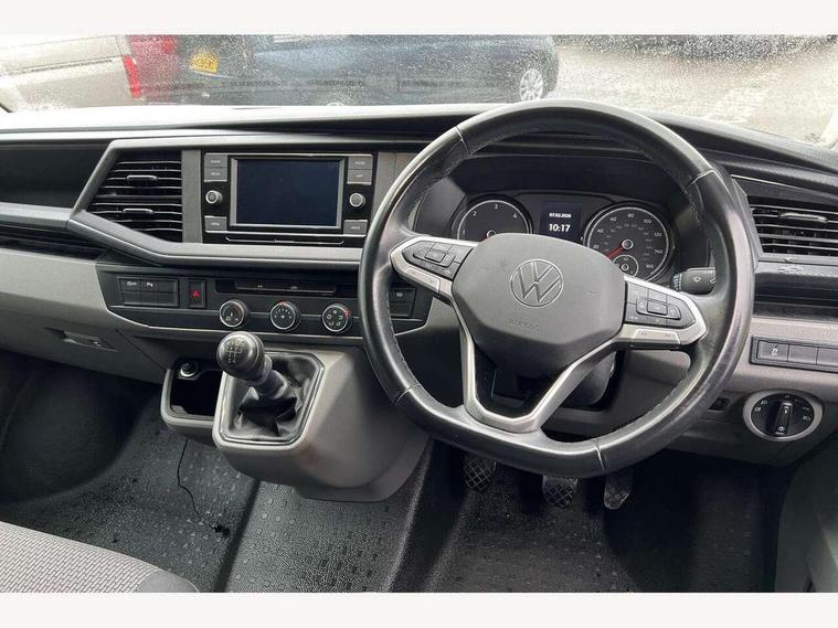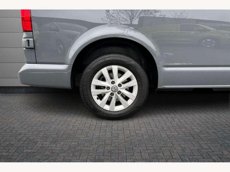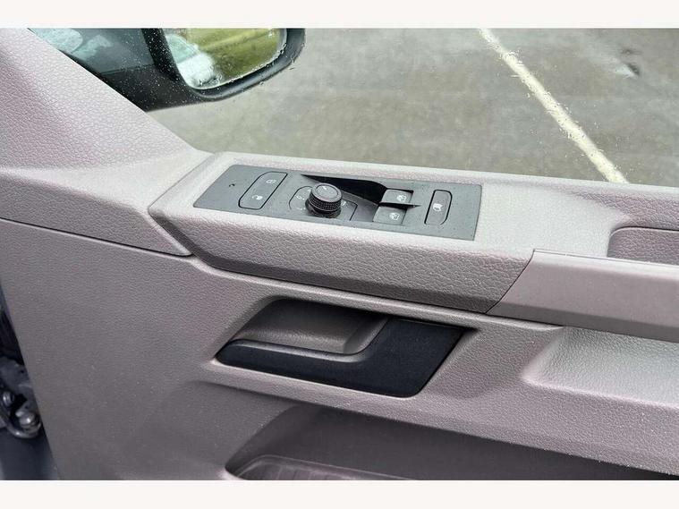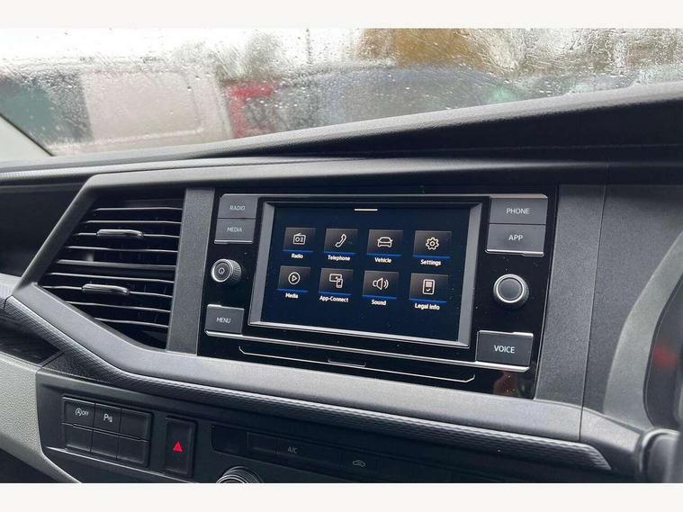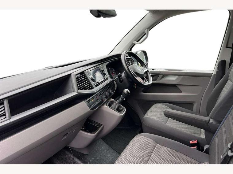 Adaptive cruise control, Cross wind assist, Dimmable illuminated instruments, Driver alert with Multi-function display plus, eCall emergency system, Forward collision warning front assist with autonomous emergency braking, Mobile phone interface, Multi function display plus with black and white display, 2 USB interfaces type C in dashboard, 4 speakers with 2 tweeters and 2 woofers, Composition colour radio with 6.5" touchscreen, Digital radio reception (DAB+), Volkswagen app connect, Automatic headlight control, leaving home and manual coming home feature, Closing rear wing door with unlatching from the inside, Front fog lamps with cornering light, Heat insulating glass (green) in cab and passenger/load compartment, Heated front windscreen, Left convex exterior mirror, Power folding adjustable door mirrors with separately heated, Radiator grille with 2 chrome trims, Rear wing doors without window apertures, Right convex exterior mirror, Transporter nameplate on the rear fender, Windshield wiper intermittent control with rain sensor for windshield wipers, 3 spoke leather wrapped multi function steering wheel, Auto dimming breakaway interior rear view mirror, Comfort headliner in cab, hardboard roof trim in passenger and load compartment, Dust/pollen filter, Front and rear left without window closed side panel in load compartment, Front seats on the right in 1st row of seat, Glove compartment with illumination, Heavy duty tool kit and jack, High partition, Interior plastic loading edge protection, LED Interior lighting in load and passenger compartment, Manual adjustable lumbar support for right single seat in 1st row seats, Refrigerant R134a, Standard lower part dashboard in palladium, Storage compartments on cab seats and reading light, Without right side window apertures in passenger and load compartment, Comfort pack - Transporter, Exterior pack without fog light- Transporter, Non smoker pack - Transporter, 3 point height adjustable seat belts on outer seats cab with electric pretensioners, Driver and front passenger airbag with front passenger airbag deactivation, Warning buzzer and light for driver and front passenger seat belt not fastened, Without child safety lock in passenger compartment, Anti theft alarm system with interior monitoring in cab, backup horn and towing protection, Lockable wheel bolts, 16" chassis with 16" brake system, Diesel particulate filter, Electronic stability control, ABS, ASR with deactivation button, hill start assist and brake assist system, Start/stop system with regenerative breaking, 16" Clayton alloy wheels,