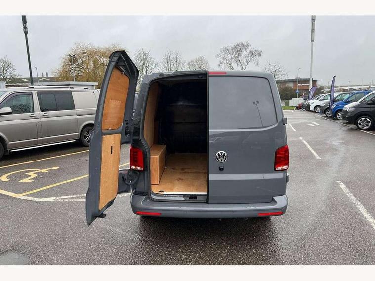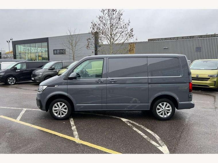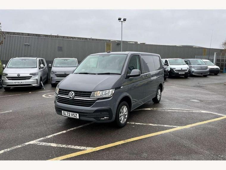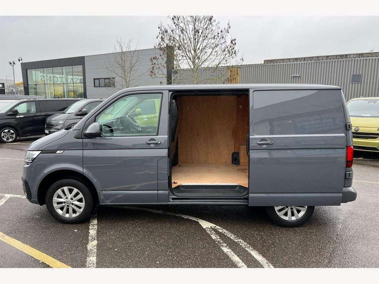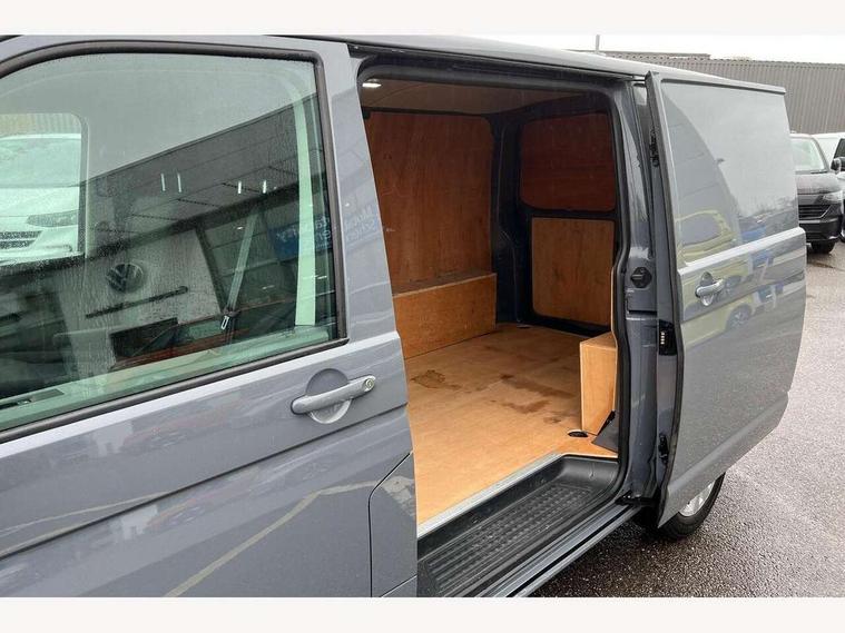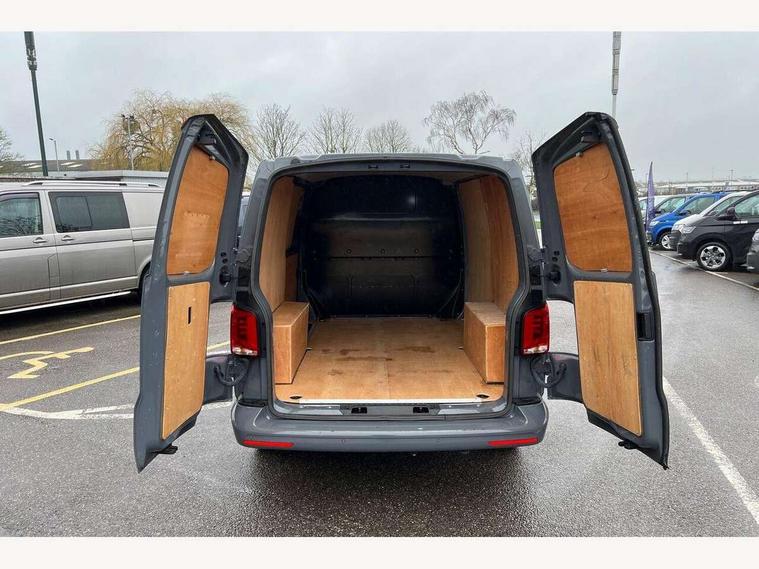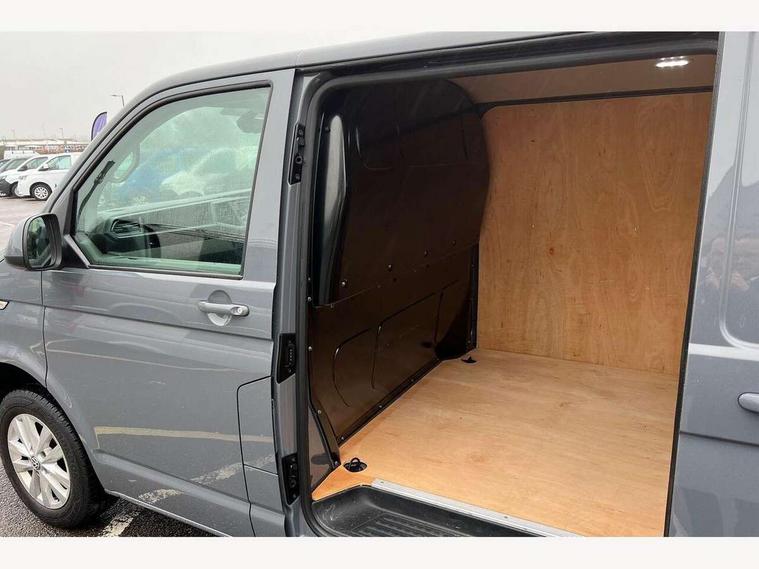 Adaptive cruise control, Cross wind assist, Dimmable illuminated instruments, Driver alert with Multi-function display plus, eCall emergency system, Forward collision warning front assist with autonomous emergency braking, Mobile phone interface, Multi function display plus with black and white display, 2 USB interfaces type C in dashboard, 4 speakers with 2 tweeters and 2 woofers, Composition colour radio with 6.5" touchscreen, Digital radio reception (DAB+), Volkswagen app connect, Automatic headlight control, leaving home and manual coming home feature, Closing rear wing door with unlatching from the inside, Front fog lamps with cornering light, Heat insulating glass (green) in cab and passenger/load compartment, Heated front windscreen, Left convex exterior mirror, Power folding adjustable door mirrors with separately heated, Radiator grille with 2 chrome trims, Rear wing doors without window apertures, Right convex exterior mirror, Transporter nameplate on the rear fender, Windshield wiper intermittent control with rain sensor for windshield wipers, 3 spoke leather wrapped multi function steering wheel, Auto dimming breakaway interior rear view mirror, Comfort headliner in cab, hardboard roof trim in passenger and load compartment, Dust/pollen filter, Front and rear left without window closed side panel in load compartment, Front seats on the right in 1st row of seat, Glove compartment with illumination, Heavy duty tool kit and jack, High partition, Interior plastic loading edge protection, LED Interior lighting in load and passenger compartment, Manual adjustable lumbar support for right single seat in 1st row seats, Refrigerant R134a, Standard lower part dashboard in palladium, Storage compartments on cab seats and reading light, Without right side window apertures in passenger and load compartment, Comfort pack - Transporter, Exterior pack without fog light- Transporter, Non smoker pack - Transporter, 3 point height adjustable seat belts on outer seats cab with electric pretensioners, Driver and front passenger airbag with front passenger airbag deactivation, Warning buzzer and light for driver and front passenger seat belt not fastened, Without child safety lock in passenger compartment, Anti theft alarm system with interior monitoring in cab, backup horn and towing protection, Lockable wheel bolts, 16" chassis with 16" brake system, Diesel particulate filter, Electronic stability control, ABS, ASR with deactivation button, hill start assist and brake assist system, Start/stop system with regenerative breaking, 16" Clayton alloy wheels,