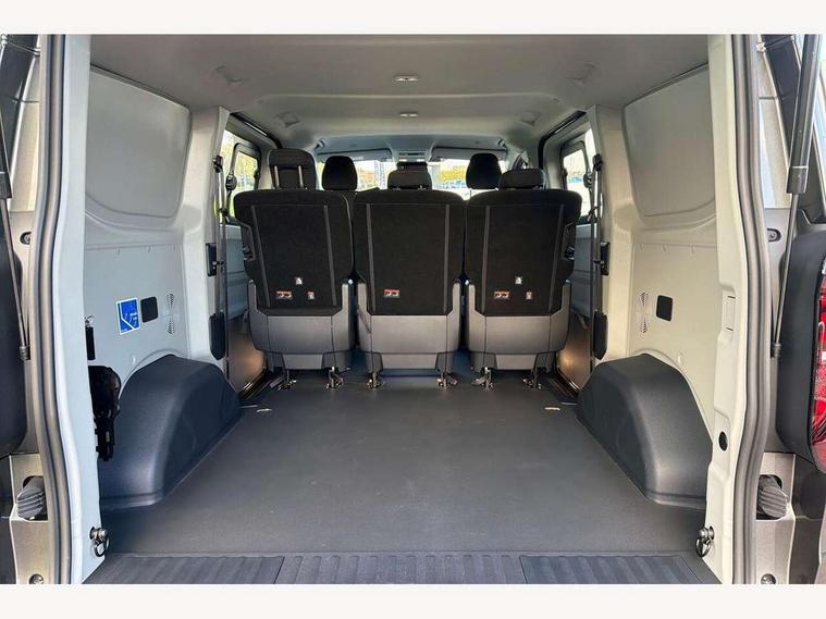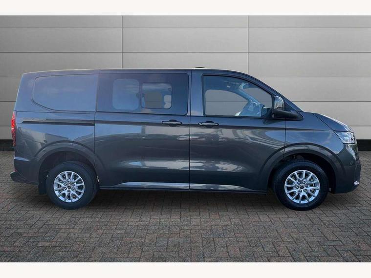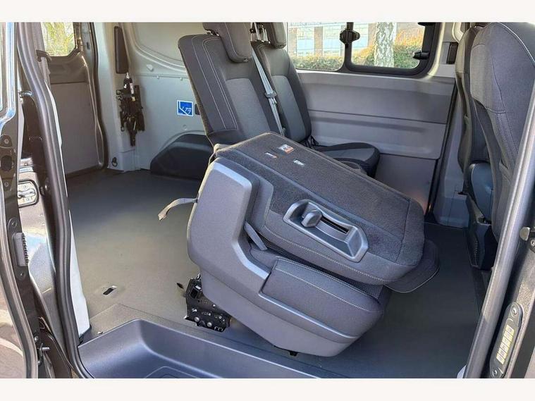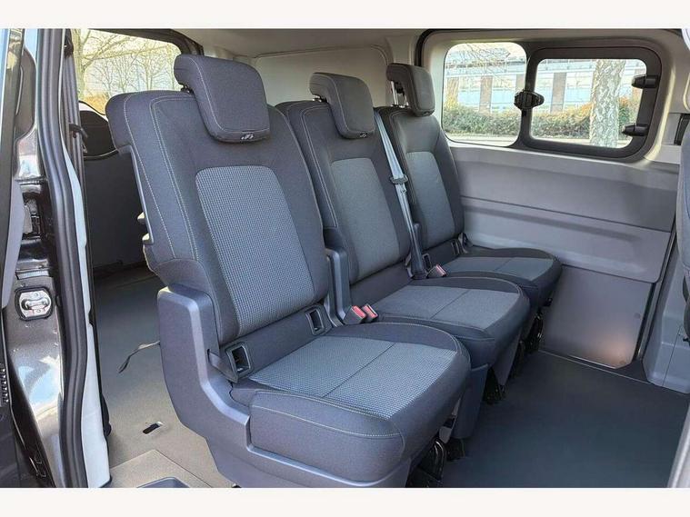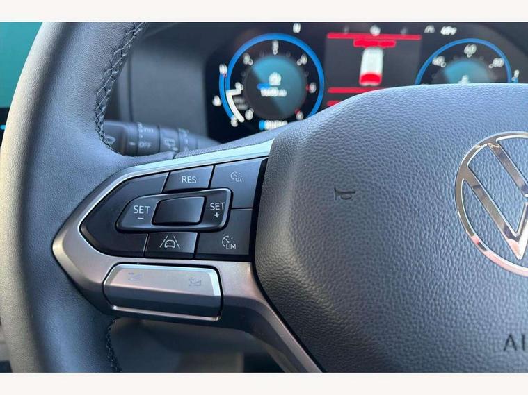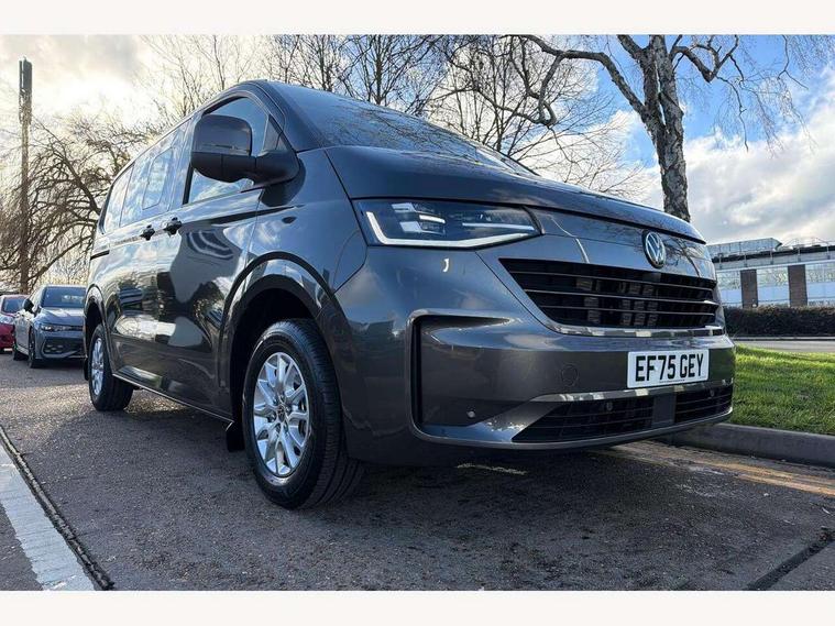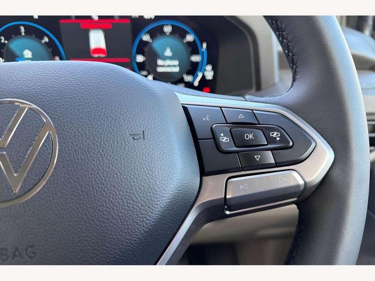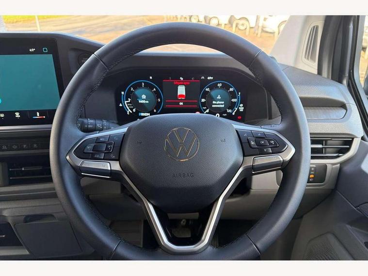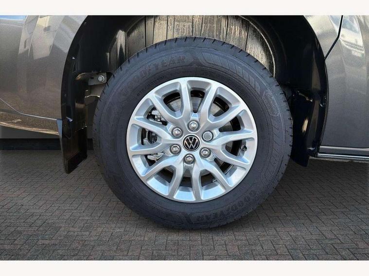 12" digital drivers display, 13" touchscreen infotainment display with wireless app connect and DAB radio, 5G Modem, Cruise control with predictive speed limiter, Dynamic road sign display, eCall emergency system, Front collision warning with braking, Identification label for N1 commercial vehicle registration, Lane assist, PAS, Preparation of VW connect and connect plus, Wrong way driver warning, 6 speakers, Body coloured add on parts, Body coloured door handles, Dual sliding doors with pop-out window vents (left and right) for 2nd row, Mud flaps front and rear, Rear tailgate, Rear Transporter nameplate in black grained decorative trim, Rear window wiper with washer system, Sliding doors on driver and front passenger side, Vehicle opening configuration 1x 1st row of seats, 2x all doors, 12 pin terminal block, 2 LED lights in roof of load compartment, 3 single seats in 2nd row, folding and tumbling, 2x isofix and top tether, 4 tie downs for securing goods in the passenger/load compartment, 4 way height and tilt adjustable head restraints, Black plastic scuff plate for sliding door in cargo, illuminated, Black plastic scuff plate in front without illumination, Covers in the bottom area of all side panels and doors in the load compartment, Dimming breakaway interior rear view mirror, Gear selector lever on steering wheel, LED light units for cab and passenger compartment, Overhead storage compartment, Single driver and single passenger seat in cab, Striped fabric upholstery, Without bulkhead, Without floor covering in load compartment, Driver and front passenger airbag with front passenger airbag deactivation, Dual tone horn, Seat belt pretensioner for front seats, Side and curtain airbags in cab curtain airbags in passenger compartment, Anti theft alarm system with interior monitoring in cab, backup horn and towing protection, Central locking, Preparation for alcohol ignition interlock, 5+ Promise, Alternator - 230A, Electronic Stability Control (ESC),