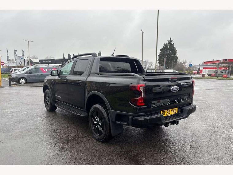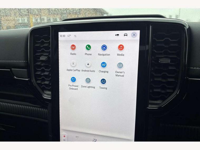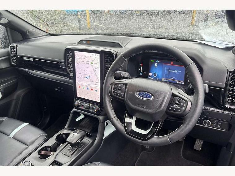 AEB and ISA, Delete tachograph, Electric power assisted steering, Electronic automatic gearshift, Evasion steer assist, Ford Pro Telematics Essentials, Fordpass connect modem including eCall and FordPass connectivity, Ice warning, Partial TFT/LCD instrument cluster, Passenger side roof mounted grab handle, Pre collision assist, Road departure warning, Trip computer, Wireless charging pad, 360 lighting, Accent colour exterior mirrors, Accent colour front bumper, Accent colour rear bumper, Acoustic laminated windscreen, Assisted conventional tailgate, Automatic headlamp levelling, Automatic headlights, Black wheel lip moulding, Body coloured door handles, Daytime running lights, Dual power heated fold back door mirror with puddle lamps, E-marked glass, Electric rear window defroster, Electric windshield defroster, Electrochromic interior mirror, Foam in bumper, Front bumper lip, Front fender painted grill, Front splash guard, Fuel tank guard, High mounted stop lamp, Honeycomb radiator grille, Hood applique, Ladder rack, LED Front fog lamp, Level 1 Taillamps, Level 3 headlamps, Manual liftgate, Non locking capless fuel fill, Outside thermometer, Pickup side rails, Power front windows with one touch up/down, Power rear windows, Privacy glass, Rain sensitive windshield wipers, Rear bumper extension, Rear fog lamps, Rear splash guard, Self coloured decklid handles, Trailer tow wiring, Under hood engine cover, Cargo light, Console with armrest, Door handles with inside MIC, Driver and passenger sunvisor with mirror, Ebony headliner, Electronic dual zone automatic air conditioning, Fresh air heater, Heated steering wheel, LED ambient interior lighting, Less load rest, Less outside tie down hooks, Locking glove box lid, Micro rib embossed leather upholstery, Non woven carpet, Overhead console with dome lamps, Pollen filter, Premium air register, Pull out cup holder, Reach and rake adjustable steering column, Rear floor ducts, Roof storage for driver sunglasses, Steering wheel with multimedia controls, Washer tank level warn lamp, Driver assistance package - Ranger, Front seat pack 7 - Ranger, Functional upgrade pack 3 - Ranger, Heavy duty terrain pack - Ranger, ICE feature pack 106 - Ranger, Interior trim pack 13 - Ranger, Rear seat pack 15 - Ranger, Child proof rear door locks, ISOFIX child safety seat attachment, Tyre pressure sensors, 2 Remote control unit - key fob, Immobiliser, Locking wheel lug nut, Passive keyless entry and start system, Power door dead locks, Power tailgate lock, Thatcham alarm system, Thatcham security system, FORDLiive service, 12V aux rear power point plug, ABS/ESP brakes with electronic brake boost, Electric parking brake, Electric start/stop system, Front and rear disc brakes, Locking rear axle, Soft ride suspension, Spare tyre lock,