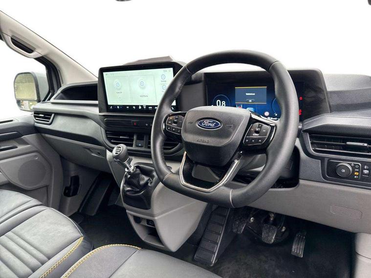 13" Touchscreen, 5G embedded modem, AECS NO SMS/Roll Detect 2G, PAS, Tyre pressure monitor, SYNC 4 - Android Auto/Apple Car Play, advance speech recognition, over the air update capability, Automatic headlights, Automatic windscreen wipers, Daytime running lights, Electric front windows with one touch facility for driver and front passenger, Front mud flaps, Front splash guards, Gloss black door mirrors, Low roof line, Part body colour front bumper, Quickclear front window defroster, Rear cargo hinged door, Rear splash guards, Trailer sway control, 8 Load compartment tie down loops, Courtesy light, Interior grab handle with driver's sunglasses holder, LED lights, Locking glove box lid, Sensico gearshift knob, Passenger airbag, 2 remote keys, Alcohol Interlock wiring preparation pack, Locking wheel lug nut, Thatcham category 1 alarm, 20L AdBlue tank, ABS, Diesel particulate filter, ESP, Hill launch assist, Limited Slip front axle - mLSD, Traction control, 16" Steel spare wheel, Full wheelcovers,