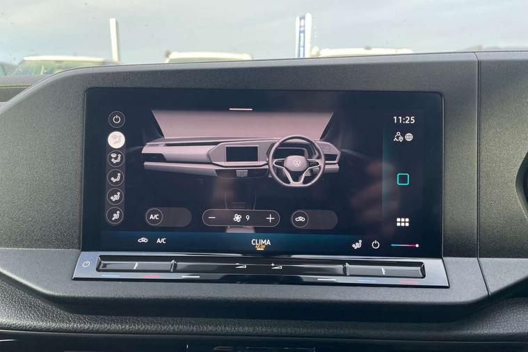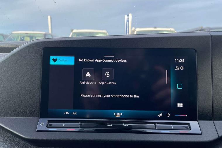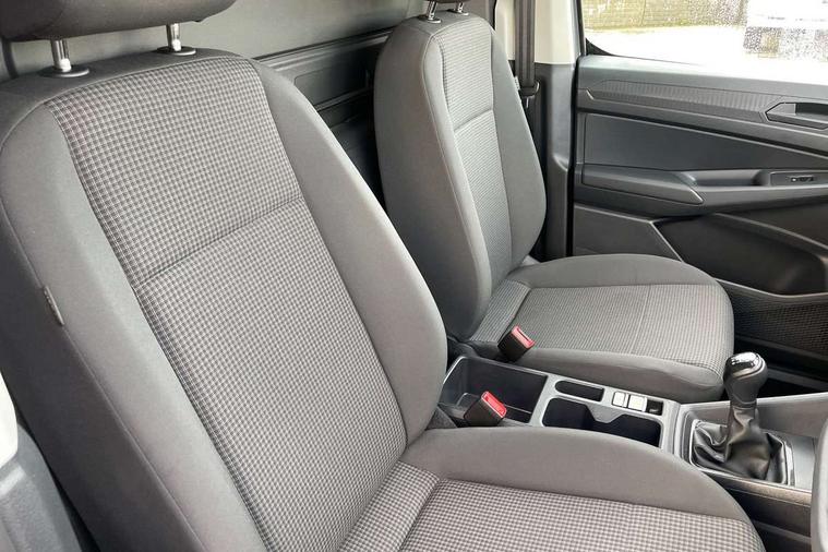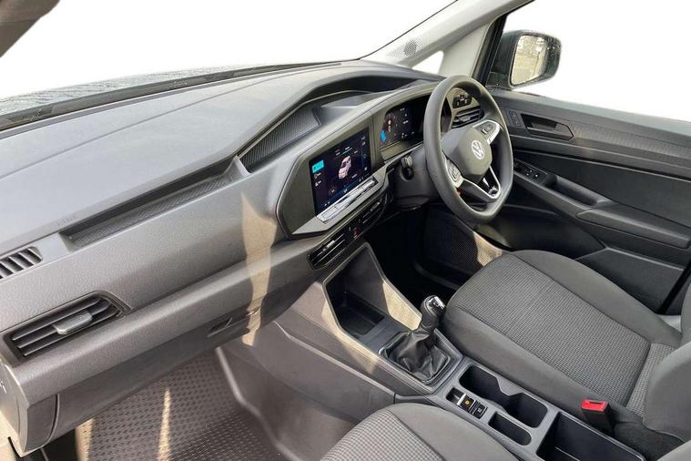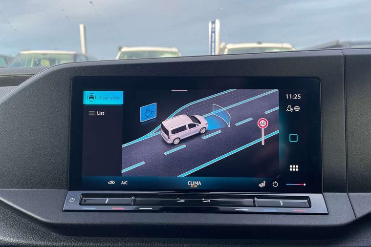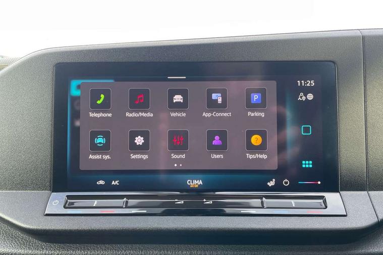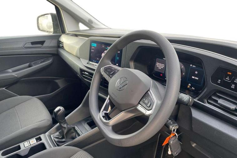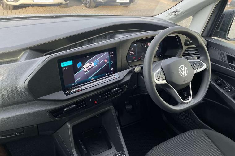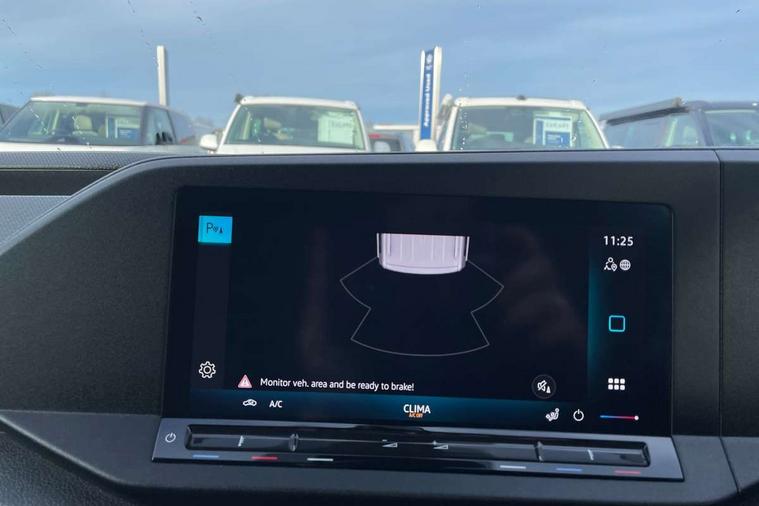 Bluetooth - Mobile phone interface, Car2X technology, Driver alert system, eCall emergency system, Intelligent Speed Assist, Lane assist, Seatbelt warning indicator, Service indicator, Start-stop system with regenerative braking, 2 USB interfaces type C in dashboard, DAB Radio, We Connect Basic Preparation, Automatic hazard light activation under emergency braking, Black front and rear bumpers, Electric front windows, Heat insulating windscreen, Roof rail preparation, Windscreen wiper with variable intermittent delay and wash-wipe system, Dimming breakaway interior rear view mirror, Electronically controlled heating system, Interior light in headliner incorporting LED technology, Lockable glove compartment door with light, Manual heating and ventilation system, Manual height adjustment for front seats, Reach and rake adjustable steering column, Six lashing points for securing loads, 3-point seat belts in front, with pretensioner and height adjustment, Driver and front passenger airbag with front passenger airbag deactivation, Tyre pressure monitoring system, Anti-theft alarm system, interior monitoring, backup horn, and towing protection, Electronic engine immobiliser, Remote central locking with deadlocks, interior locking, Anti locking braking system (ABS), Automatic post collision braking system, Autonomous Emergency Braking Front Assist with Pedestrian Monitoring, Brake assist, Diesel particulate filter, Electric parking brake with auto hold function, Electronic brake force distribution (EBD), Electronic differential lock (EDL), Electronic stabilisation programme (ESP), Engine drag torque control (MSR), Hill hold assist, Traction control system (TCS), Decorative beige birch vein inserts, Full size wheel trims,