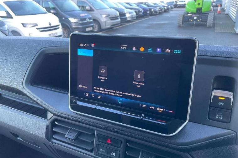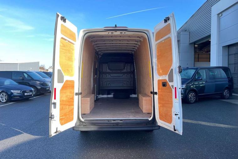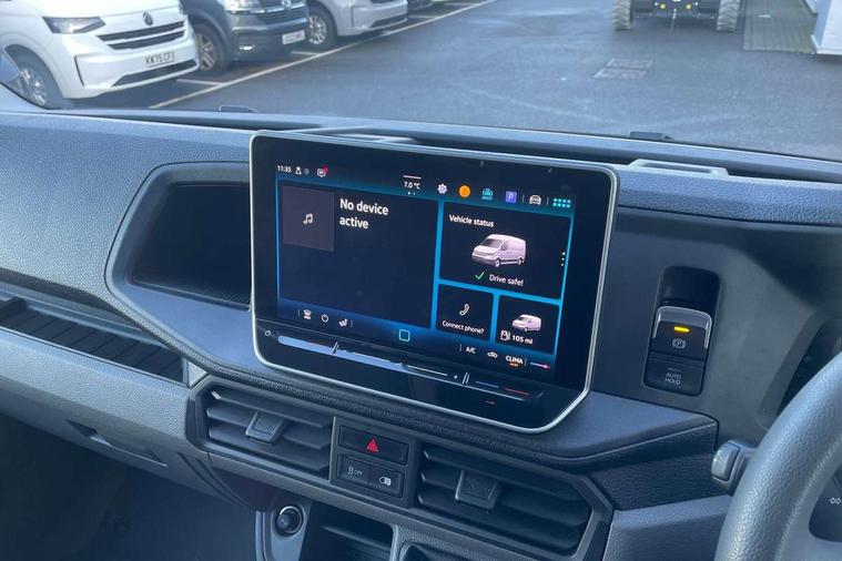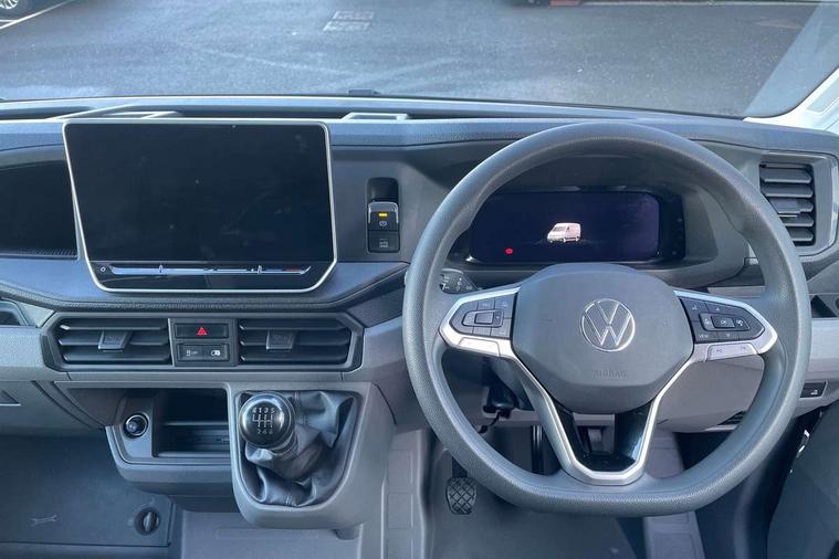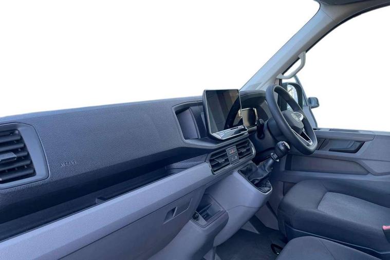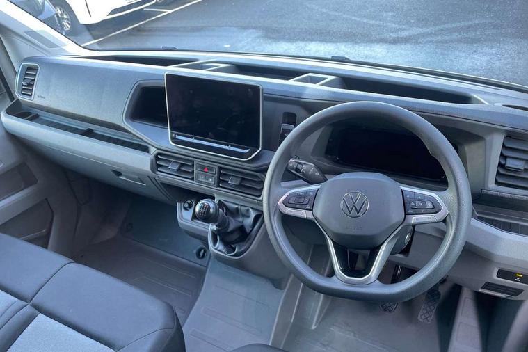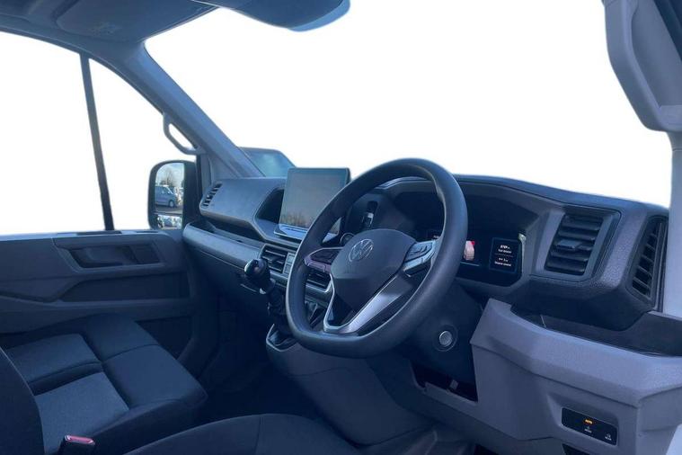 Bluetooth, Digital clock, Driver alert system, E-call + We connect basic preparation, Instrument cluster, Lights on warning buzzer, Locking fuel cap, Multi-function Display Plus, Rev counter, Service indicator, Speedometer, Voice control system, Composition media with 6.5" with we connect plus prep, 4 speaker, multifun display plus, USB, mob interface, app con, "We connect function", DAB Radio, Auto low beam mode, Leaving home function and manual coming home function, Cab doors, Convex and wide angle mirror, Driver seatbelt warning light, Electric windows, Electrically heated and adjustable door mirrors, Half painted front bumper, Heat insulating glass, Indicators in front door mirrors, One towing eye in front, Rear wing doors with 270 degree hinges, Special identification plate, Unpainted radiator grille, Air recirculation system, Ashtray, Centre console storage tray, CFCU preparation, Charcoal filter, Climatic air conditioning, Document holder on centre console, Drinks holders, Electromechanical Servotronic steering, Electronically controlled heating system, Fully adjustable suspension type driver seat, Grab handles on rear entry pillars, Height adjustable head restraints, Height and reach adjustable steering wheel, Illuminated glove compartment with lockable lid, Interior light, including 2 reading lights, Interior light, switchable by door, Jack and tool kit, Preparation for interface for external use with terminal block, Storage compartments in doors and in step, right, Storage tray on dashboard, Two 12V outlets in the cab (in the dashboard), Without rear side trim panel passenger load compartment, Non-smokers pack - Crafter, 3 point inertia reel belt on all seats, Automatic hazard light with emergency braking, Crosswind assist, Driver and front passenger airbag with front passenger airbag deactivation, Height adjustable seatbelts for outer cab seats, 1 rigid key, Anti-theft alarm with interior monitor, back up horn and tow away protect, overhead storage with two 1-DIN, reading light, SAFELOCK with 2 remote keys, Engine immobiliser, ABS, Automatic post collision braking system, EBA, EBD, EDL, ESP, Front disc brakes, HBA, Hill start assist, Parking brake - hill hold control, Start and stop system with regenerative braking, TCS, Hub cap covers,