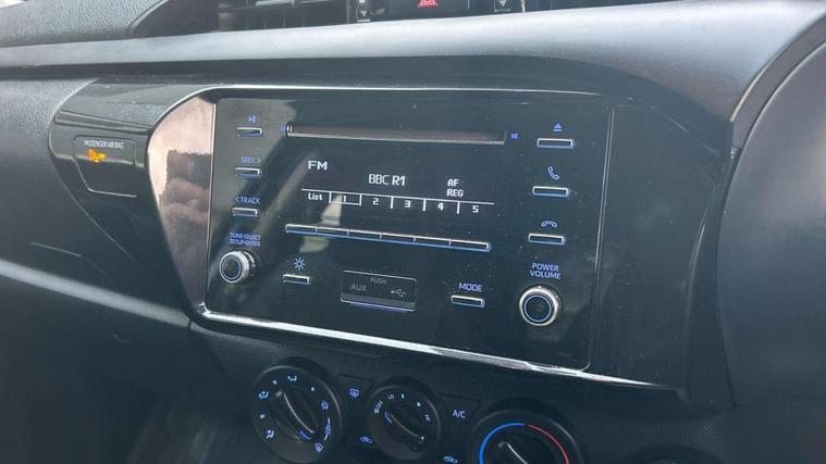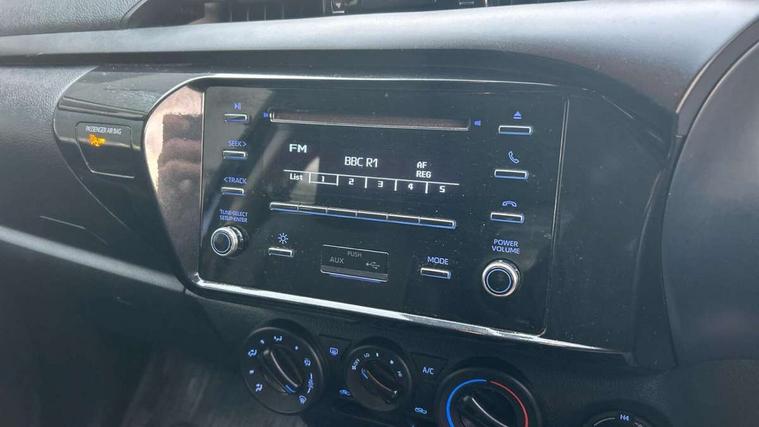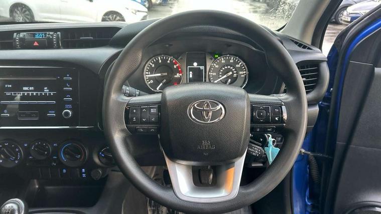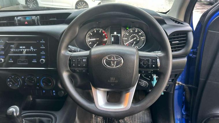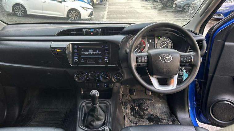 Bluetooth connectivity, Fuel heater, Intelligent adaptive cruise control, Lane departure warning system, Lights on warning buzzer, PAS, Pre-collision system with pedestrian detection, Road sign assist, Tachometer, 4 speakers, Radio/CD and mp3 compatibility, USB and auxiliary socket, Auto Headlights, Body coloured front bumper, Cab protector/ladder rack, Cabin protection deck frame, Dark grey rear bumper, Daytime running lights, Electric front windows with one touch drivers window, Emergency brake light assist (EBS), Follow me home headlights, Green tinted glass, Headlamp levelling, Headlight cut-off reminder, Heated door mirrors, Heated rear window, Manually retractable door mirrors, Mud flaps front and rear, Multi reflector halogen headlights, Power rear side window, Rear fog lights, Trailer sway control, Underbody protection cover, Variable front wipers, Centre console coolbox, Centre console with lid, storage and armrest, Cooler in upper glove box, Inner load hooks on cargo deck, Locking glovebox, Manual air conditioning, Outer load hooks on cargo deck, PVC upholstery, Tilt adjustable steering wheel, Urethane steering wheel and gearshift, Automatic front passenger airbag on/off switch, Child proof rear door locks, Front passenger airbag detector, Front seatbelt pre-tensioners + force limiters, Front seatbelt reminder, Rear seatbelt pre-tensioners with load limiters, Supplement restraint system (SRS) 7 airbags - driver and passenger, knee, side and curtain, Immobiliser, Lockable tailgate, Remote central locking, 12V accessory socket, ABS with EBD, Brake assist, Hill start assist, Load sensing proportioning system, Rear differential lock with auto disconnect, Stop/start function, Traction control, Vehicle stability control, All terrain tyres, Full size steel spare wheel,
