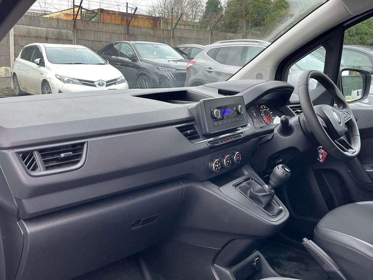 3.5" monochrome TFT driver information display, E-call, Power assisted steering, Automatic headlights and rain sensitive front wipers, Driver side one touch descending electric front windows, Electrically adjustable + heated door mirrors, Full halogen headlights and daytime running lights, Roof bar fixings, 10 anchorage points in load area, 12V power socket in front, 2 additional anchorage points in load area, Closed glovebox, Height adjustable drivers seat, Kangoo cloth upholstery, Driver and passenger seatbelt reminder, Driver's airbag, 3 button folding key with selective opening and superlocking feature, Deadlocking, ESC + Hill start assist, Increased payload,
