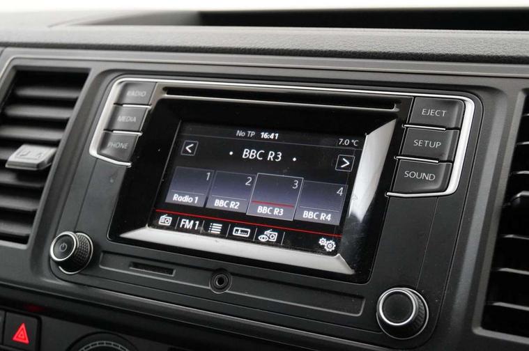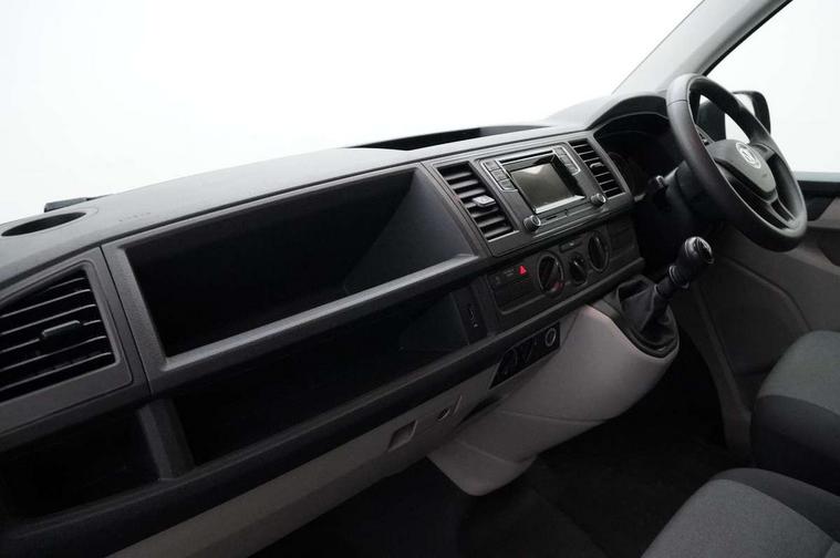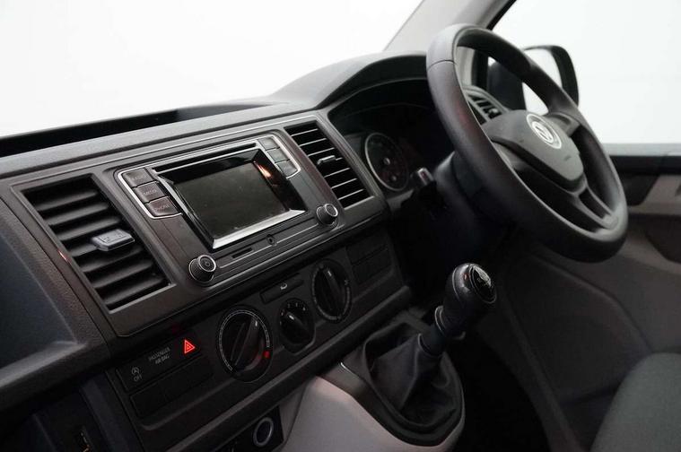 Bluetooth connectivity, Collision prevention assist, Digital clock, Driver alert with Multi-function display plus, Gearshift indicator, Headlight range control, Lights on warning buzzer, PAS, Rear door interior release lever, Rev counter, SD card slot, Service indicator, 4 speakers, Aux input socket, DAB radio/CD player, USB connection, 180 degree opening rear doors, 2 speed windscreen wipers/intermittent wash, 8 securing points for roof load rack system, Electric front windows, Front and rear towing rings, Heat insulating glass, Heat reflective glass, Laminated windscreen, Rear wing doors without windows, 1 coat hook, 1 hook on lower dash on front passenger side, 2 rear interior lights, switchable by door, 2 storage trays in dashboard, 2 sun visors folding and pivoted, 8 lashing points for securing load, Cab interior light, Drinks holder, Dust/pollen filter, Front door pockets with bottle holder, Half height load lining, Height adjustable head restraints, Height and rake adjustable steering column, Interior entry steps, Interior roof trim as headliner, Locking glovebox, Open storage compartment in dash panel including mobile phone holder, Passenger seat with reach and rake adjustment, Sheet steel flooring, Side roof frame trim, Storage box integrated in roof headliner, Storage compartments in doors, Storage compartments in outer side of driver & passenger seats, Storage net on lower dash passenger side, Electric pack A - Transporter, Non smoker pack, 3 point inertia reel belt on all seats, Brake pad wear indicator, Front passenger airbag deactivation, Height adjustable seatbelts with tensioners, Electronic immobiliser, 70L fuel tank, ABS with electronic brake distribution, ASR traction control, Diesel particulate filter, EDL, Electronic differential lock, Engine braking control (MSR), ESP, Hill start assist, Traction control,