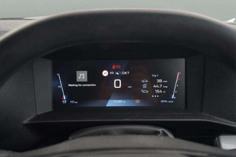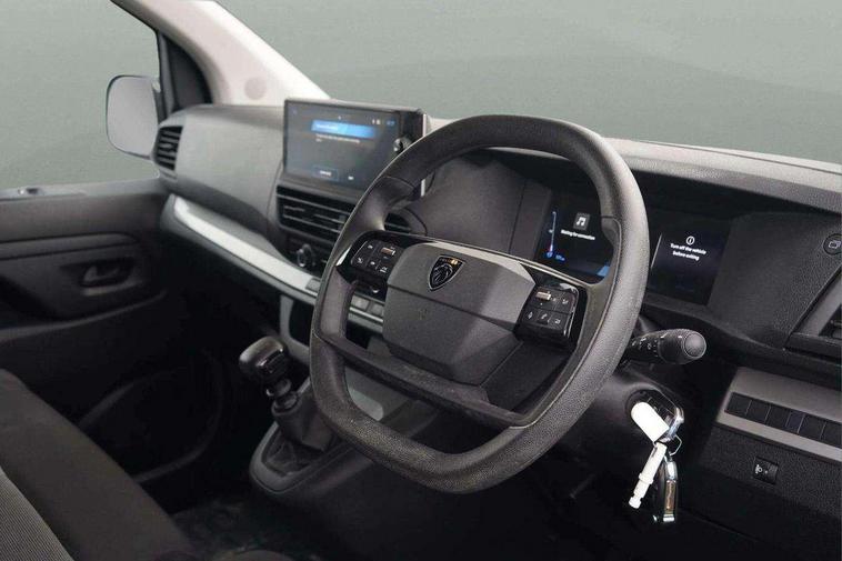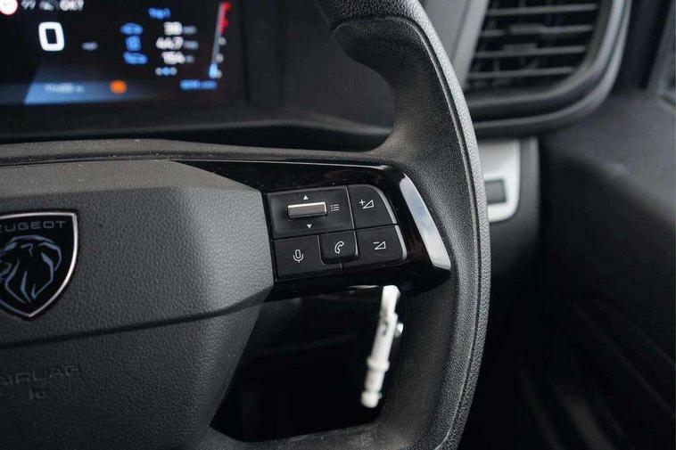 Cruise control and speed limiter, Driver Attention Alert, level - 3, Electronic power steering (EPS), Full 10" digital cluster, Intelligent Speed Assist, Lane keeping assist, Multi-function trip computer, Peugeot connect with RCE (emergency call and localization assistance + offers of branded services), Rear parking distance sensor, TPMS (Tyre pressure monitoring system), Audio controls mounted on steering wheel, Flexible short antenna (200mm), Two speakers and two tweeters, Automatic headlamps on/off, Black front and rear bumpers, side rubbing strips and exterior door handles, Electrically adjustable + heated door mirrors, Front electric windows with one touch facility, Halogen headlamps with integrated daytime running lights, High beam assist, Laminated acoustic windscreen, Offside and nearside sliding side access doors, Rain sensitive windscreen wipers, Twin solid rear doors, 12V socket in load area (LHS at bottom of D-pillar), 12V socket in lower glove box (1 only in cabin), Air recirculation facility, Chilled glovebox facility, Driver's seat armrest, Ergonomic 6-way adjustable driver's seat with reach, rake, height and lumbar adjustment, Fixed floor mounted load restraint lashing eyes x6, Full bulkhead with cloth hooks, Interior roof trim, Manual air conditioning, Mica cloth upholstery, Overhead console with 1 ceiling lamp (dome type and 3 lamps), Polyurethane steering wheel, TPO plastic flooring, USB socket in cabin (dashboard), Automatic fuel cut-off and door unlocking in event of accident, Driver and passenger airbags, Front passenger airbag on/off switch, Height adjustable lap and diagonal inertia reel front seatbelts, Dashboard mounted central locking push button and auto locking above 7mph, Immobiliser, Remote control central deadlocking, Selective door locking, 22.5 litres AdBlue tank, 70L fuel tank, ABS, Advanced emergency braking system (AEBS), EBA, Electronic brake force distribution (EBFD), ESC, Hill start assist, Manual parking brake, Mistral black dashboard trim with liquid paladium decor strip in mid-section,
