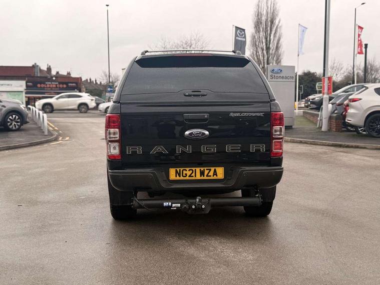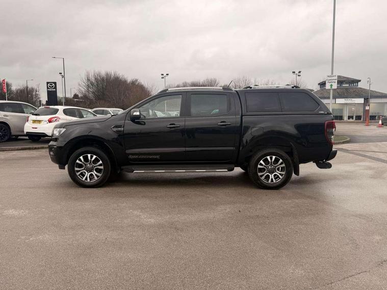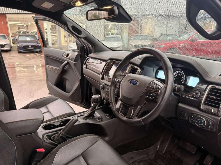 2 key fob, Collision mitigation braking system, Electric power assisted steering, Fixed rear view camera, Intelligent speed assistant, Lane keeping aid, Traffic sign recognition, Trip computer, Body coloured plastic front bumper, Boulder grey exterior door handle, Boulder grey exterior door mirror, Boulder grey radiator grille, Daytime running lights, Dual power heated fold back door mirror with puddle lamp and signal, Dyno grey sports hoop with side rails, Electrically operated windows with one shot driver's window, Electrochromic interior mirror, Front splash guard and mud flaps, Heated windshield and rear window, High mounted stop lamp with cargo area light, LED Front fog lamp, LED projector headlamps, Moulded in colour tailgate handle, Painted front fender grille, Privacy glass, Rain sensitive windshield wipers, Rear bumper chrome under-bar, Rear bumper step in boulder grey, Rear mudflaps, Roof rails, Side step with brushed inserts, Tailgate - Easy-lift/lower mechanism, Under hood engine cover, Underbody protection, Centre console coolbox, Chrome interior door handle, Driver seat back mounted map pocket, Dual control system - Electronic air temperature control (EATC), Ebony headliner, Heated front seat, Journey grain partial leather upholstery with Wildtrak logo, Leather gearknob, LED ambient interior lighting, Power adjustable 8 way driver seat, Premium front and rear floor mats with Wildtrak logo, Reach and rake adjustable steering column, Roof storage for driver sunglasses, Sport leather stitched steering wheel, Tie down rails and rope hooks, Wildtrak door trim panel insert, ICE feature pack 129 - Ranger, Driver and front passenger airbag, side airbag, curtain airbag and driver knee airbag, ISOFIX child safety seat attachment, Tyre pressure sensors, Double locking power door lock with flip key, Immobiliser, Locking wheel nuts, Passive anti theft system, Passive keyless entry and start system, Power tailgate lock, Spare wheel lock, Thatcham category 1 alarm security system, ABS, ESP and roll over mitigation, Emergency brake assist, Engine start/stop system, Locking rear axle, Power converter,